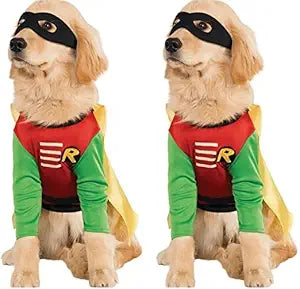 Transform your furry friend into a superhero with the officially licensed DC Comics Teen Titans Robin pet costume, featuring a vibrant red shirt with green sleeves, a detachable cape, and an eye mask perfect for any pet dress-up occasion or Halloween party! To ensure your pet achieves the best fit, be sure to consult the Rubie's pet size chart and watch the sizing instruction video, as not all costumes are suitable for every breed without some adjustments. Remember that while measuring your pet, flat measurements may not capture their three-dimensional shape; the costume offers some stretch for added comfort. Don't miss out on exploring Rubie's matching costumes for humans, including your favorite characters like Superman, Batman, and Wonder Woman, to create a spectacular group theme! Before making your purchase, please check recent reviews and Q&As to find the ideal style for your pet’s unique shape. Dress your pet as Robin, and let them join the fun in a heroic fashion this Halloween or at any costume party!