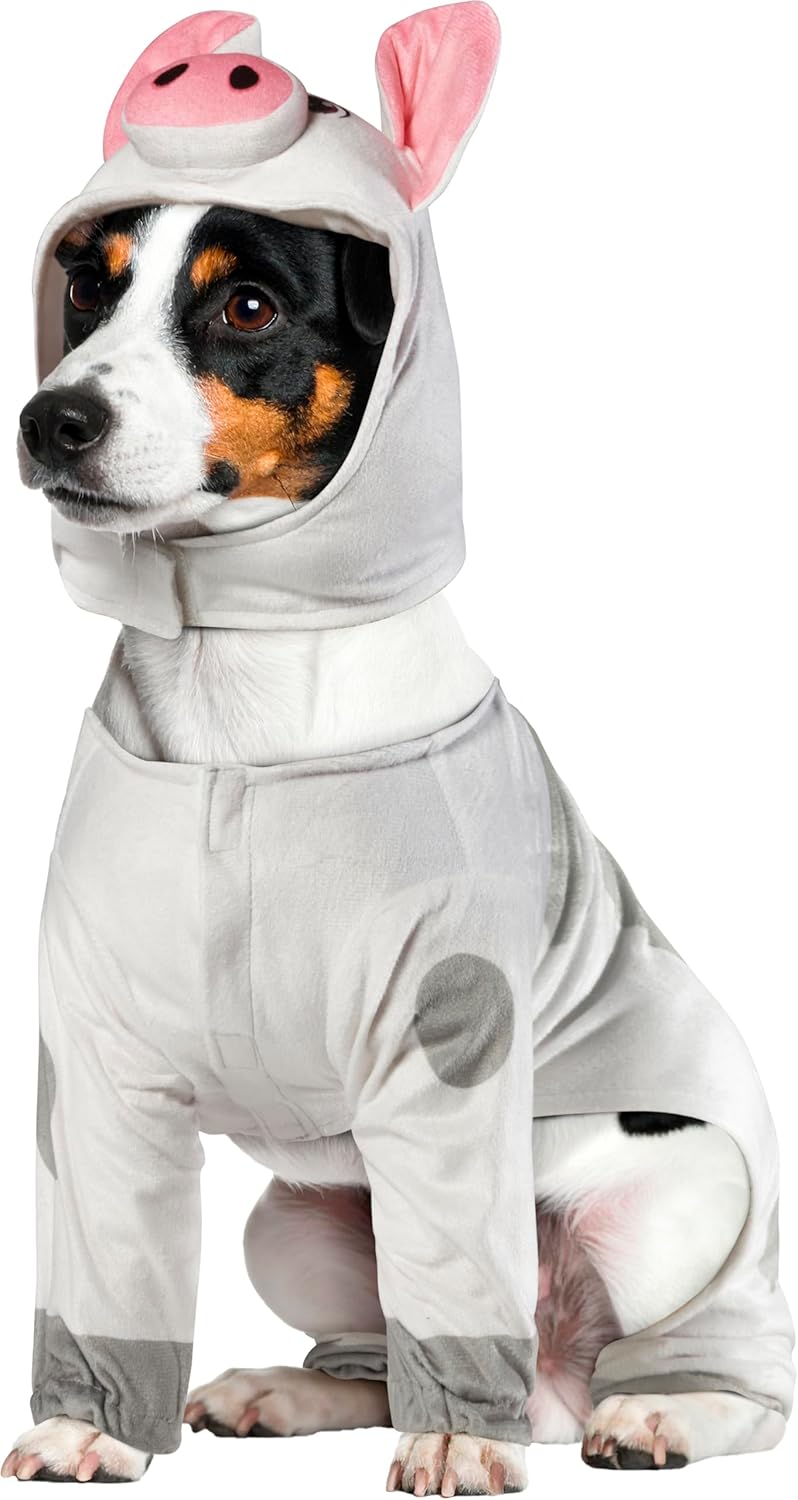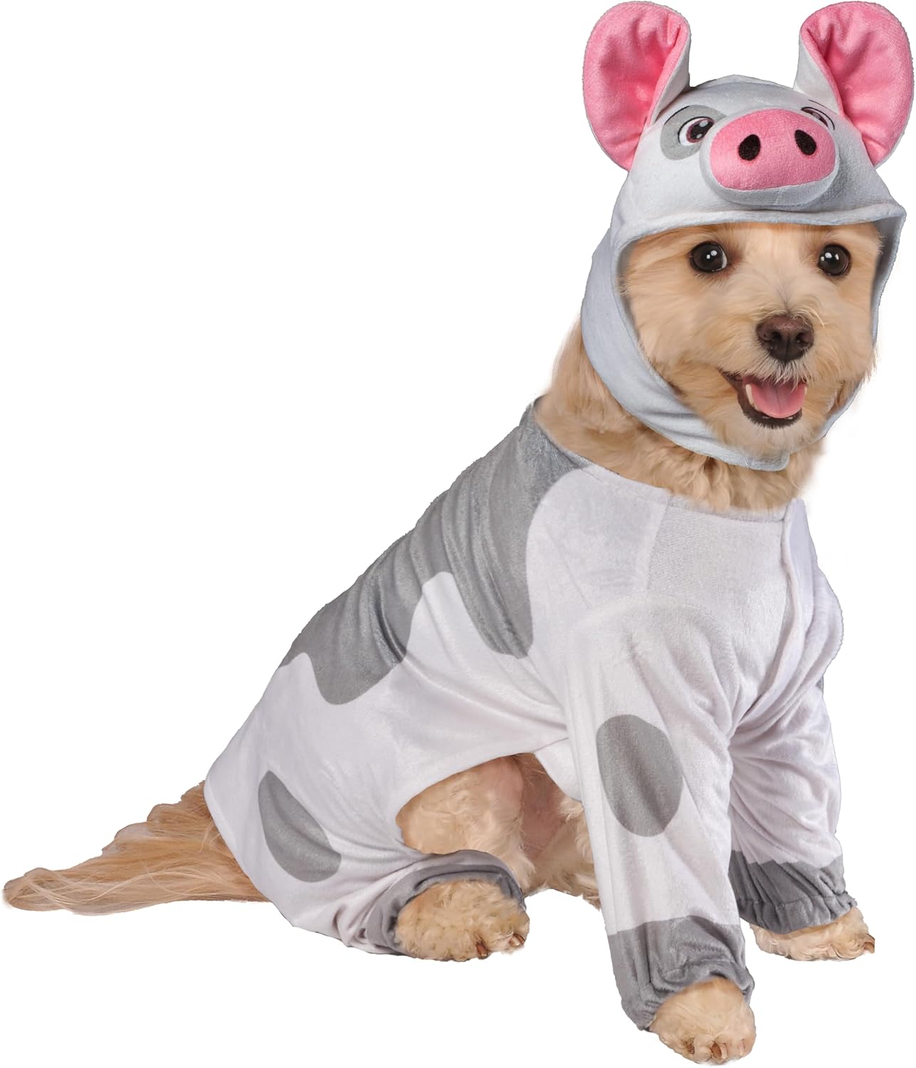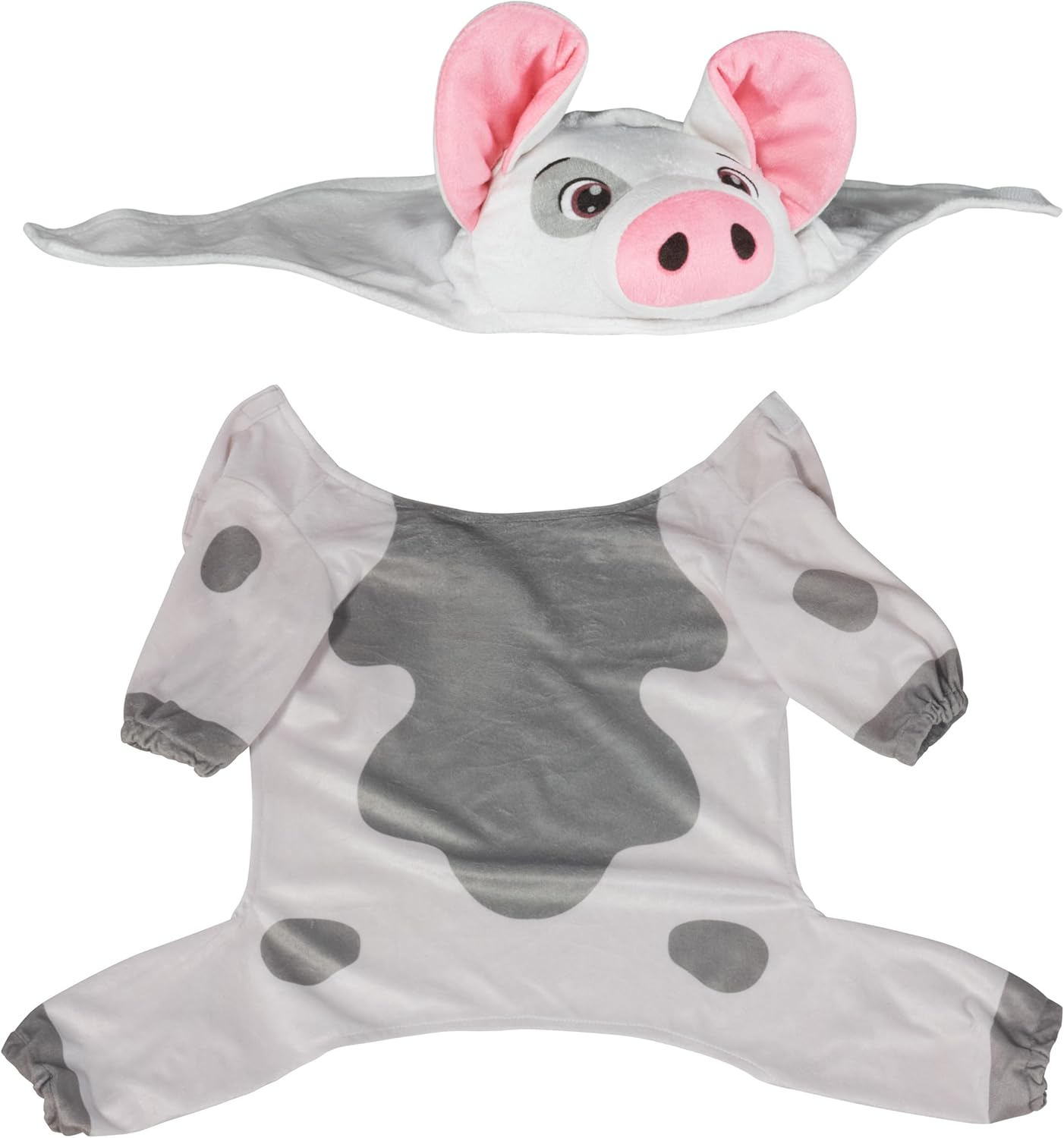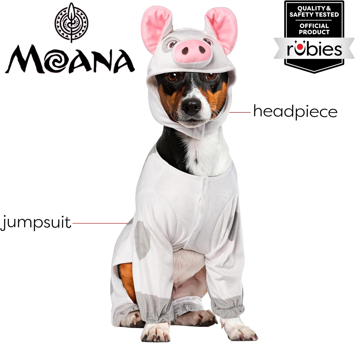 Disney's Moana 2 Pua pet costume with headpiece. Make sure you consult the size chart and video! Not all COSTUMES WILL FIT ALL PETS without alteration. Rubies officially licensed pet costumes inspired by classic Disney characters, created under license with Disney Consumer Products and Interactive Media, are stylish, cute, shareable, and comfortable. Look for entire line and create you own pet playgroup: “Mickey and Friends” pet costumes and accessories (including Mickey, Minnie, Donald, and Goofy), “Disney Princess” pet costumes with wigs (including Cinderella, Ariel, Belle, and Snow White), “Winnie the Pooh” pet costumes and accessories (including Winnie, Tigger, Piglet, and Eeyore), Pixar’s Toy Story pet costume and accessories (including Woody and Buzz Light-year), and pet costumes from the film Disney Tim Burton’s Nightmare Before Christmas and more. Designed for a wide range of pets with costumes and accessories available in sizes XS- XXXL.