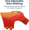COMFORTABLE SECURE FIT. Adjustable telescoping neck closure ensures a snug, stay-put fit on all breeds. Designed to accommodate a wide range of dog types, including deep-chested and hard-to-fit dogs.