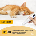 - 🐶UNIQUE DESIGN: We know that pets are sensitive to loud noises. That's why our trimmer has a silent design that operates at only 35dB to minimize noise. And with an LED light, you can easily trim your pet's hair in low light conditions. Ensures safety and precision when trimming your pet. It also reduces pet anxiety.pet feel at ease and reduces the fear of trimming hair.