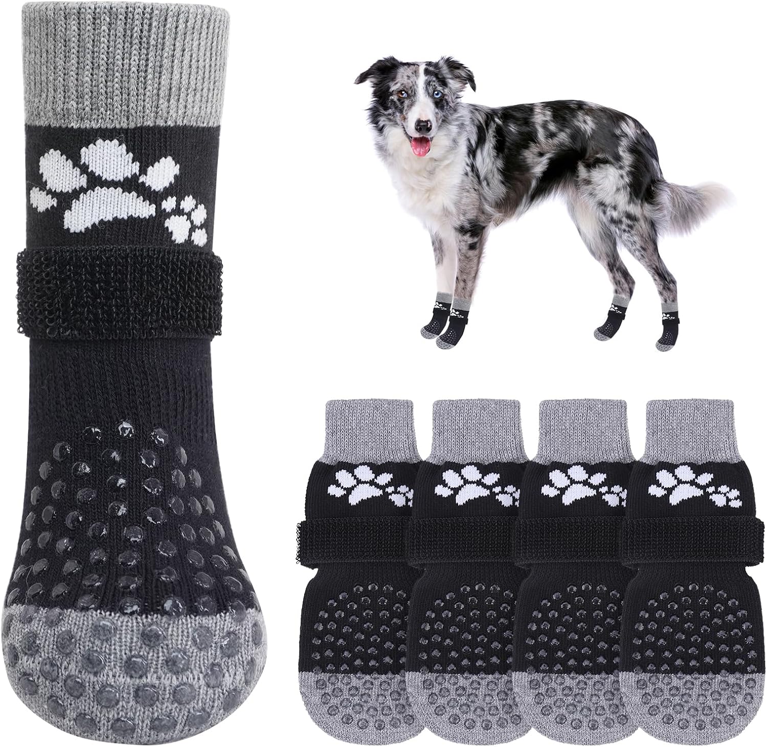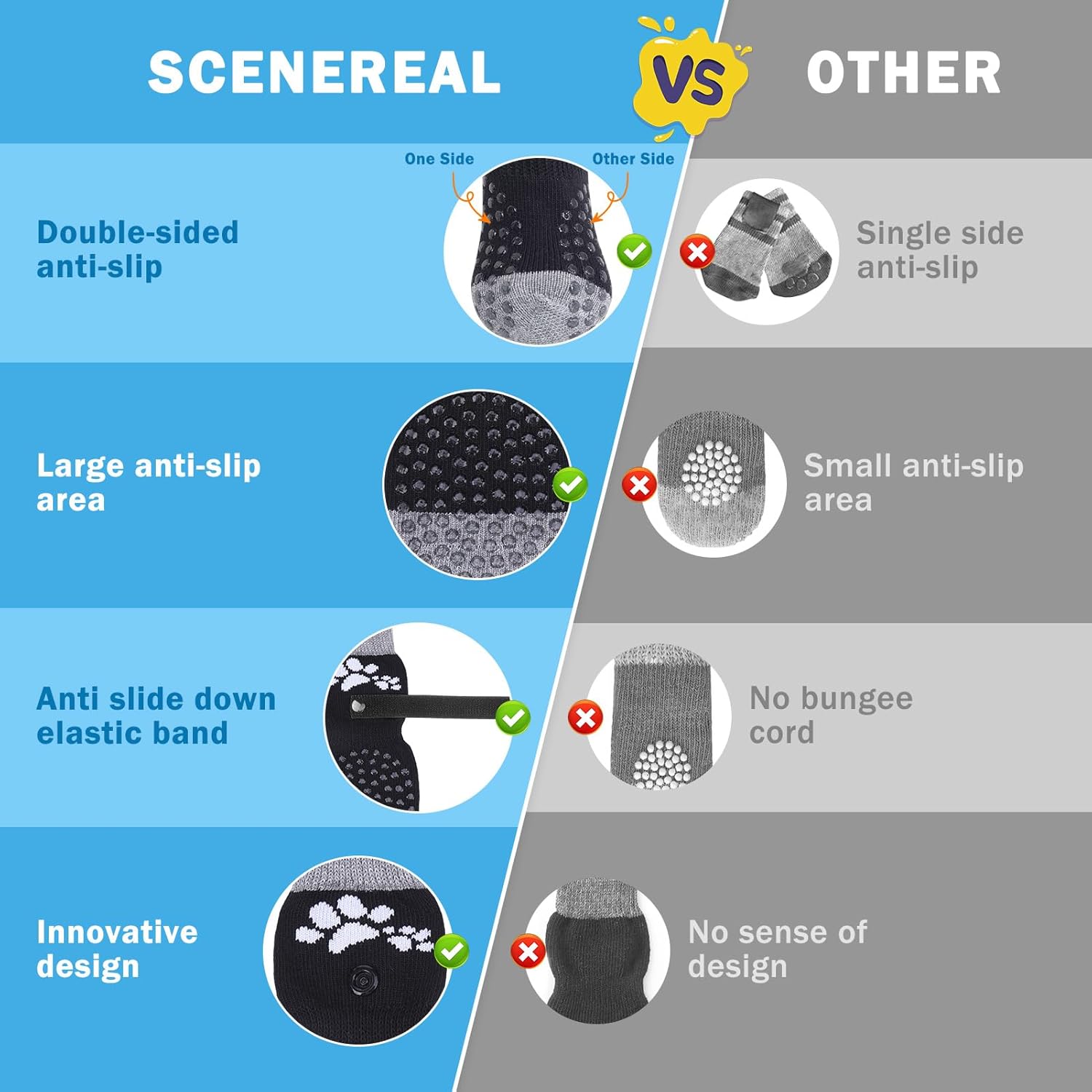 SCENEREAL Anti Slip Dog Sock to Prevent Licking Paws for Hardwood Floors, Boots & Paw Protector Shoes for Hot/Cold Pavement with Grippers, Double Sides Grips for Small Medium Large Senior Dogs, S