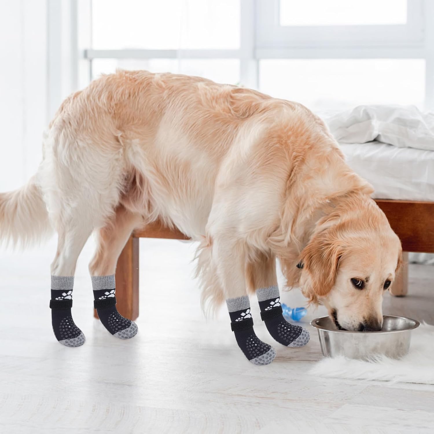 BOTH SIDES & LARGE AREA NON-SLIP PET SOCKS: The dog grippy socks have a large adhesive on both sides, which provides your senior old dog with great extra traction and will not slip even when twisted. Therefore, if your furry friend has problems with his hind legs slipping on wooden floors, we recommend that you purchase these soles.