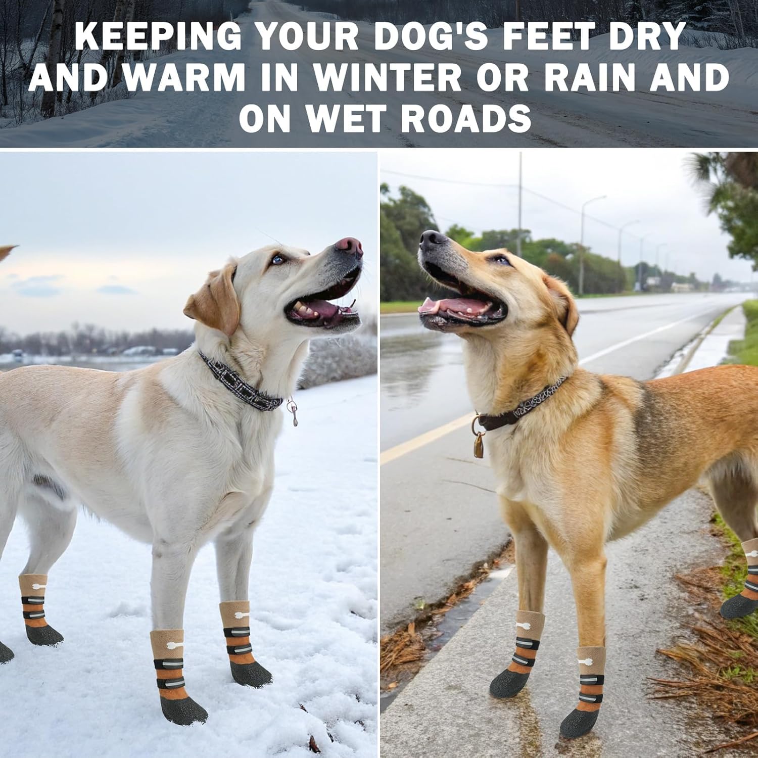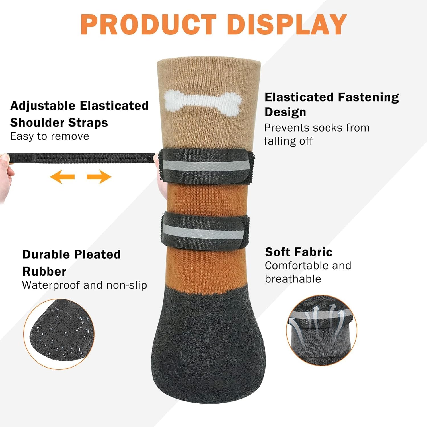 SCENEREAL Anti Slip Dog Socks Boots, Dog Shoes for Hot/Cold Pavement Snow Rain Days, Waterproof Grip Doggy Booties for Hardwood Floor, Winter Paw Protectors for Small Medium Large Senior Old Dogs