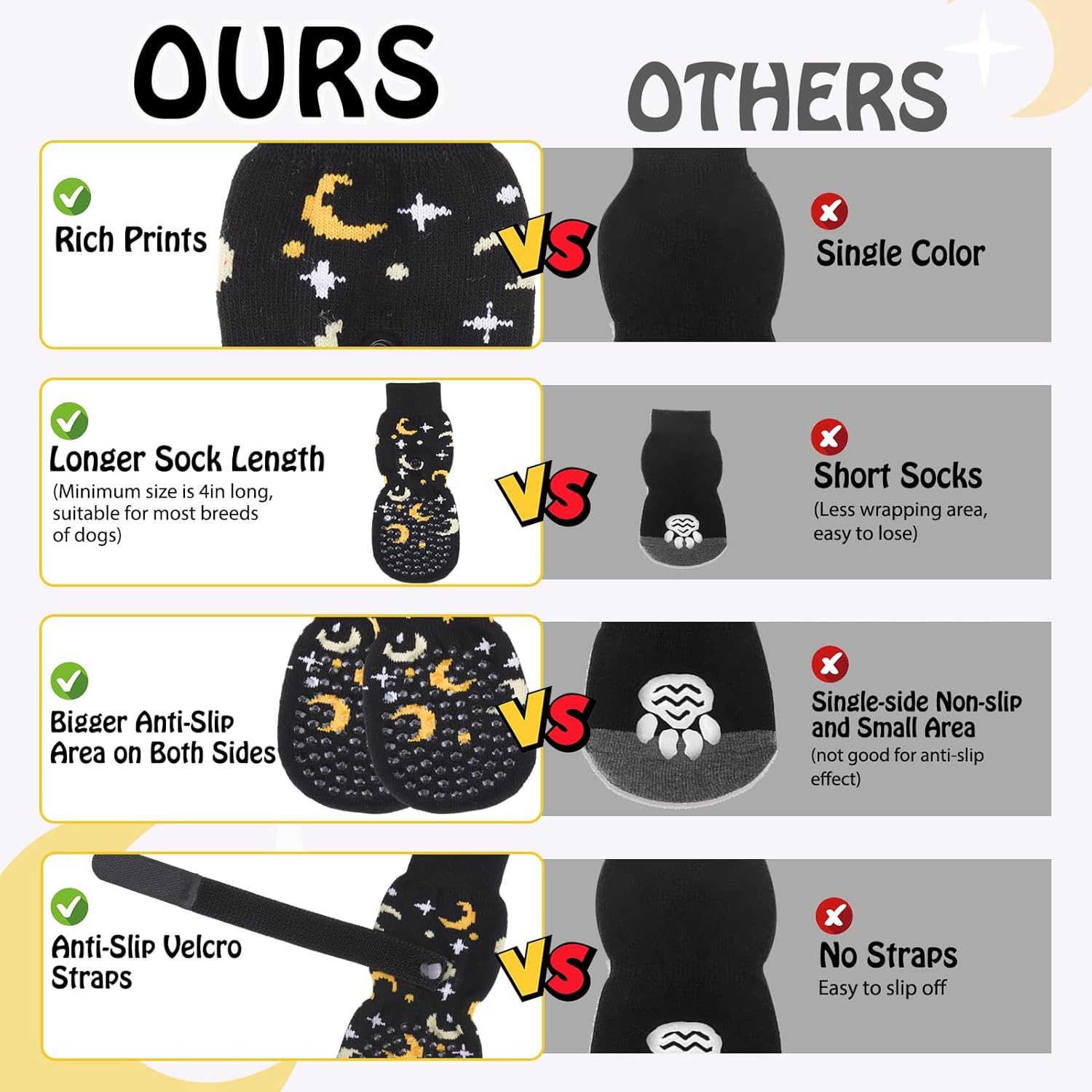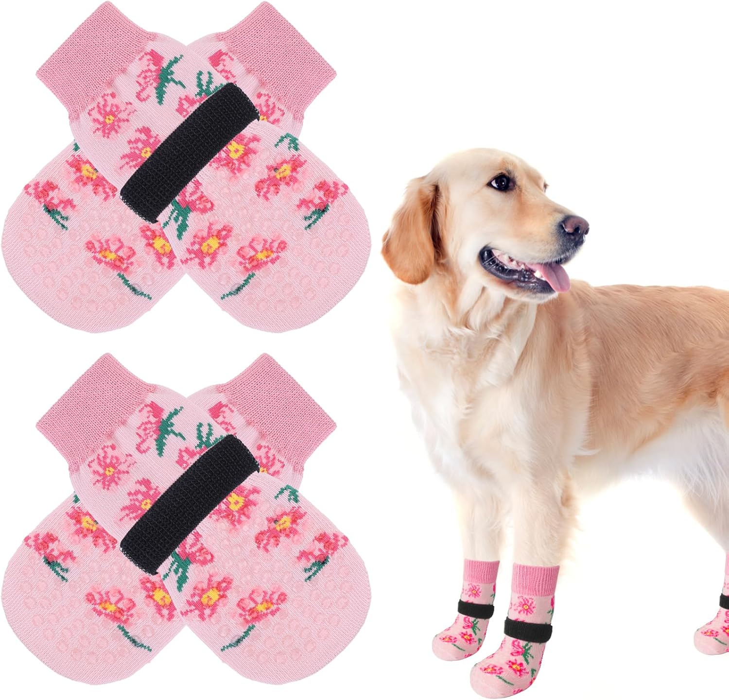 Double Sides Grips Traction Control: Our dog socks have large anti-slip features on the top and bottom sides to really help your senior dog get around the house again! In addition, wearing our socks can further help foot wounds heal by preventing them from licking and irritating the wounds.