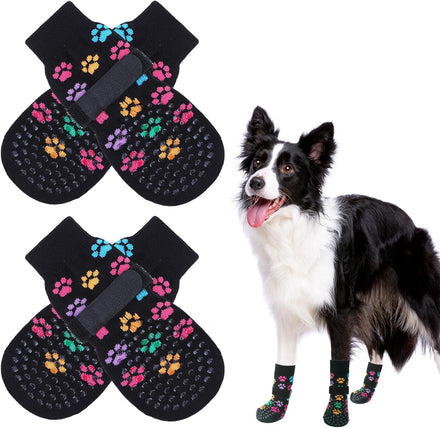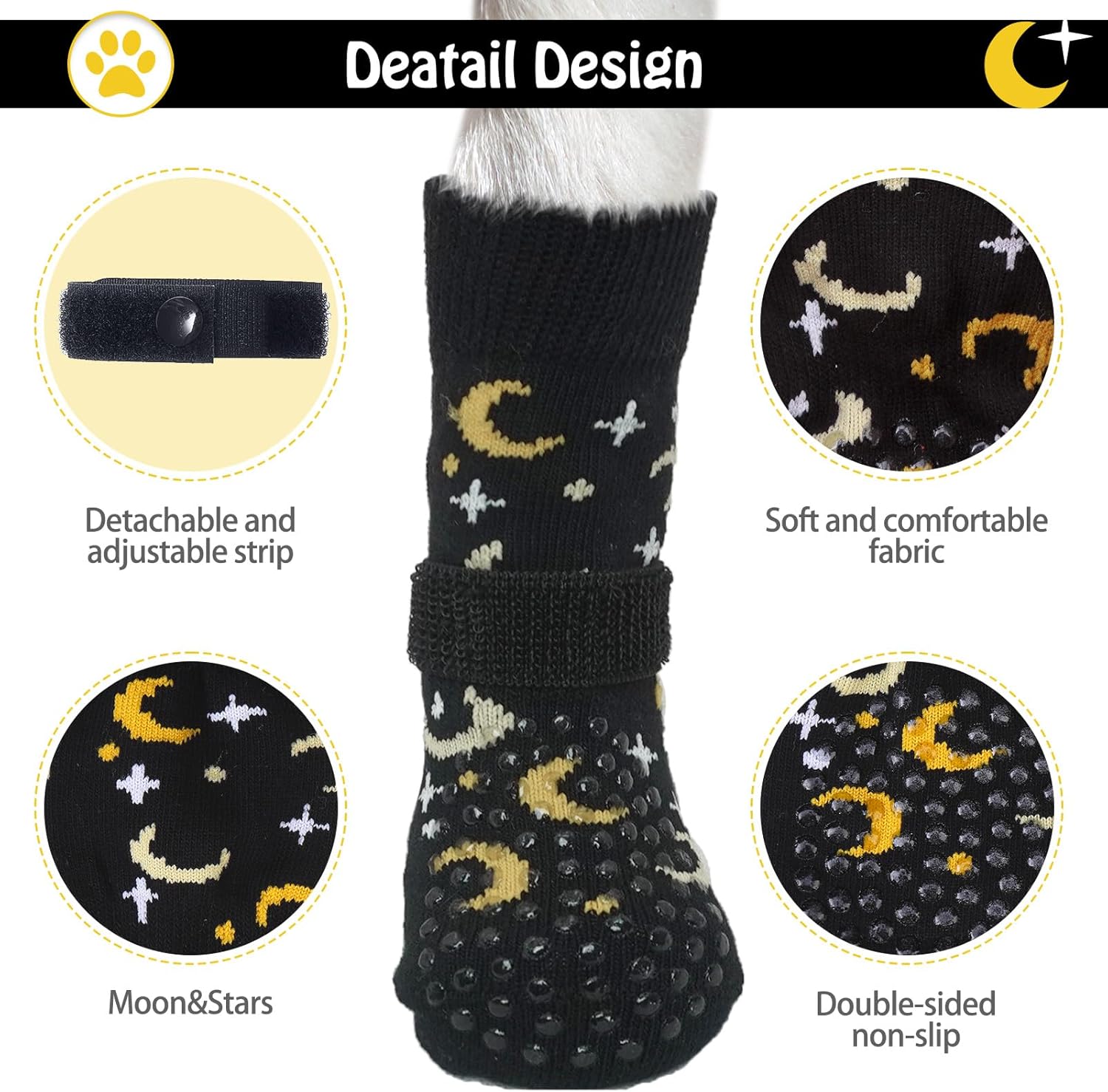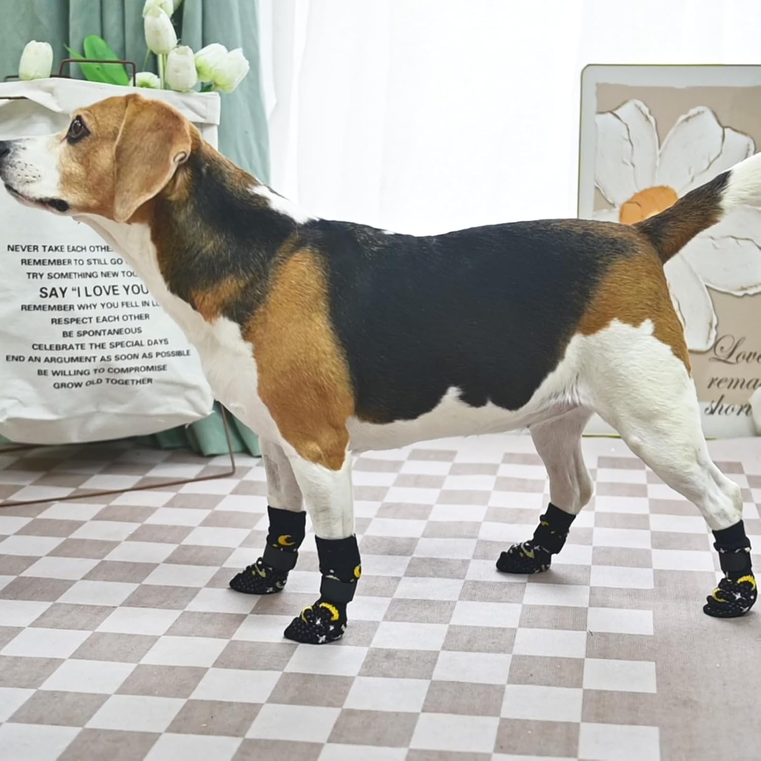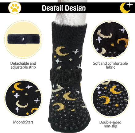 Anti-falling: The elasticity of the sock itself allows the sock to fit the dog's feet, and it is also equipped with additional adjustable and detachable straps. You can use the elastic black ring buckle to adjust the tightness of the sock so that it will not fall off easily, but it must Don't tie it too tightly. This will ensure your dog is comfortable and the sock stays in place while walking or running.