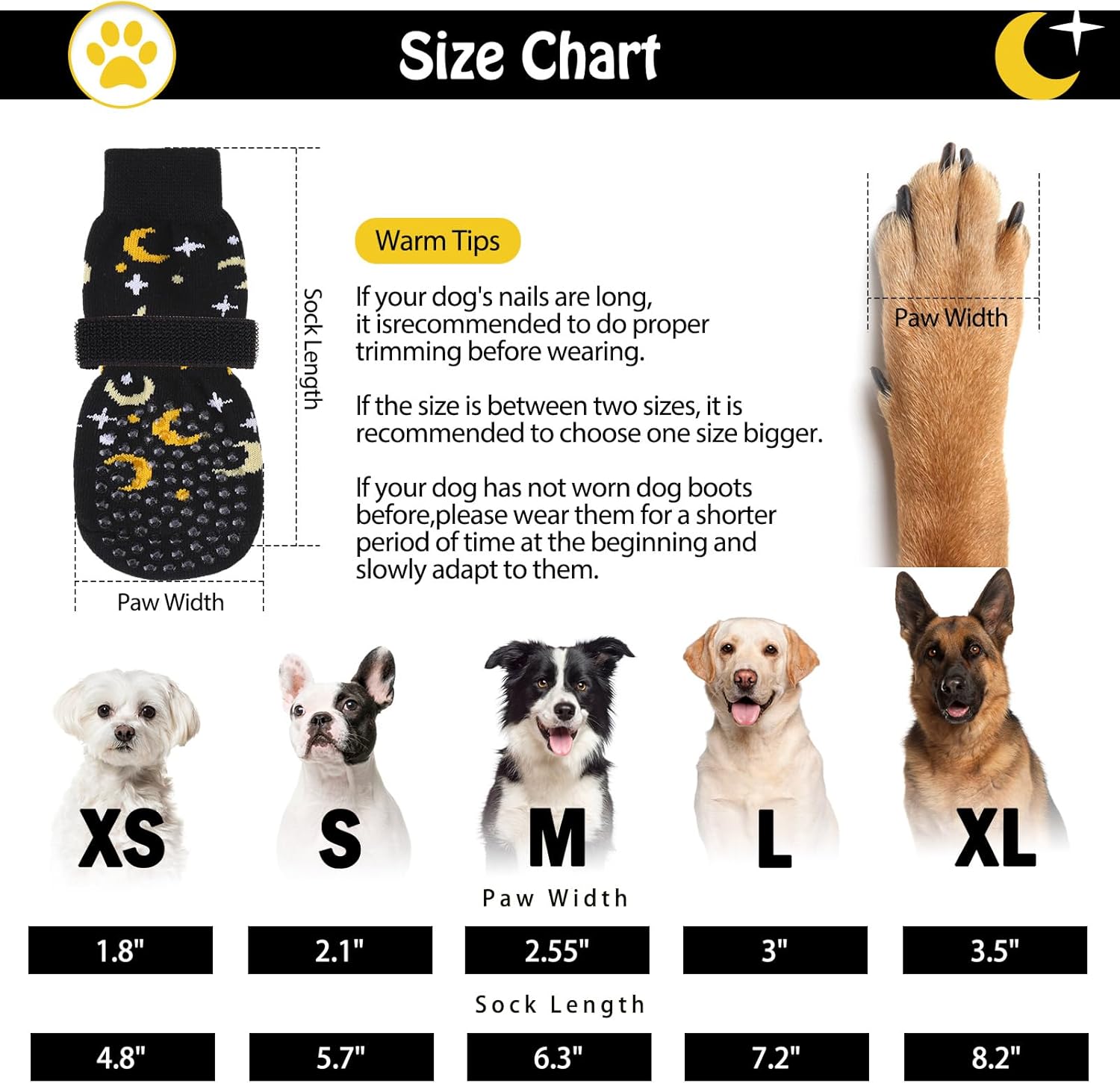 Size Medium: Paw width 2.55in/6.5cm, sock length 6.3in/16.0cm. Before purchasing, we strongly recommend that you measure your pet to ensure a perfect fit.