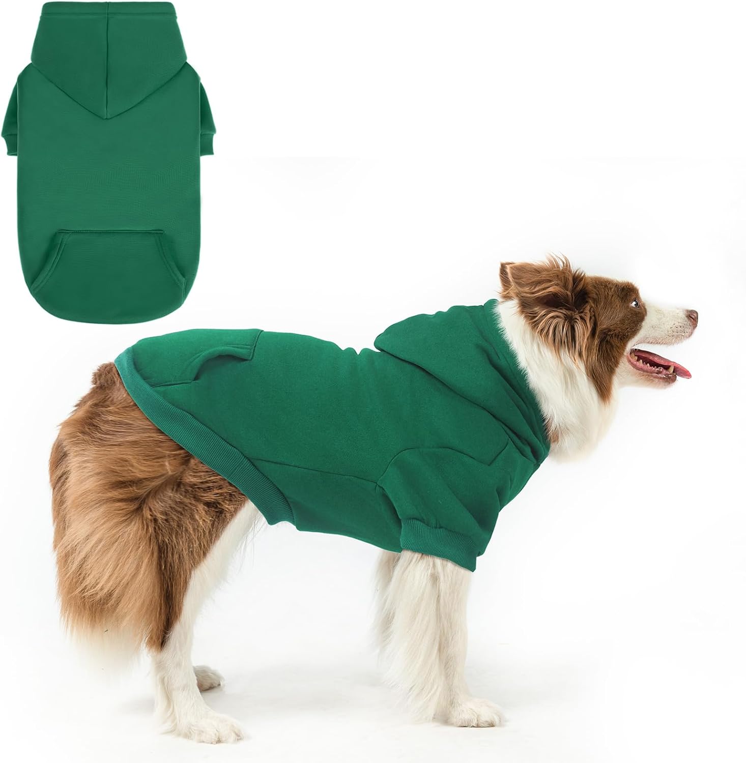 SCENEREAL Dog Hoodie Sweaters for Small Medium Large Size Dogs, Fleece Dog Sweatshirt with Hat and Pocket,Soft Cotton Cold Winter All Weather Dog Clothes for S to XL Sized Dogs, Green XL
