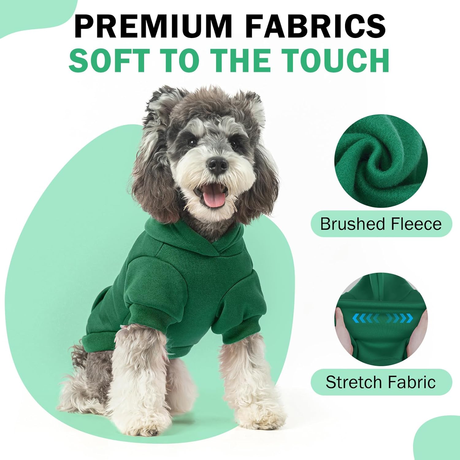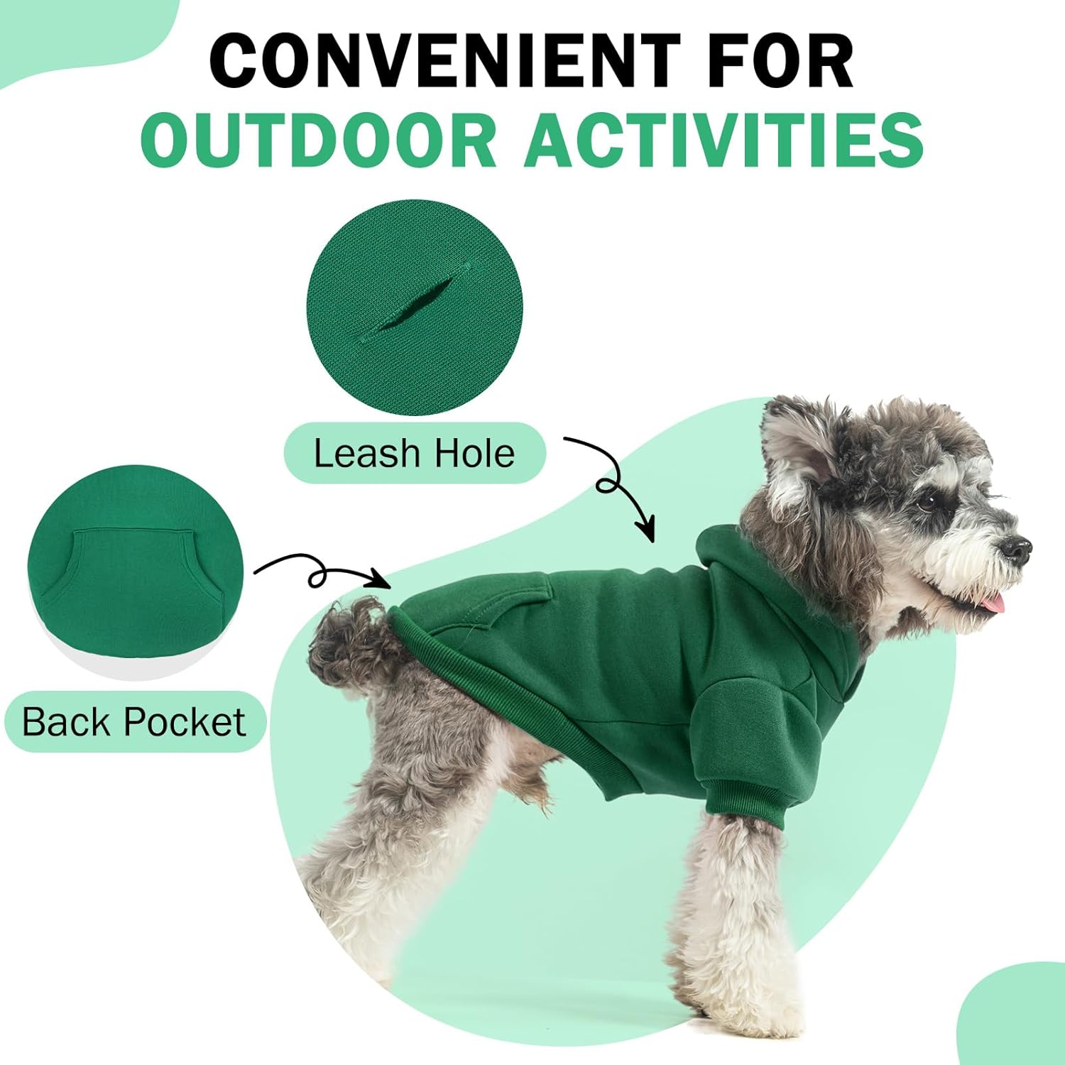 DOG HOODIES WITH POCKETS: Our dog hoodies feature a classic solid color design that exudes timeless charm and sophistication. The addition of functional pockets enhances its usefulness, giving you and your furry friend a convenient place to store toys or treats for interactive playtime
