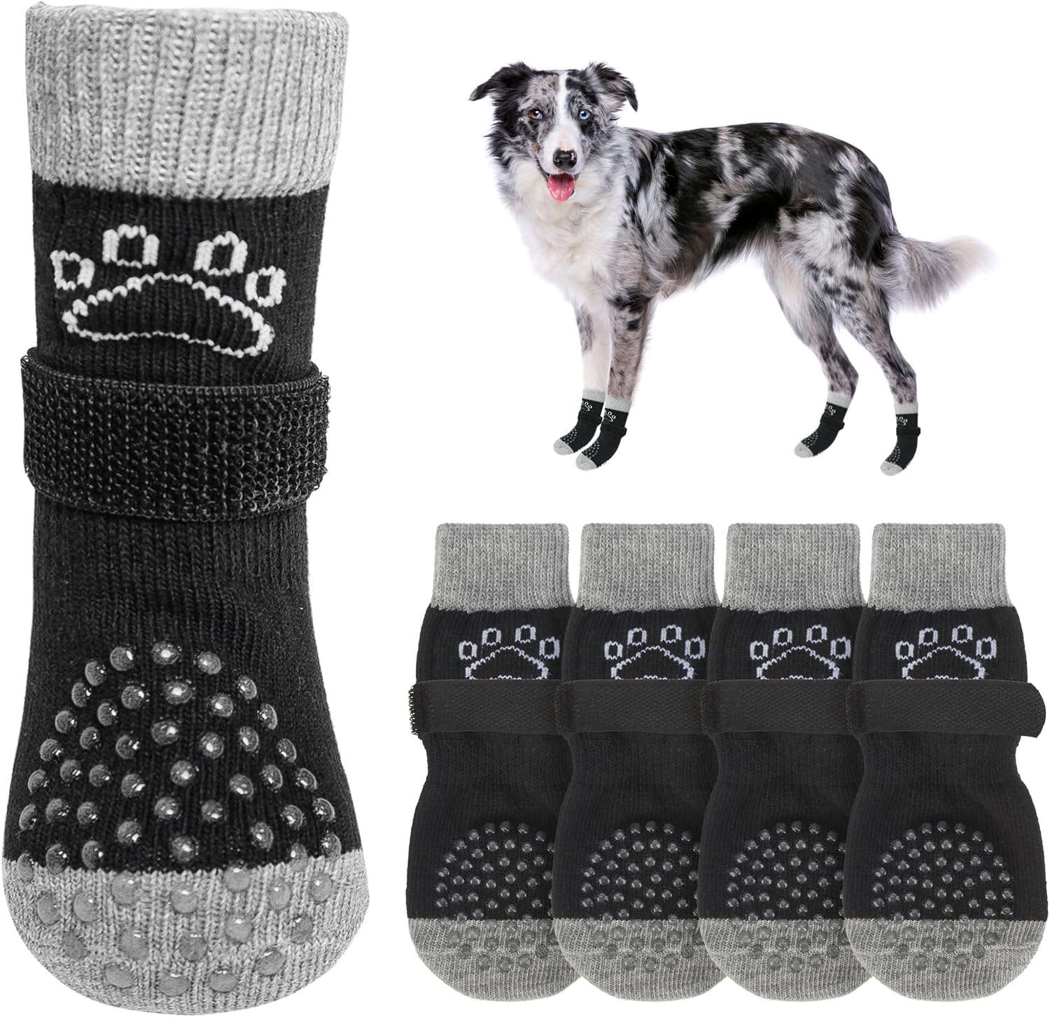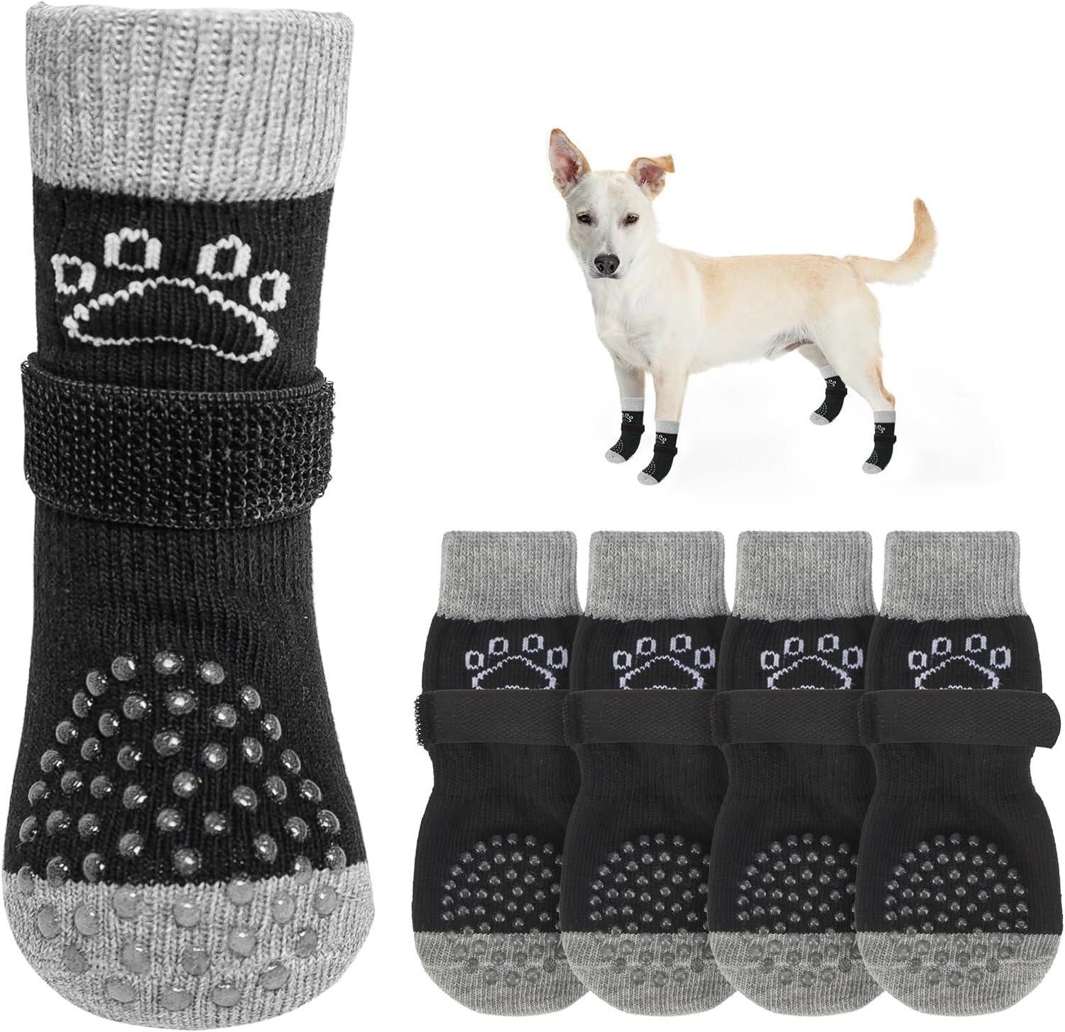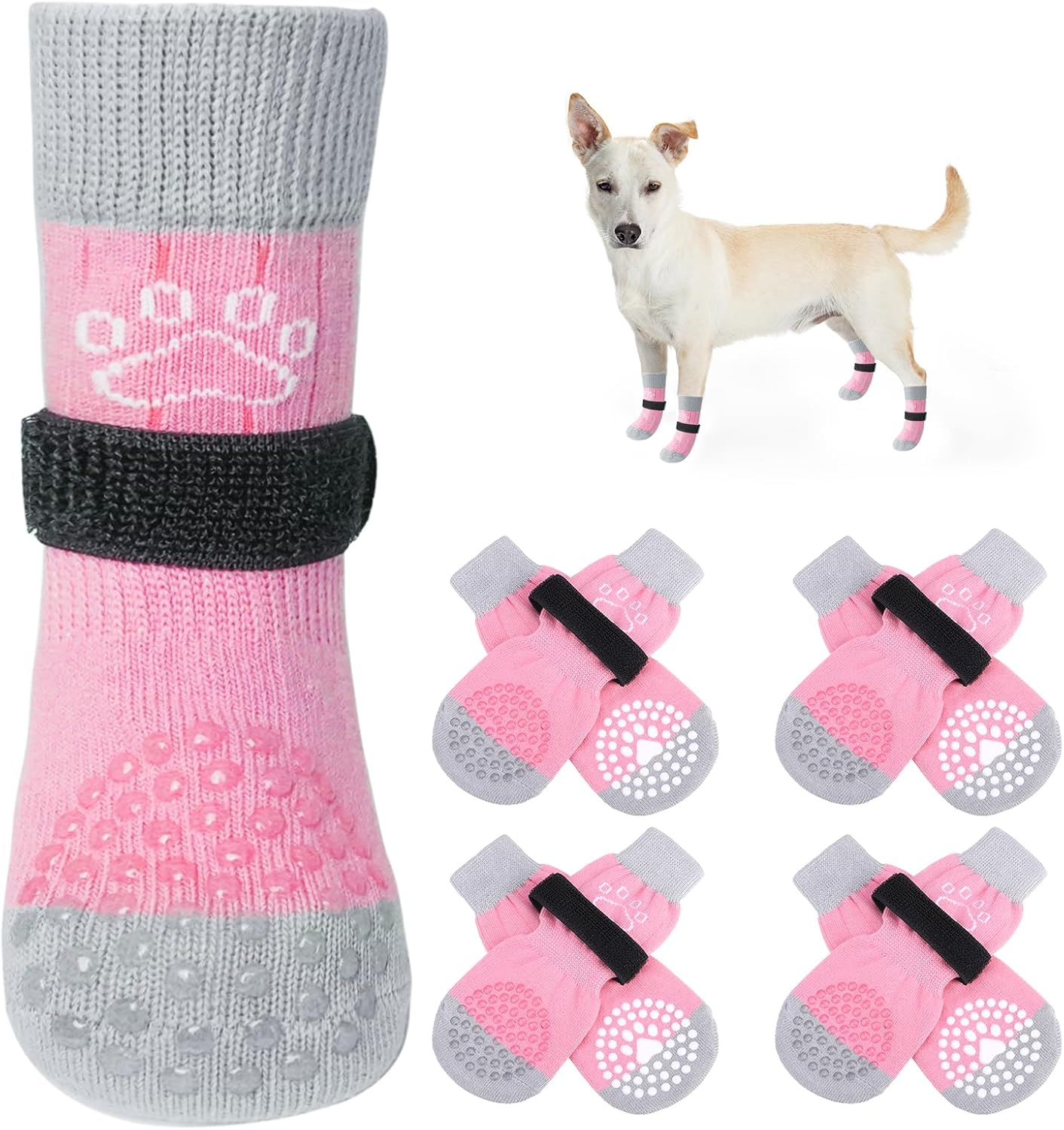 SOFT, COMFORTABLE AND ELASTIC: Our dog socks with grippers are made of elastic and comfortable material, soft and lightweight, perfect fit for your boy/girl's paws, they will be more receptive to it, breathable knit fabric, durable bottom, keep he/she's paws protected all year round.