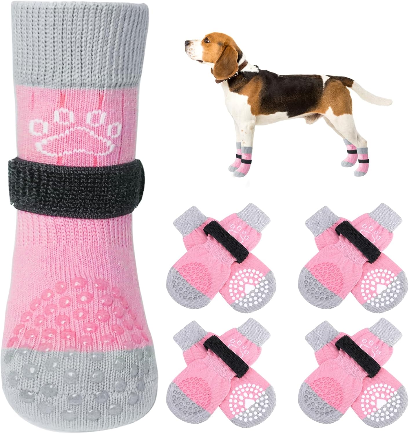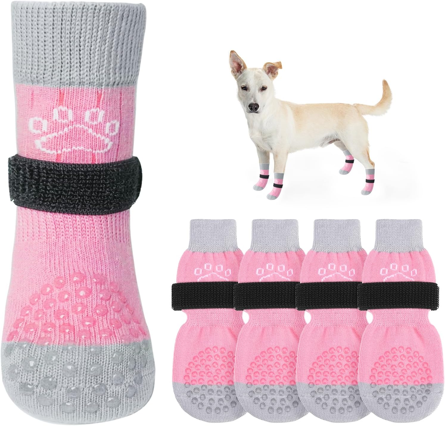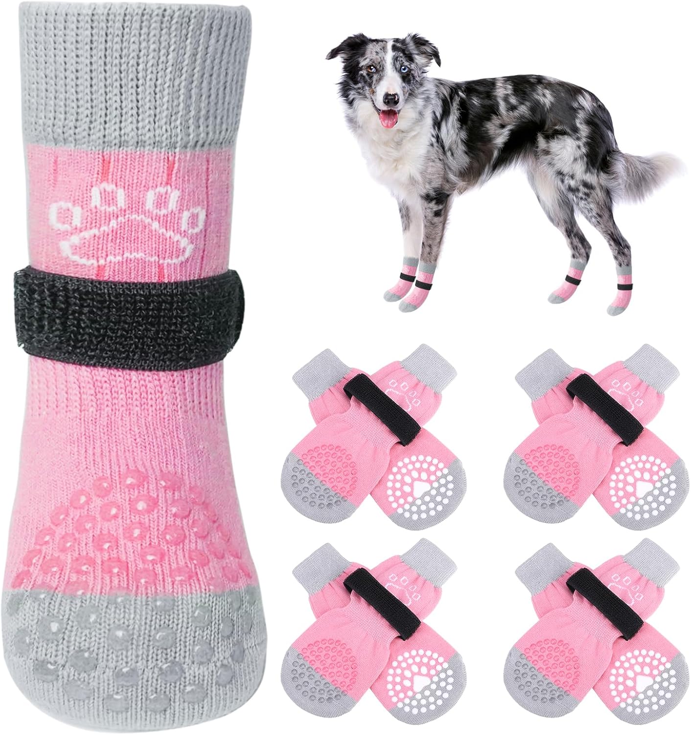 SOFT, COMFORTABLE AND ELASTIC: Our dog socks with grippers are made of elastic and comfortable material, soft and lightweight, perfect fit for your boy/girl's paws, they will be more receptive to it, breathable knit fabric, durable bottom, keep he/she's paws protected all year round.