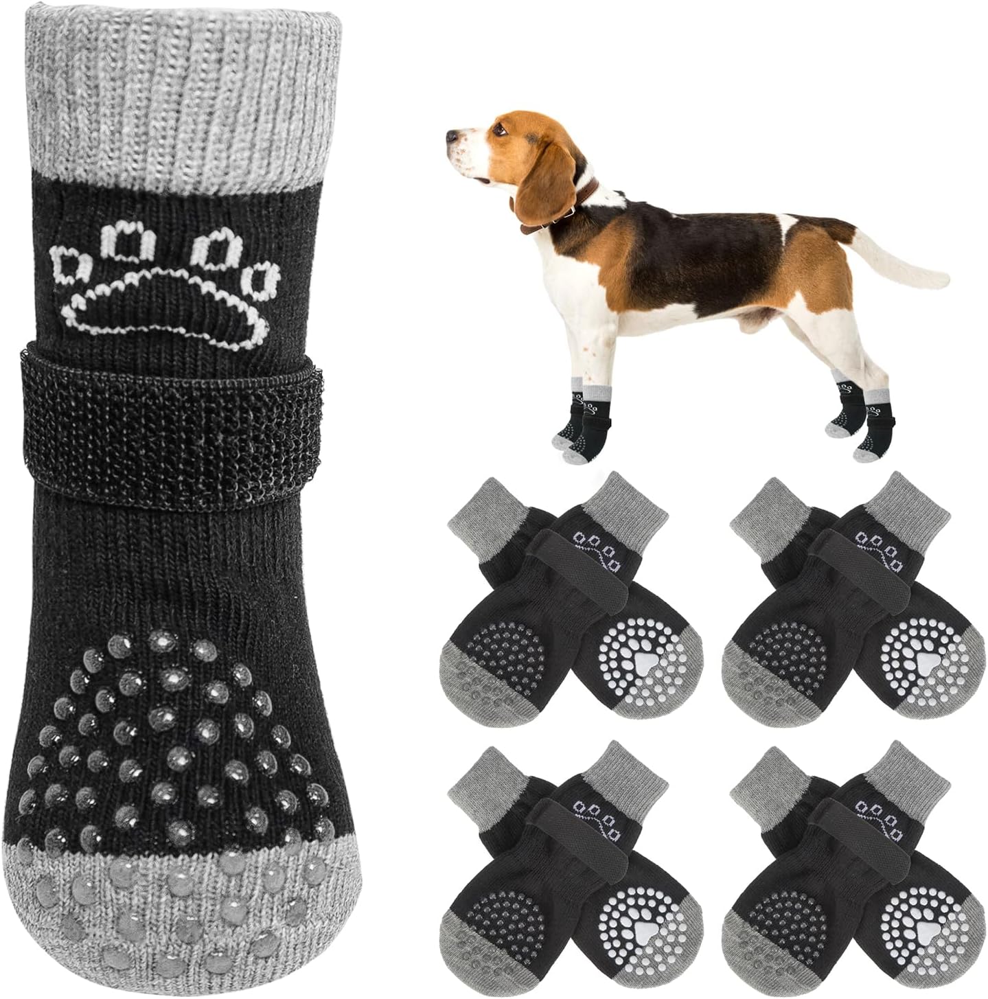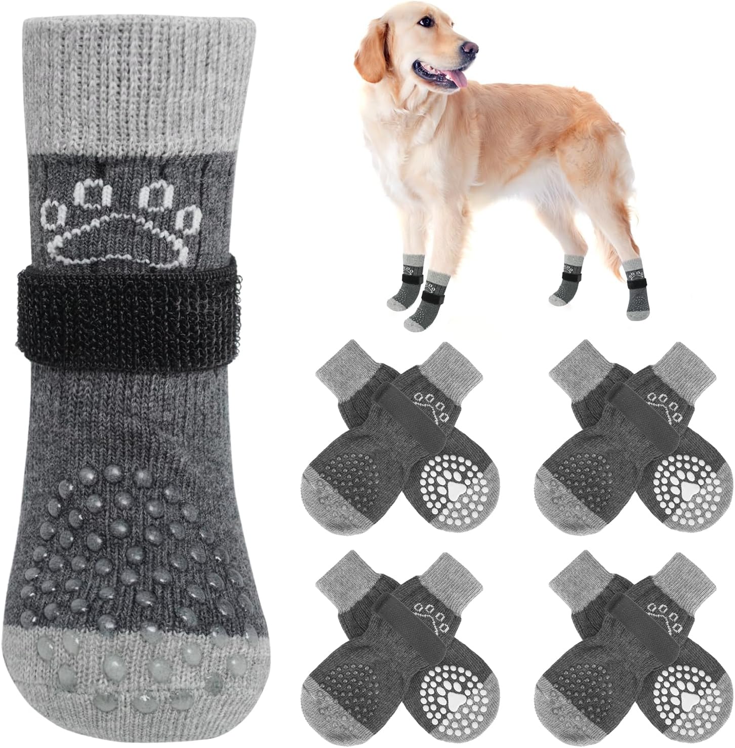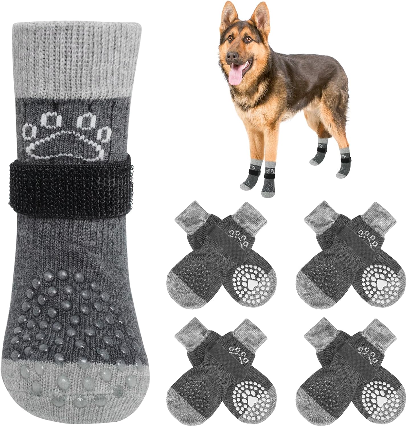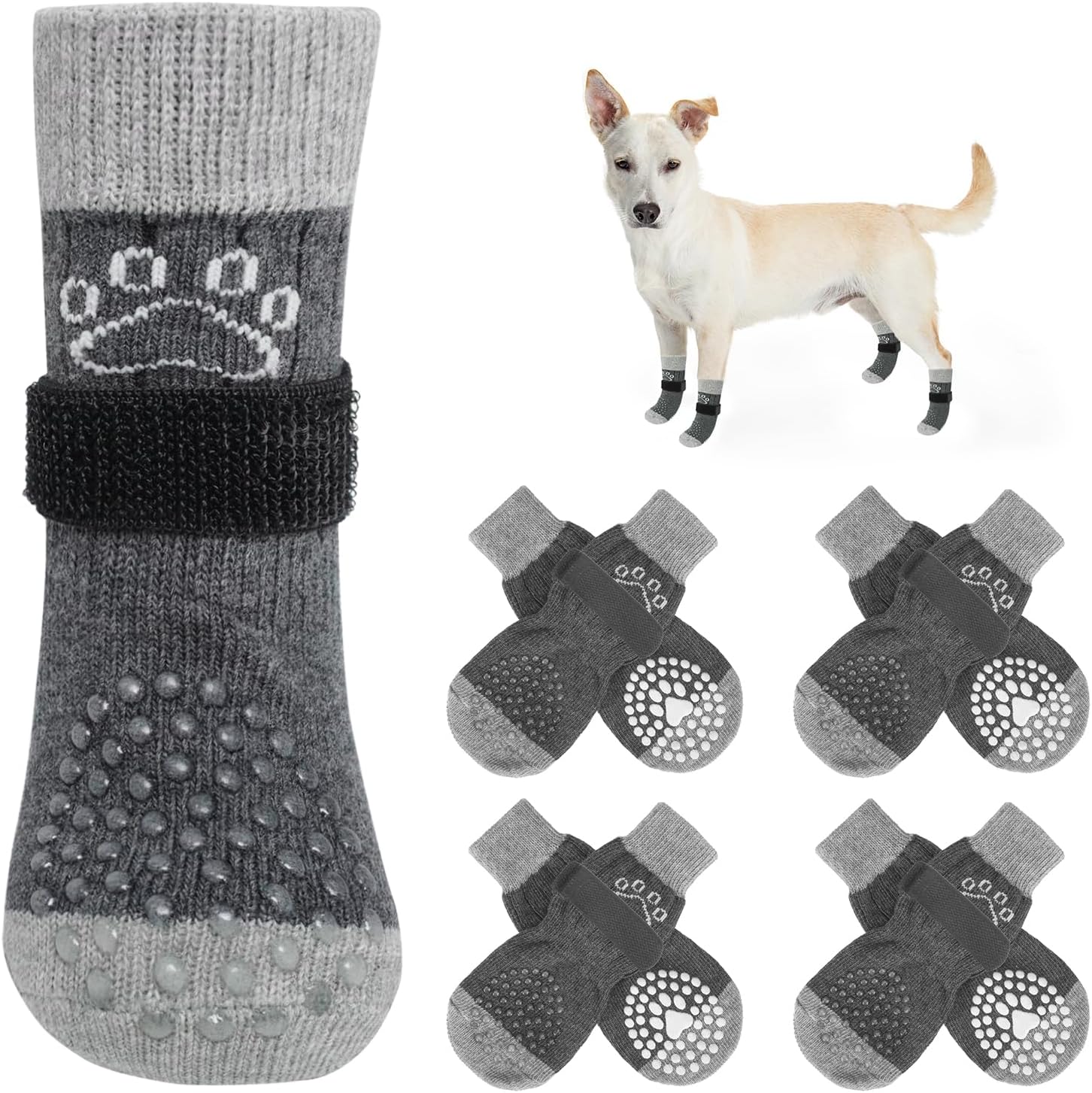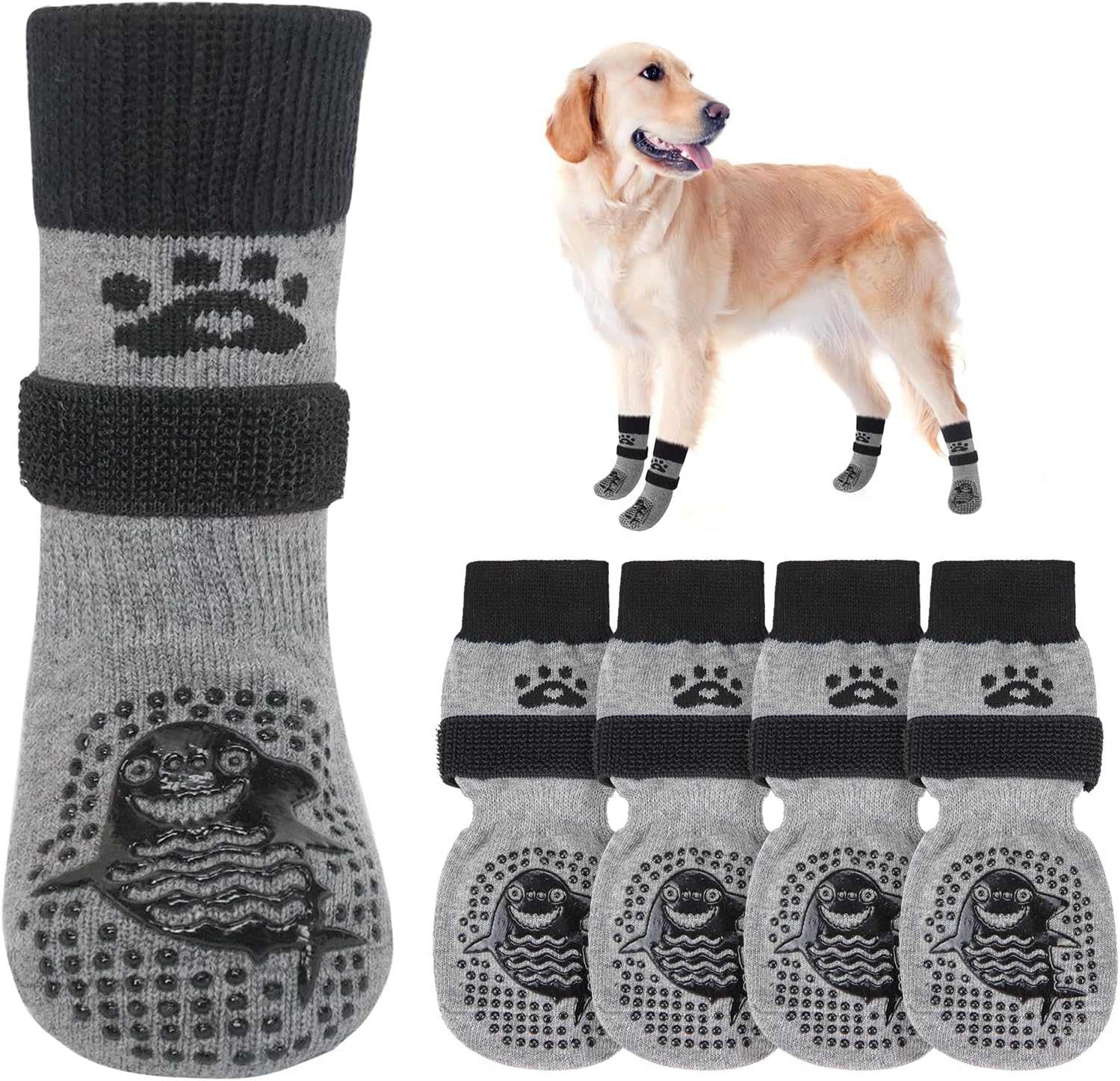 SCENEREAL Dog Socks to Prevent Licking Paws for Hot/Cold Pavement Anti Slip, Dog Shoes for Hardwood Floors, Dog Boots & Paw Protectors with Grippers for Small Medium Large Senior Dogs, Grey S