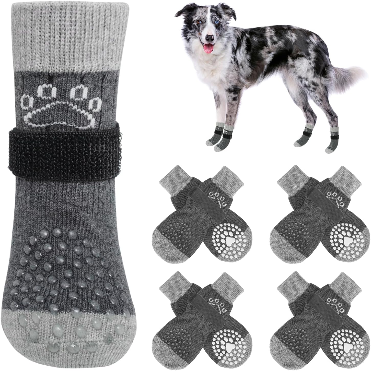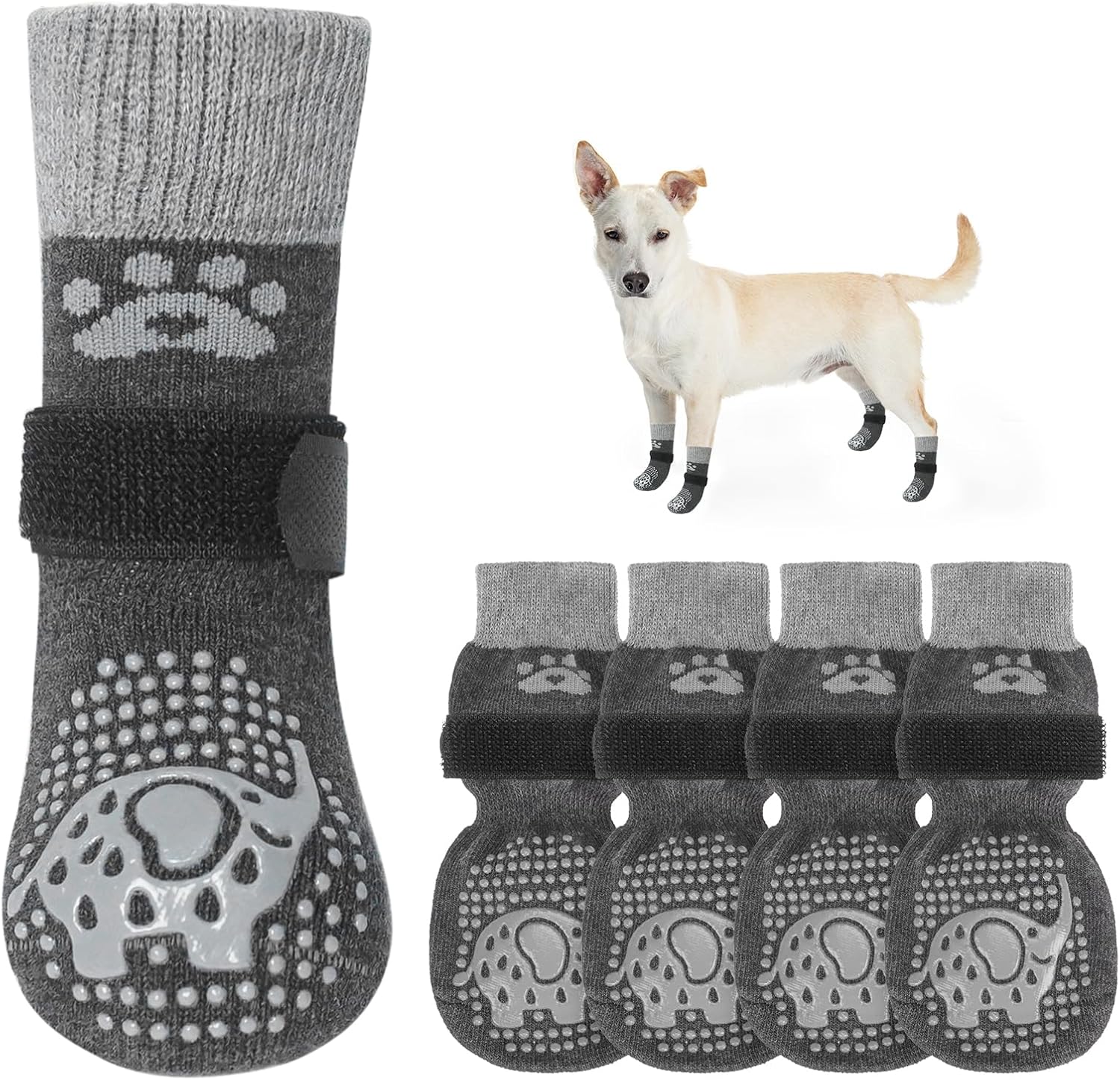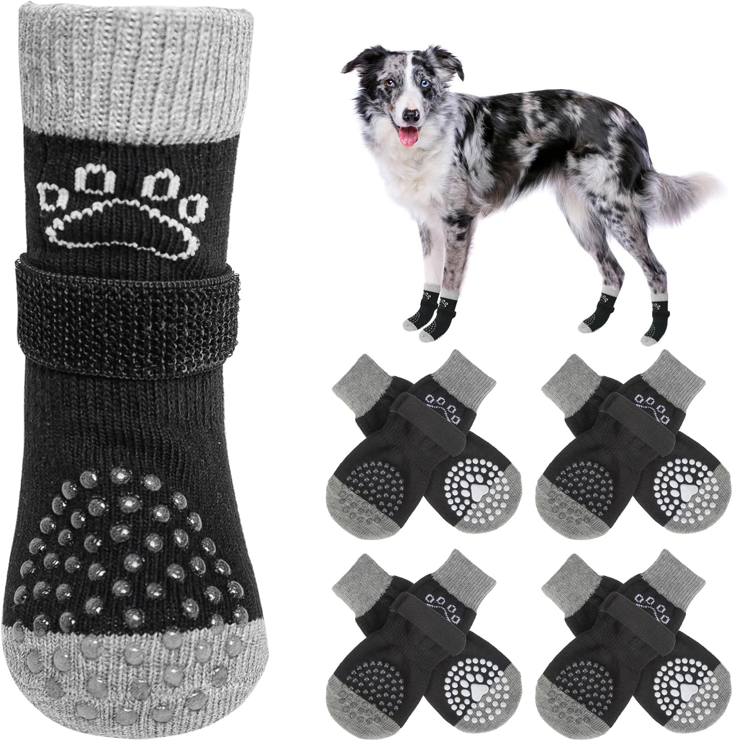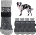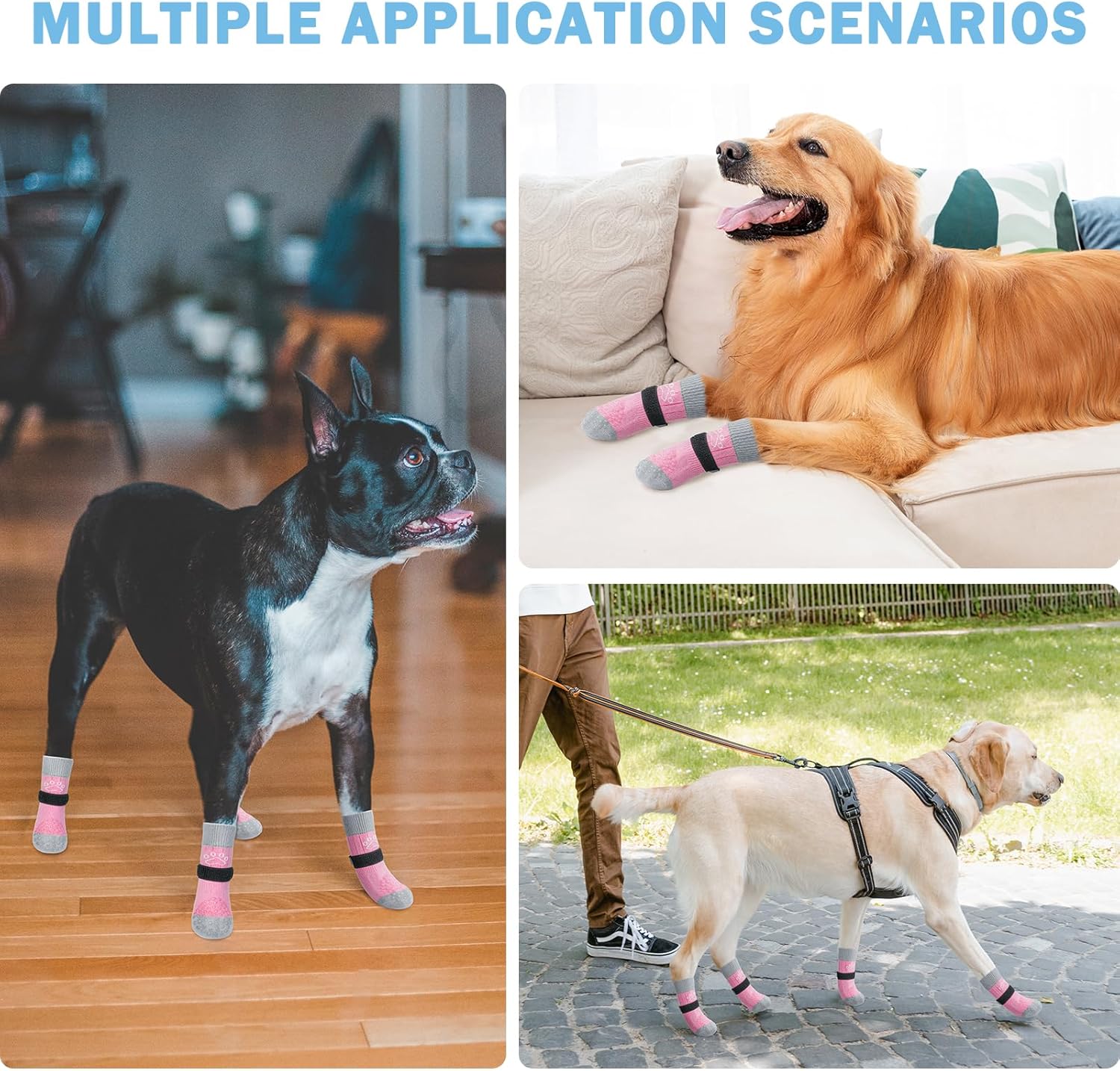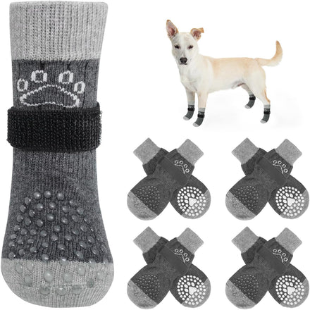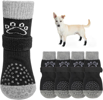 MULTIFUNCTIONAL ANTI-SLIP DOG SOCKS: The anti-slip socks for dogs are the perfect solution to slippery hardwood floors, burning pavement and furniture damaged by dog paws. In addition to providing better traction and protecting your dog's feet from injury, it also prevents your dog from licking and irritating wounds, further aiding in the healing of foot wounds.