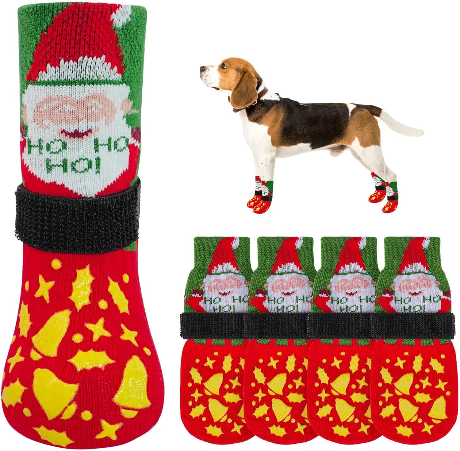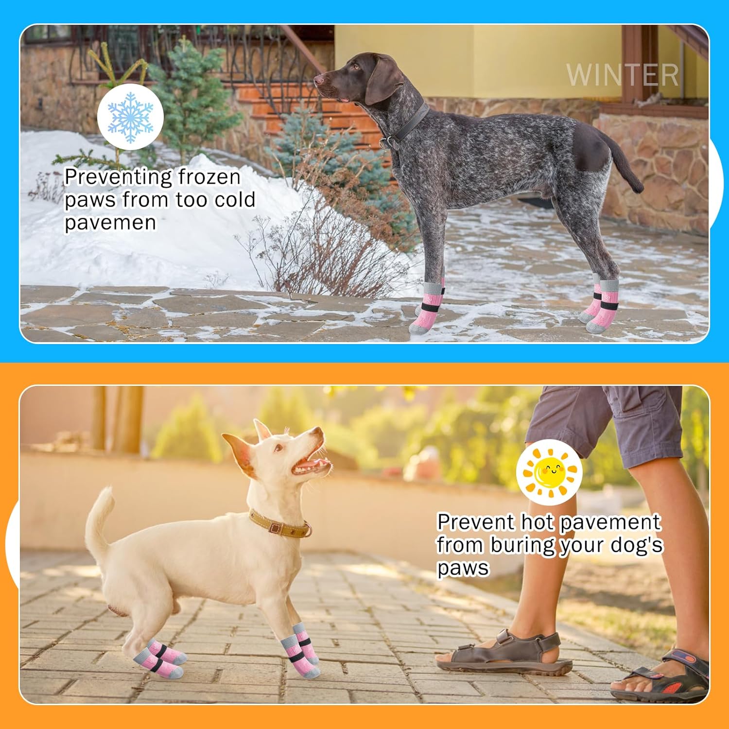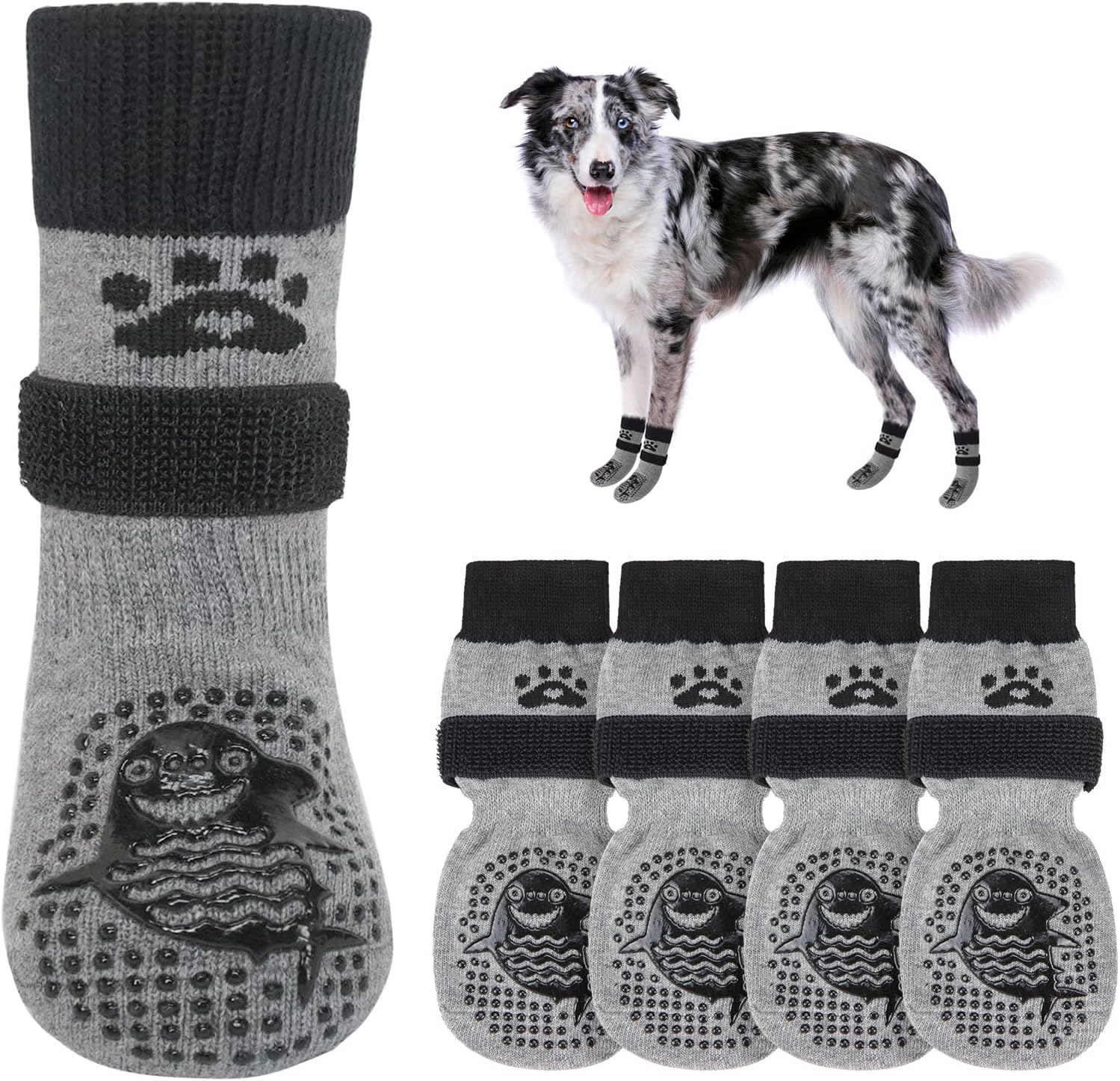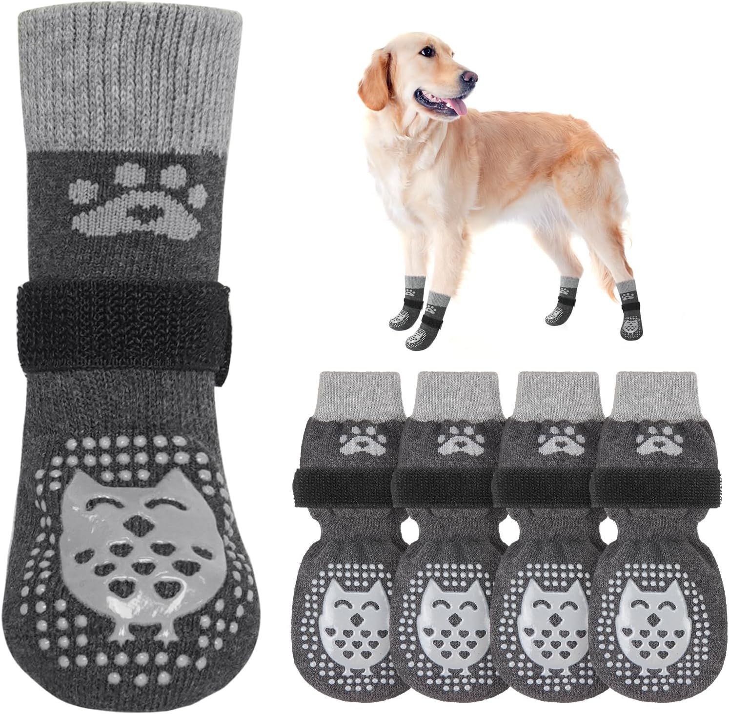 MULTIFUNCTIONAL ANTI-SLIP DOG SOCKS: The anti-slip socks for dogs are the perfect solution to slippery hardwood floors, burning pavement and furniture damaged by dog paws. In addition to providing better traction and protecting your dog's feet from injury, it also prevents your dog from licking and irritating wounds, further aiding in the healing of foot wounds.