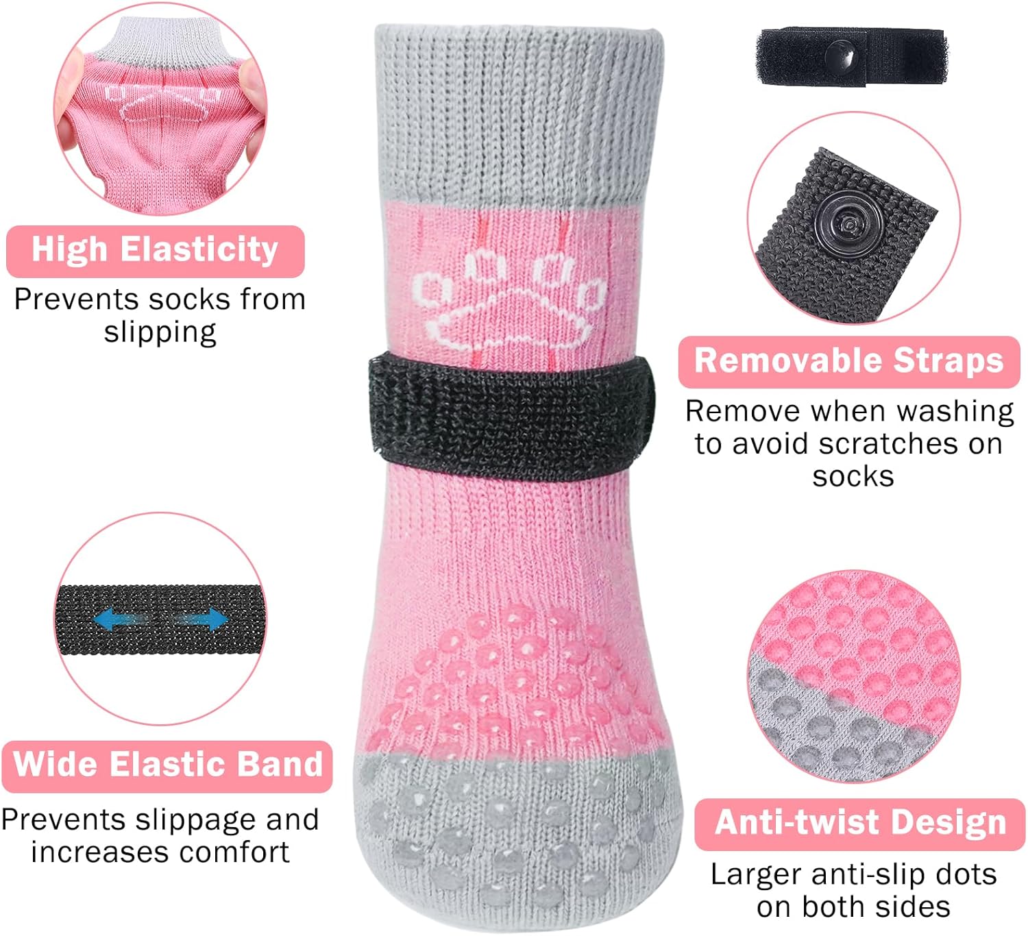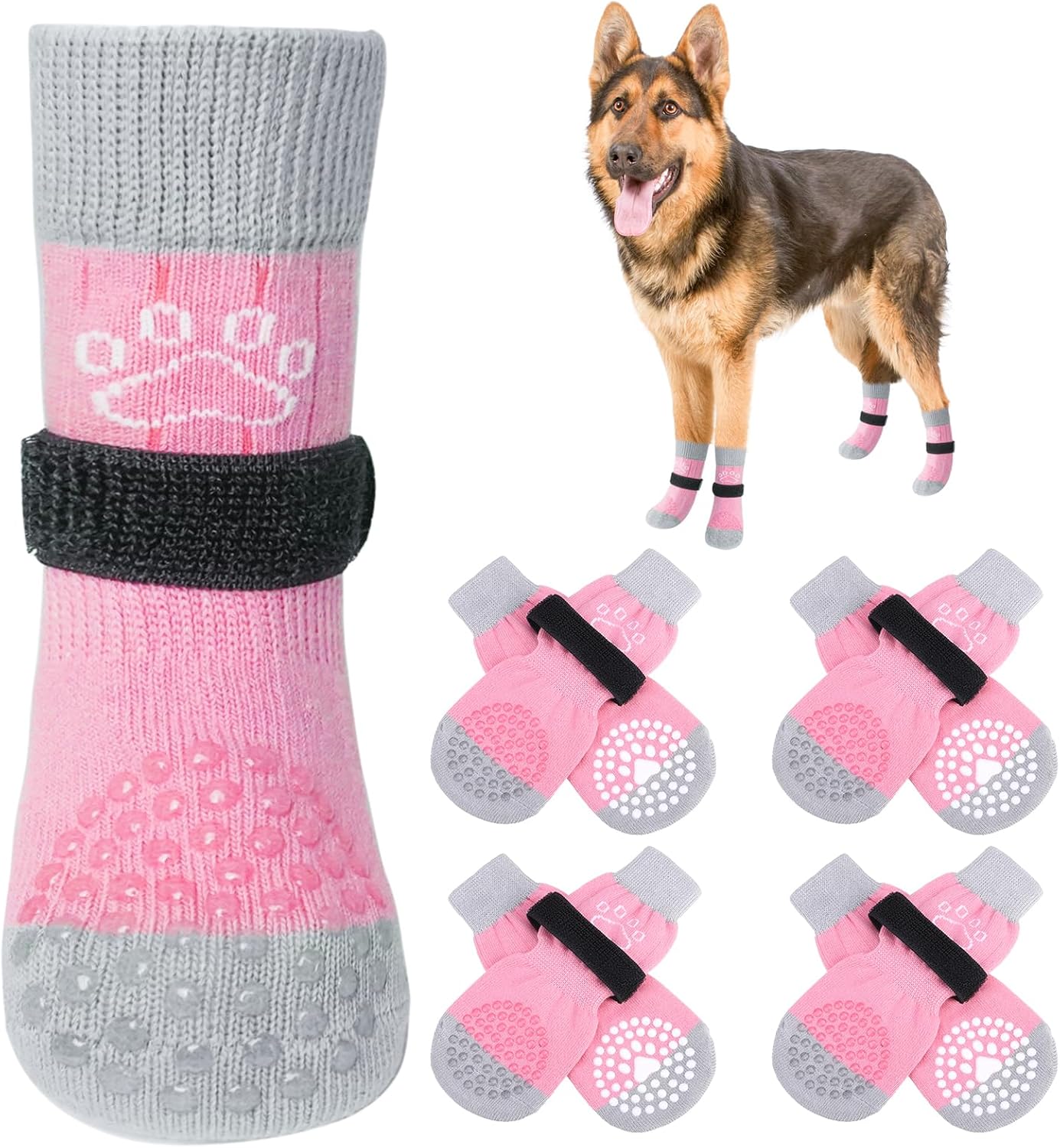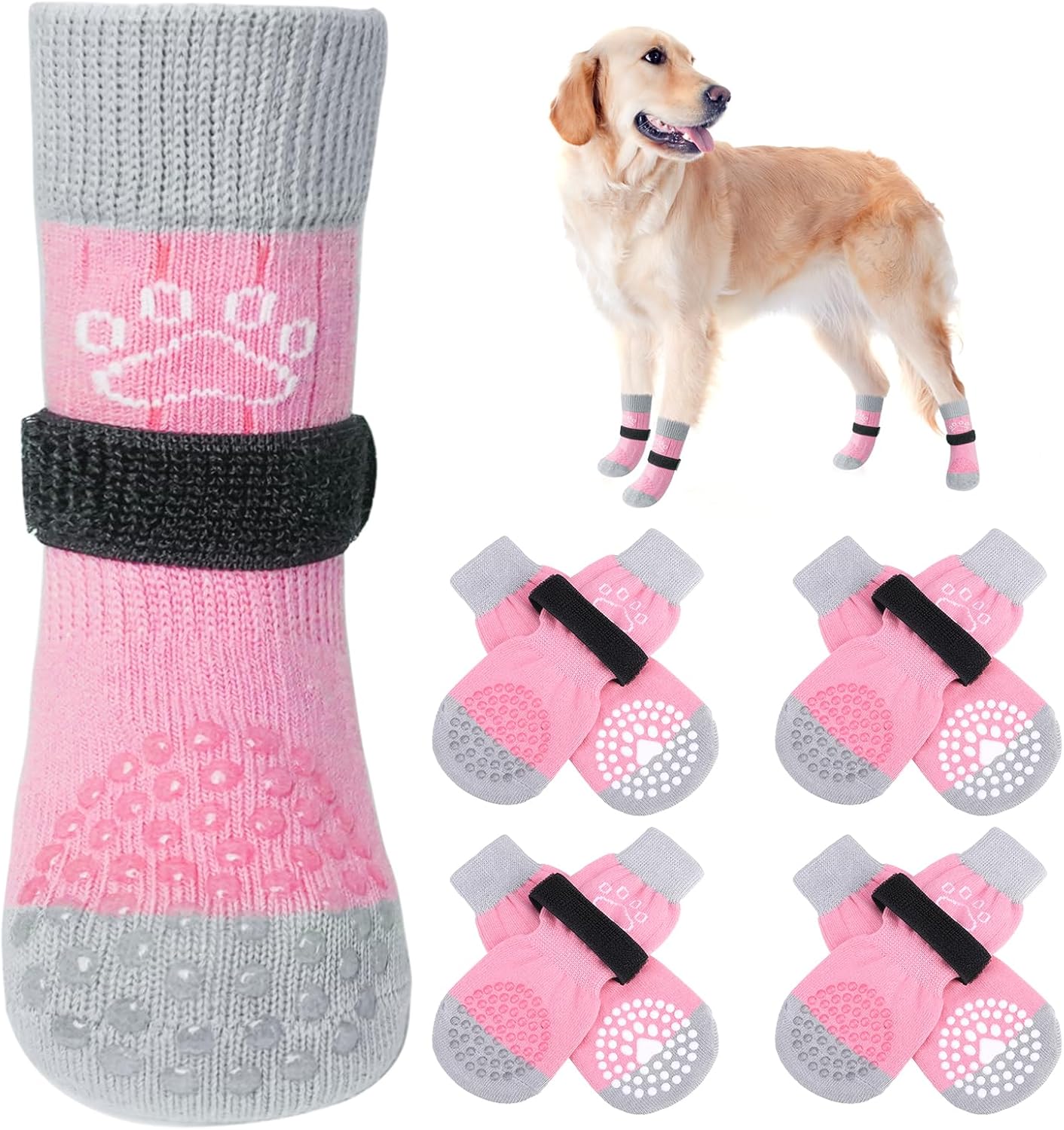 SCENEREAL Dog Socks to Prevent Licking Paws for Hot/Cold Pavement Anti Slip, Dog Shoes for Hardwood Floors, Dog Boots & Paw Protectors with Grippers for Small Medium Large Senior Dogs, Pink M