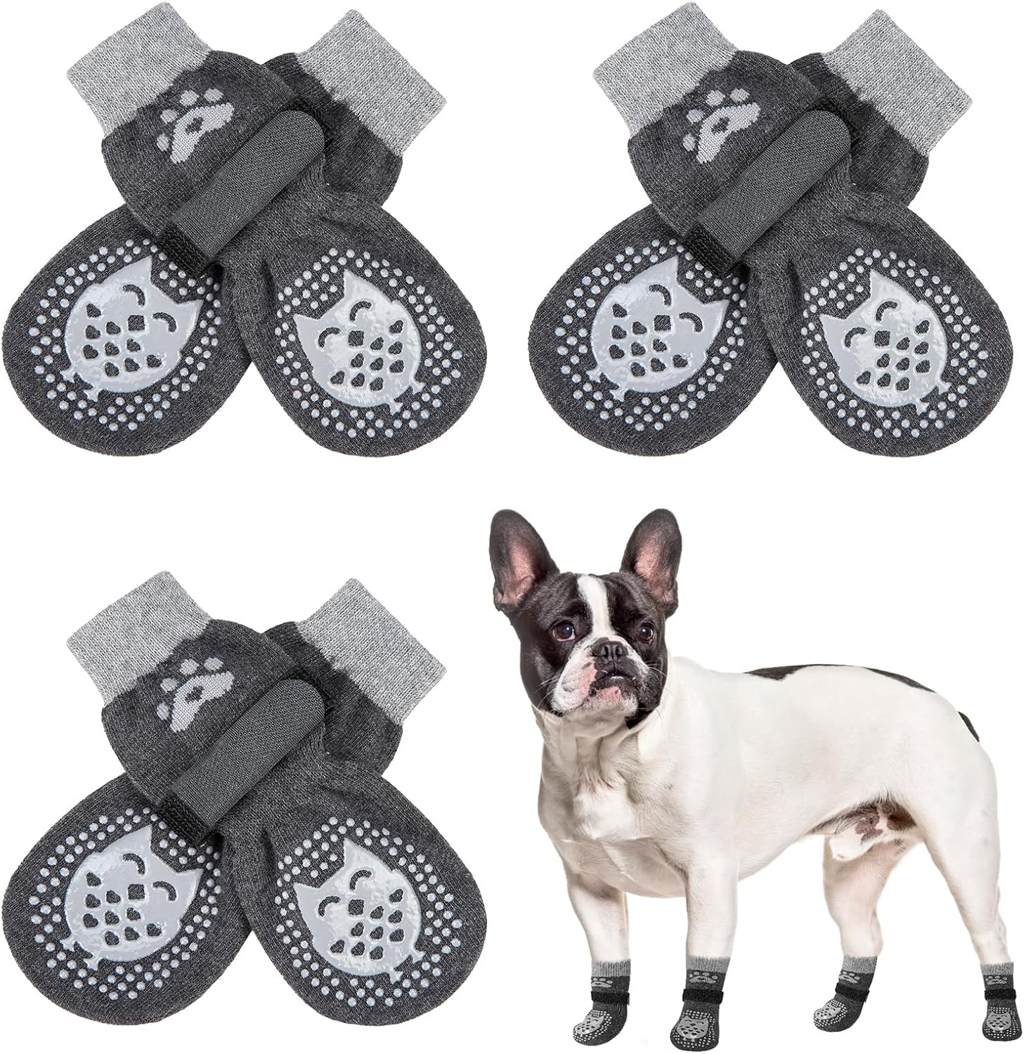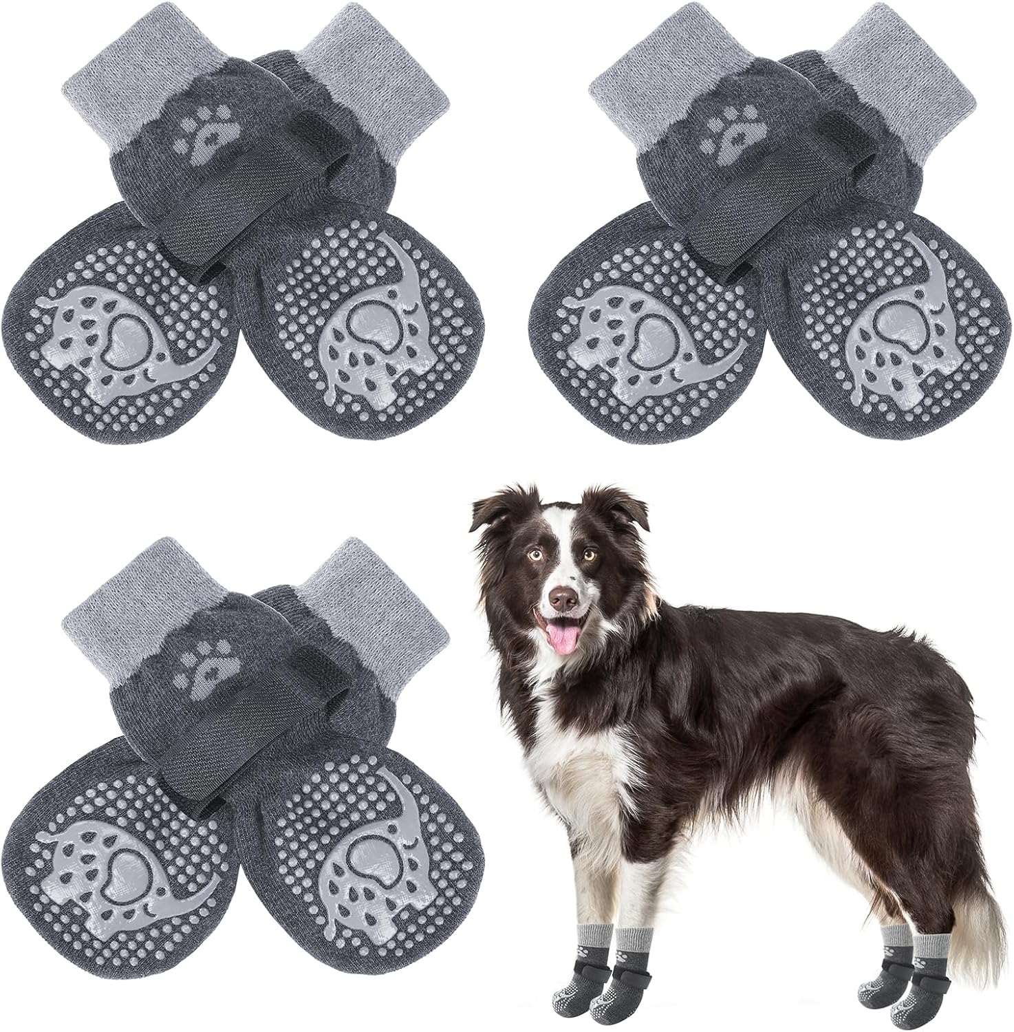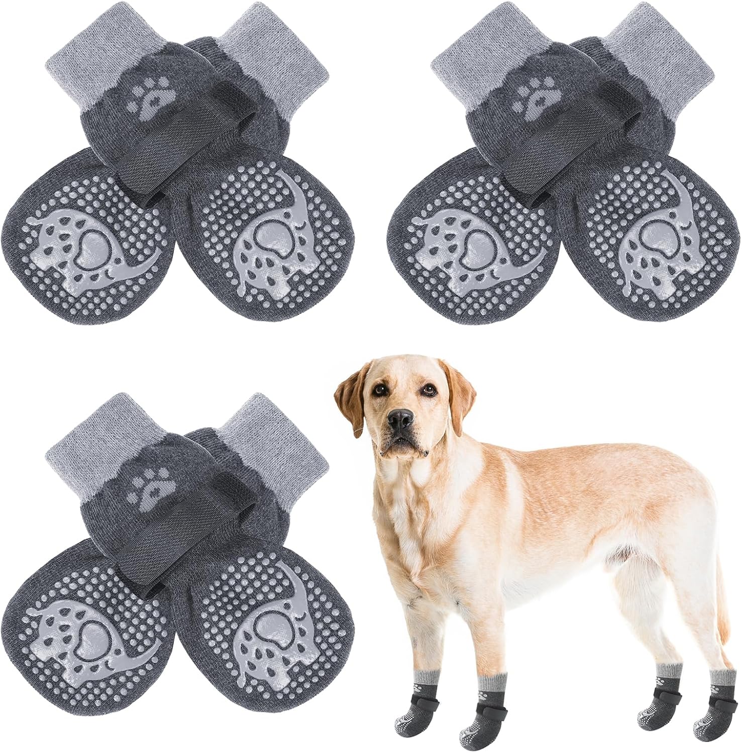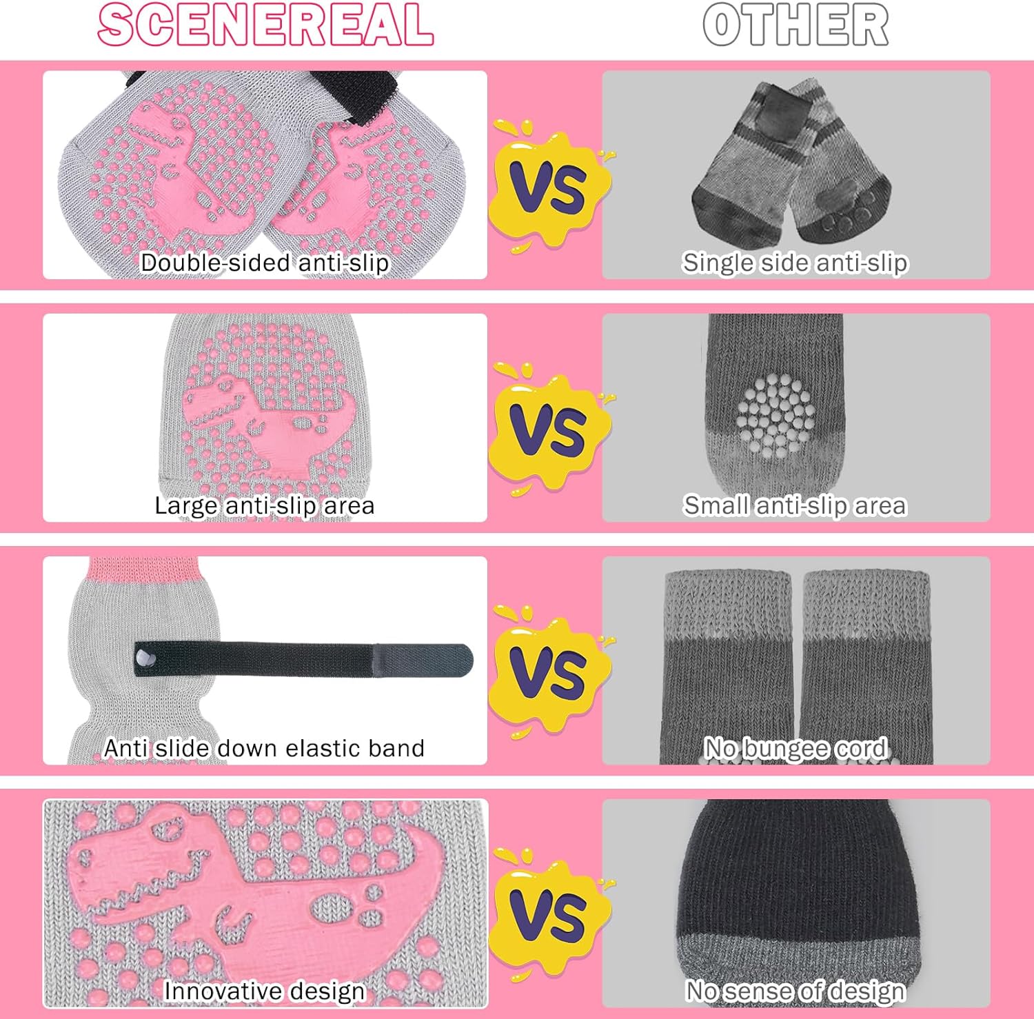 SCENEREAL Double Side Anti-Slip Dog Socks for Hardwood Floors to Stop Licking Paws, Non-Slip Dog Shoes for Hot/Cold Pavement, Slipping, Paw Protectors with Grippers