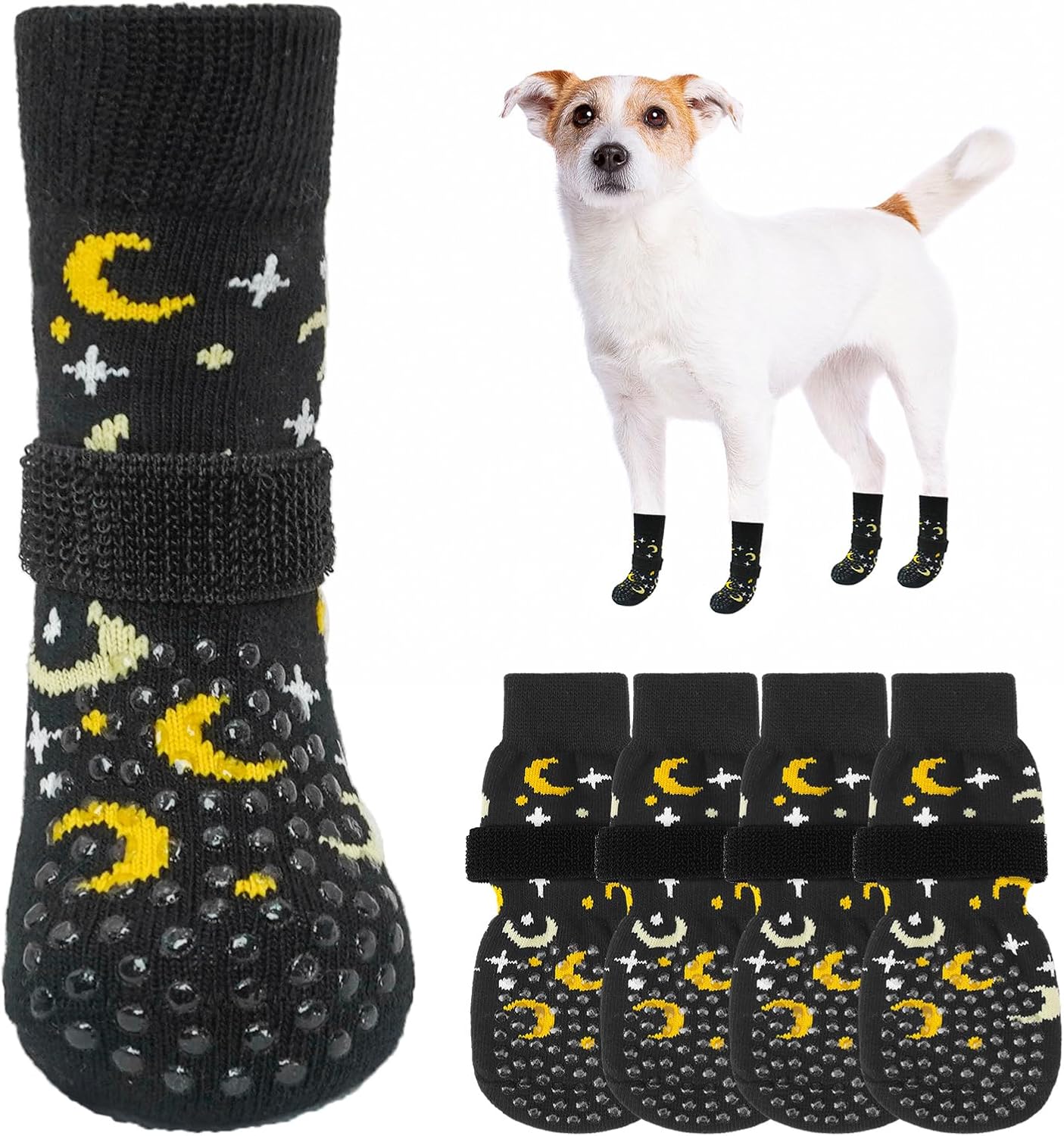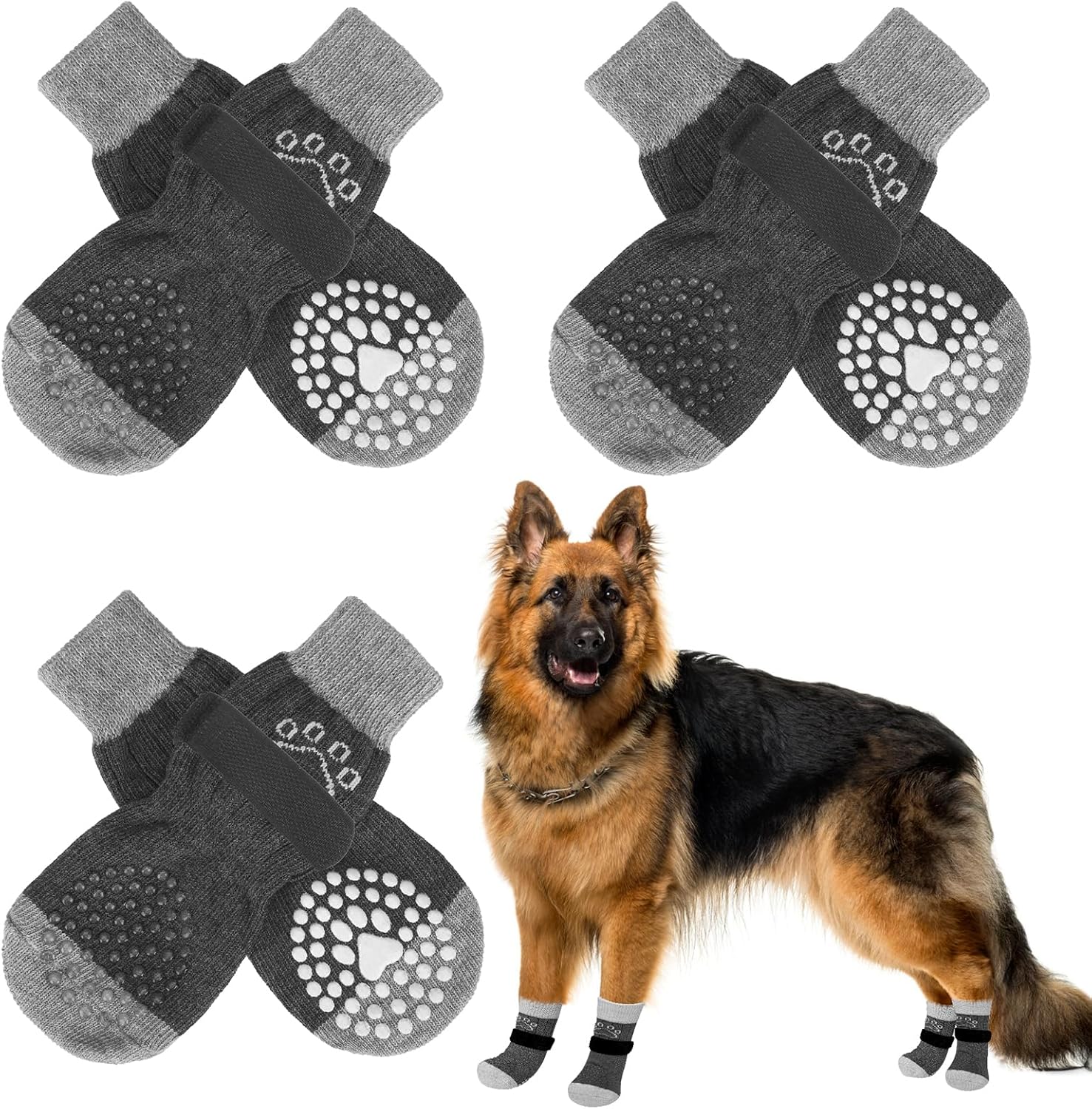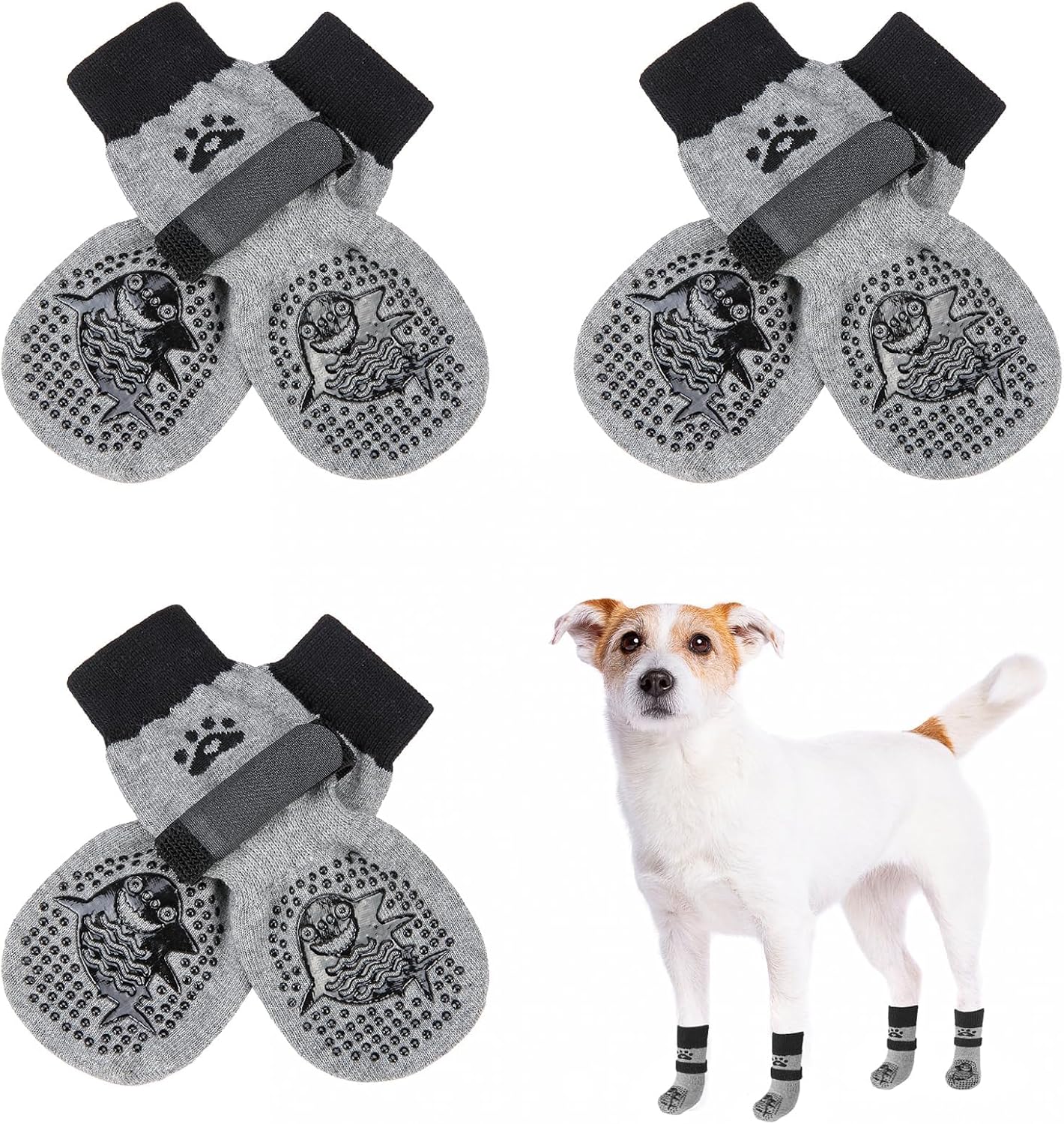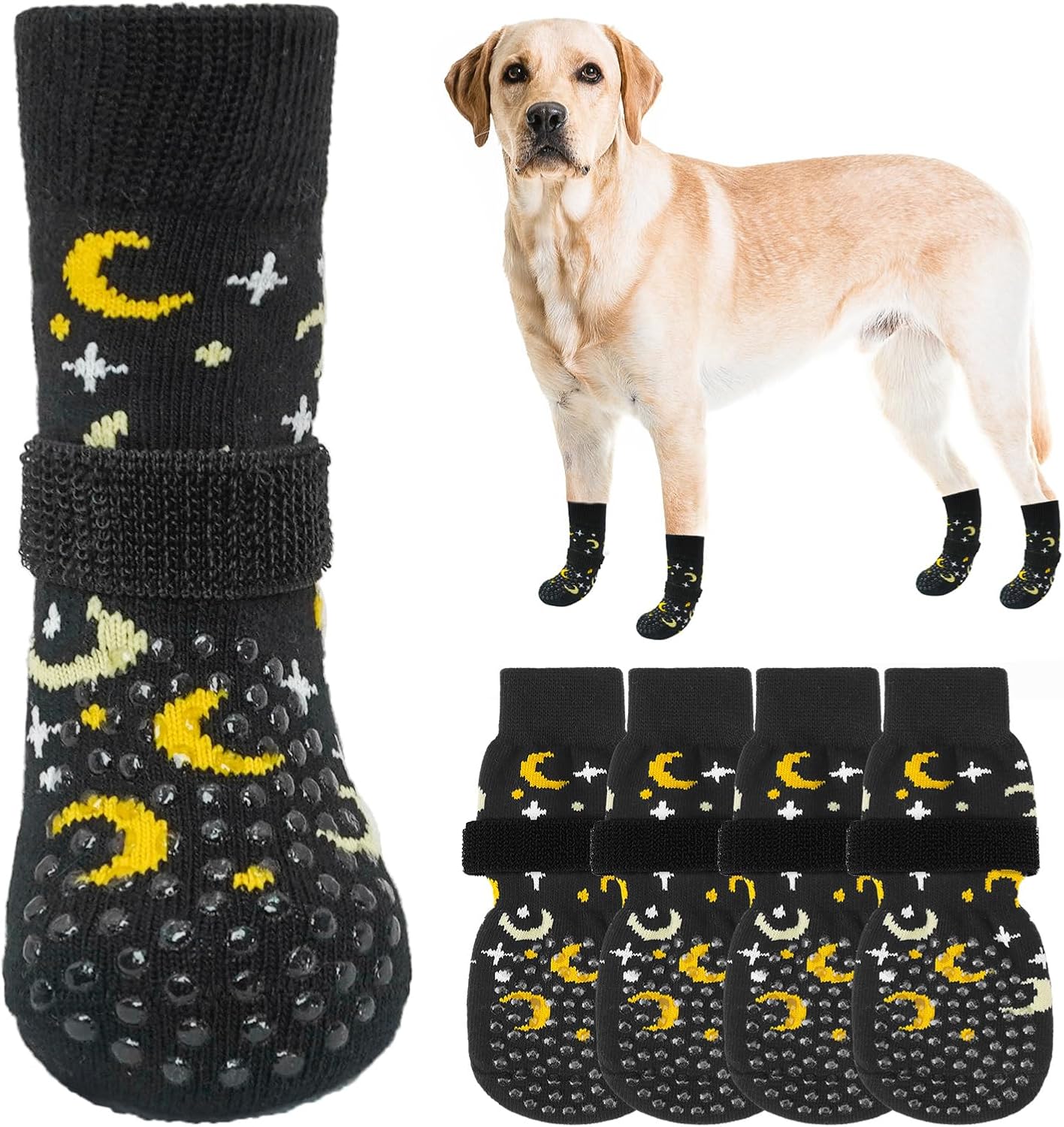 SCENEREAL Double Side Anti-Slip Dog Socks for Hardwood Floors to Stop Licking Paws, Non-Slip Dog Shoes for Hot/Cold Pavement, Slipping, Paw Protectors with Grippers