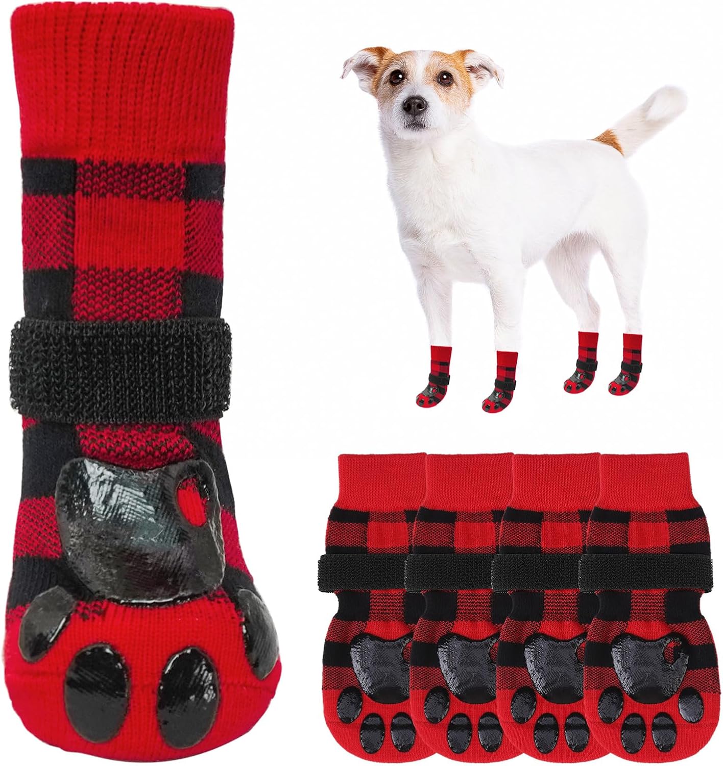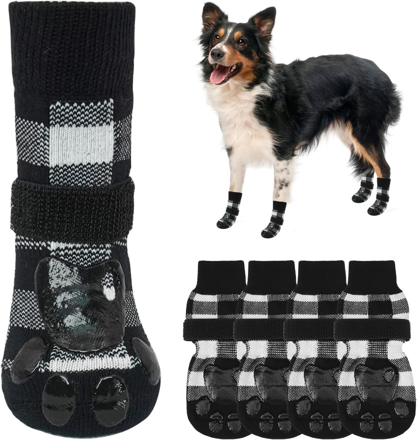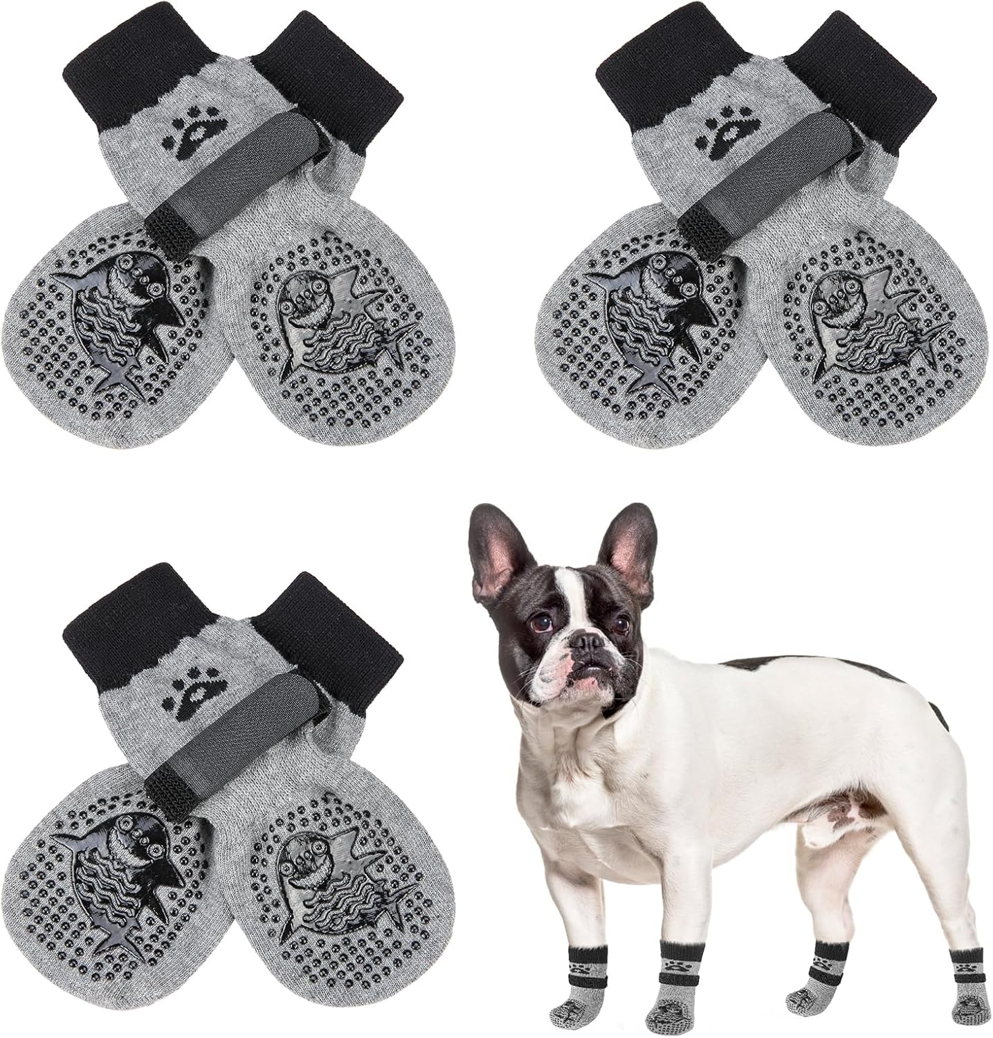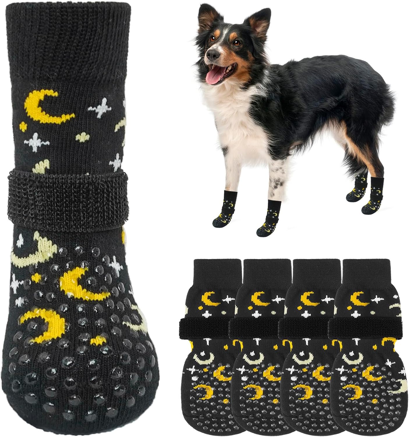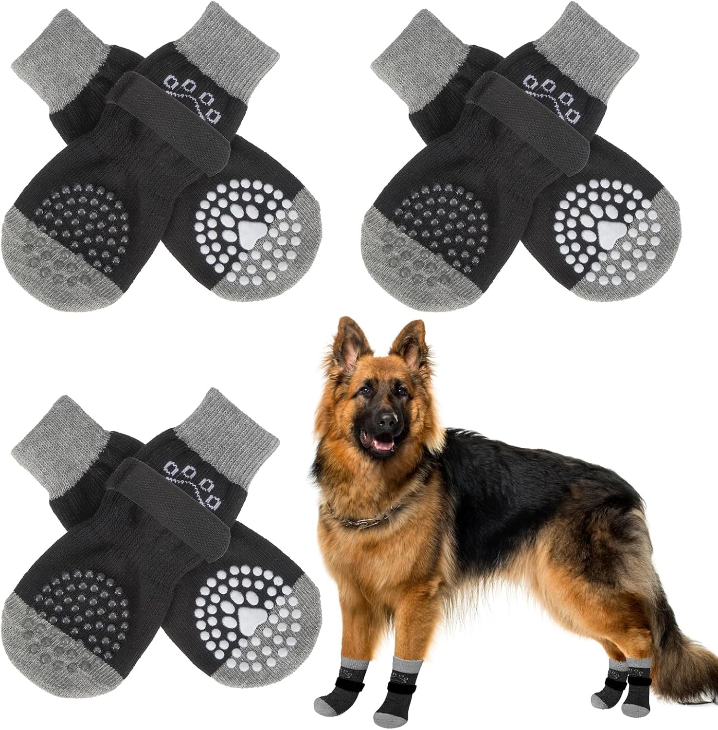 SCENEREAL Double Side Anti-Slip Dog Socks for Hardwood Floors to Stop Licking Paws, Non-Slip Dog Shoes for Hot/Cold Pavement, Slipping, Paw Protectors with Grippers