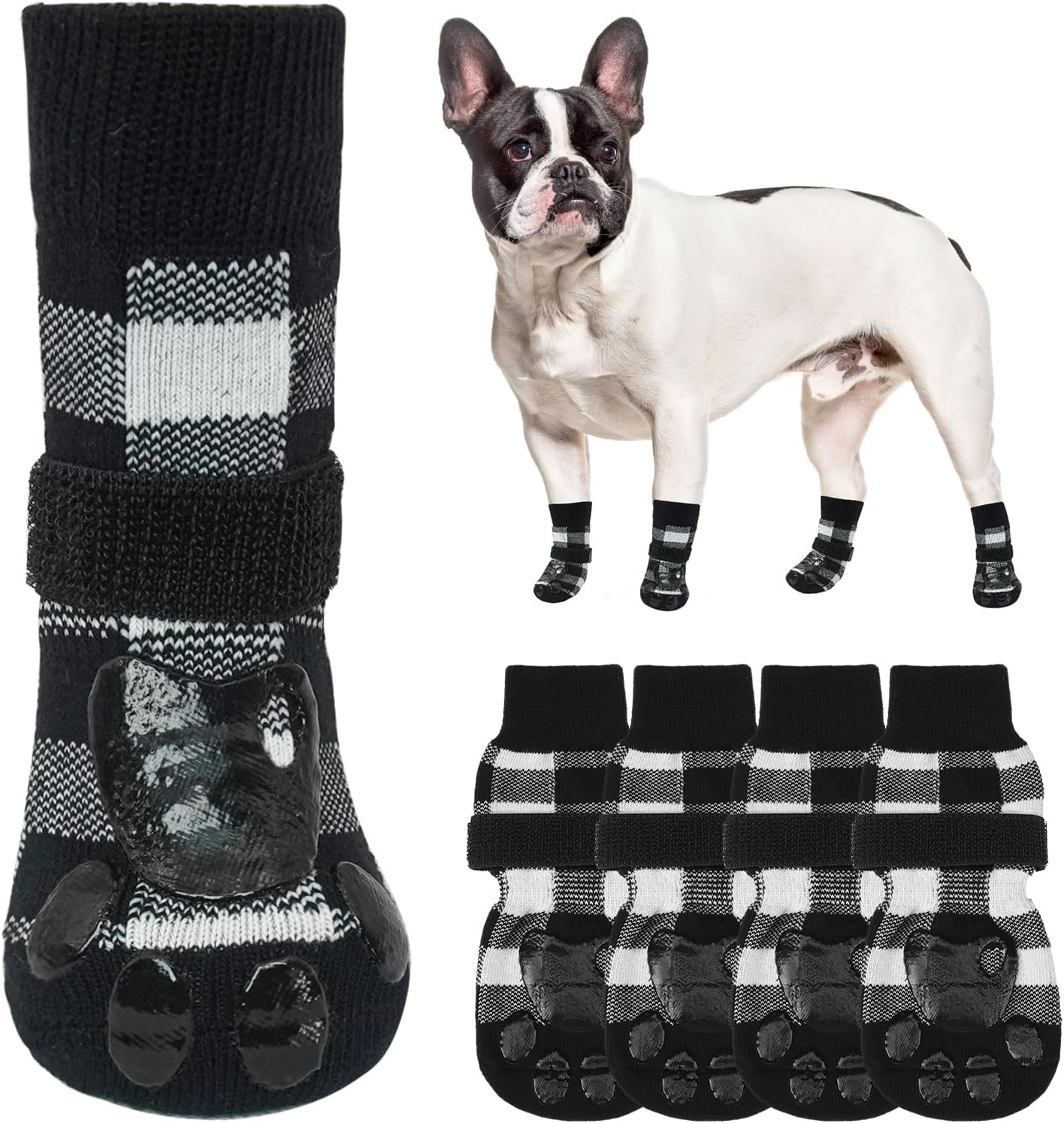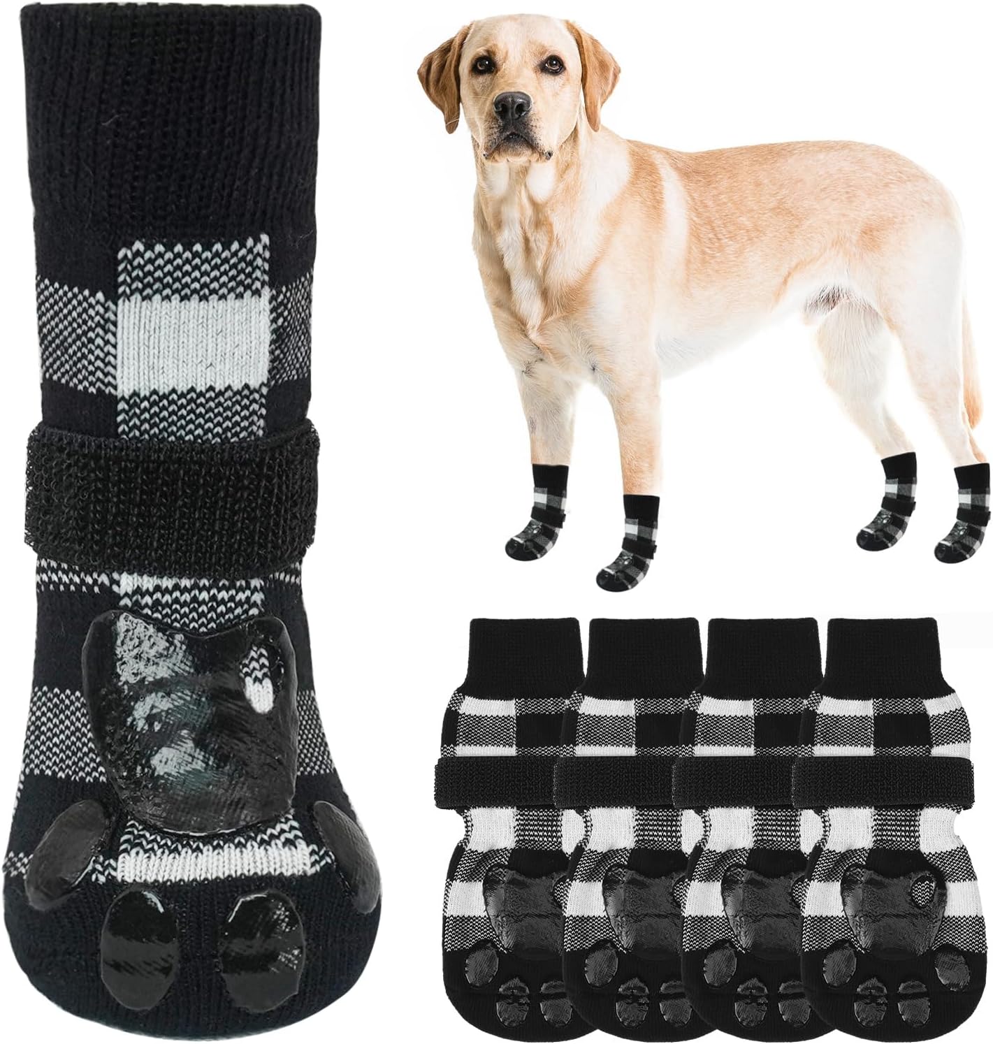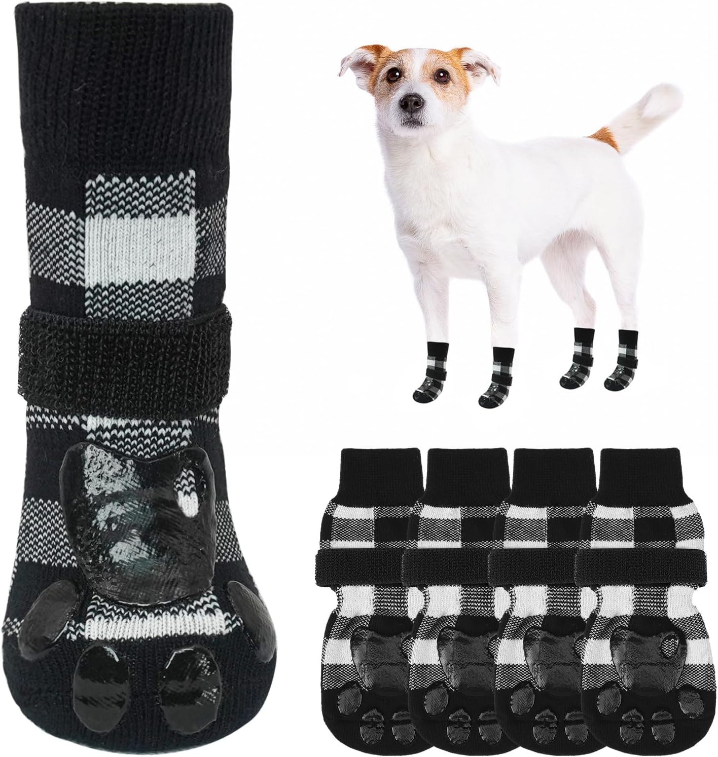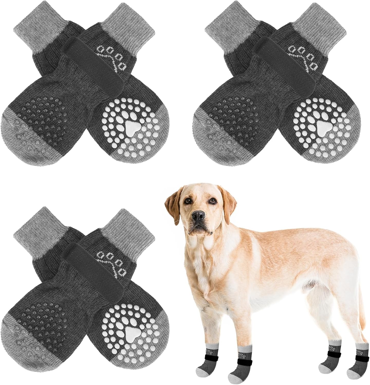 SCENEREAL Double Side Anti-Slip Dog Socks for Hardwood Floors to Stop Licking Paws, Non-Slip Dog Shoes for Hot/Cold Pavement, Slipping, Paw Protectors with Grippers