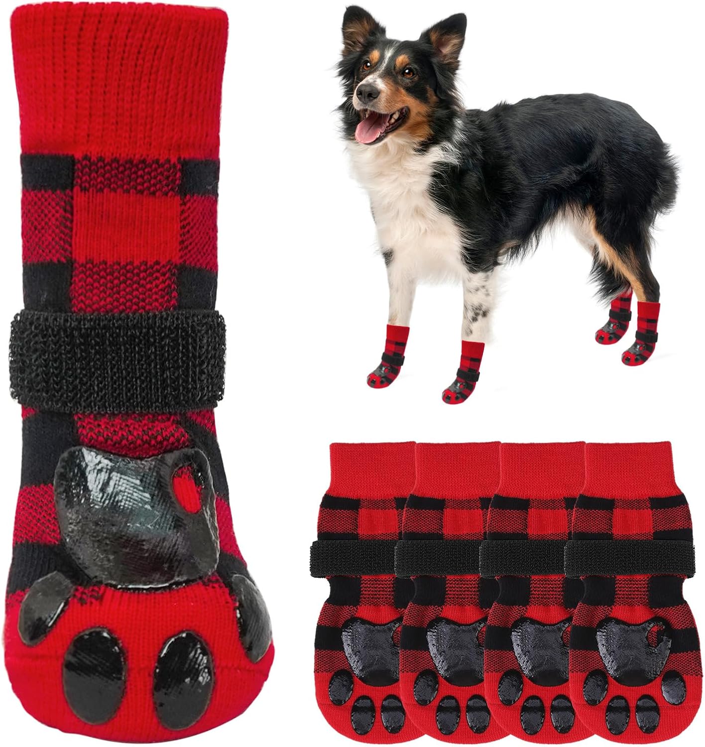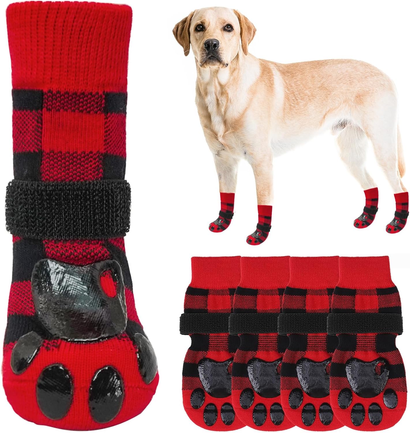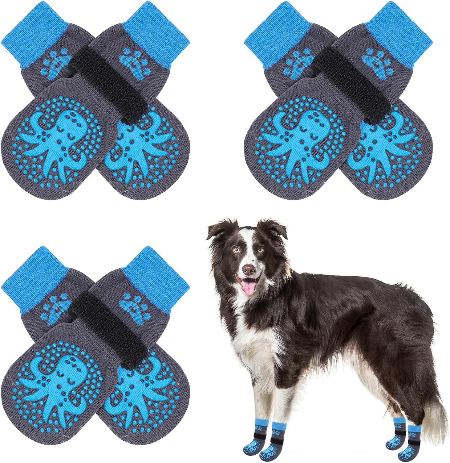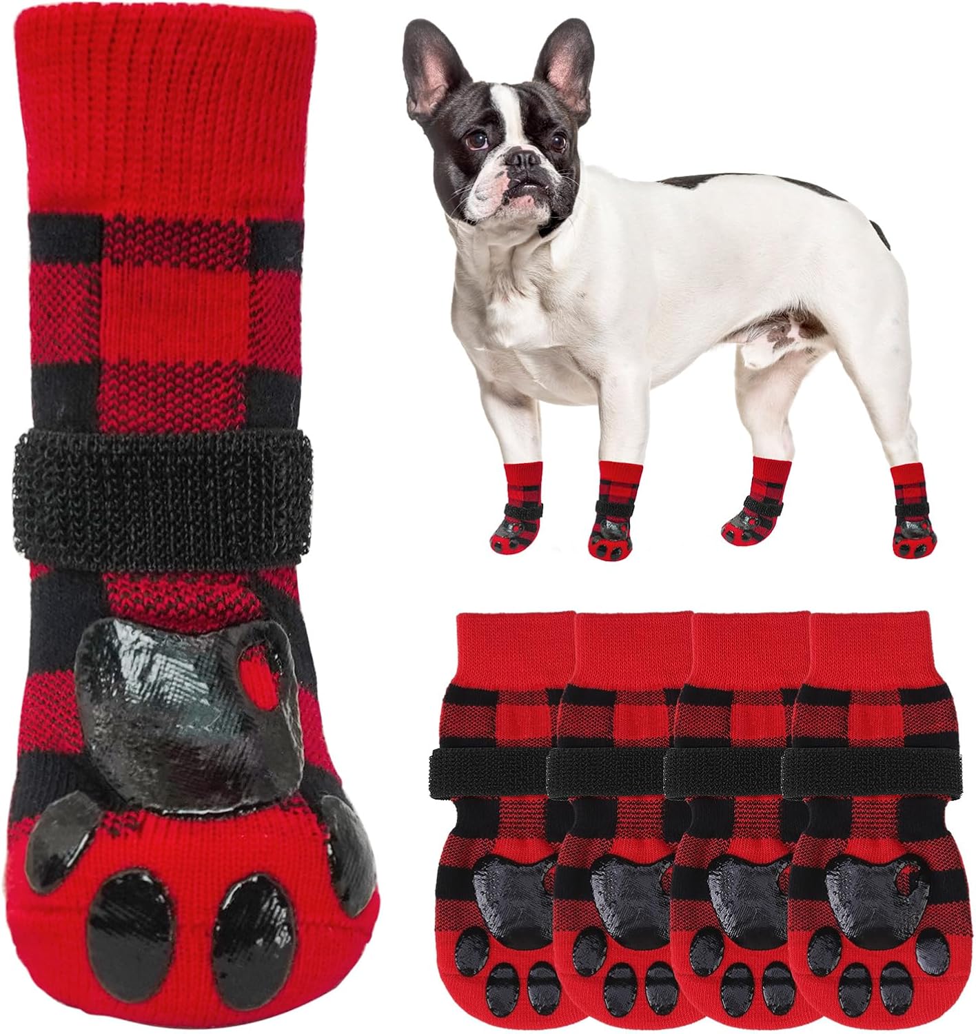 SCENEREAL Double Side Anti-Slip Dog Socks for Hardwood Floors to Stop Licking Paws, Non-Slip Dog Shoes for Hot/Cold Pavement, Slipping, Paw Protectors with Grippers