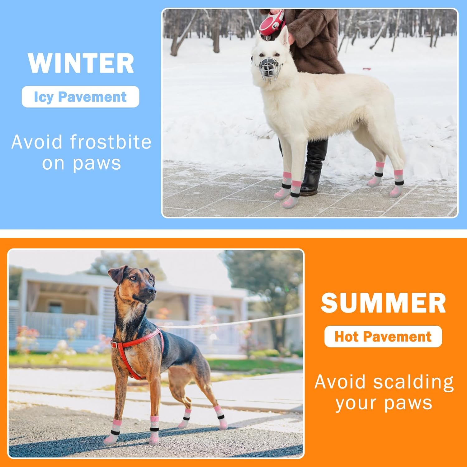 MULTIPLE SIZES: The dog socks for hot pavement can be worn by Chihuahuas to Goldens, you can choose the right size for your furry baby. Note, please measure your dog's paws carefully before you buy.
