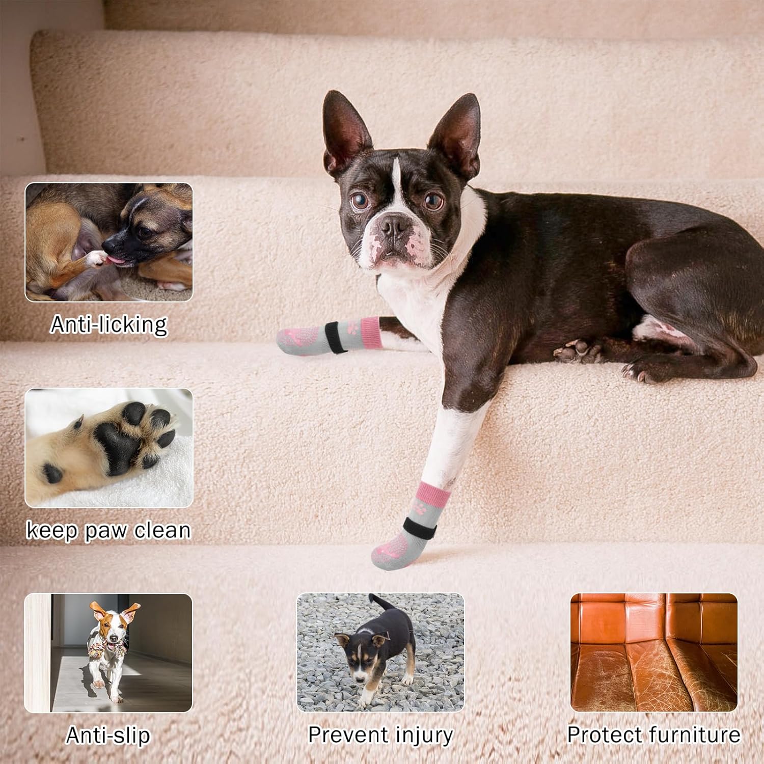 MULTI-SCENE USE: The dog socks with grippers can be used for senior dogs, but also for energetic dogs to prevent them from falling and from licking when they are injured. They can also be worn with clothing for more cuteness.