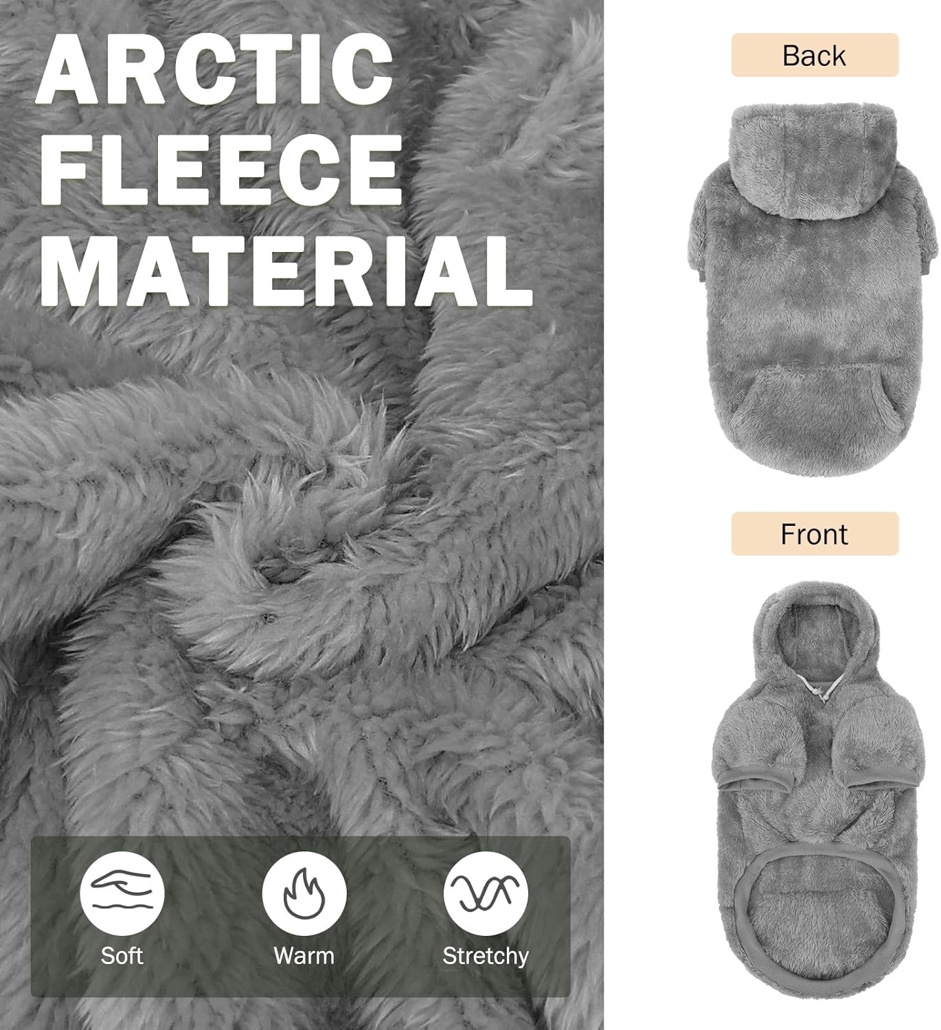 CONVENIENT PULLOVER DESIGN: The pullover dog sweater design makes this dog suit easy to put on and take off. The hoodie catsuit for puppies is cut high on the belly, making it easy to go to the bathroom and not easy to get dirty. The hoodie is very easy to care for, supports machine washing and hand washing, and can be machine washed in cold water on a gentle cycle, followed by low-temperature drying or sun drying.