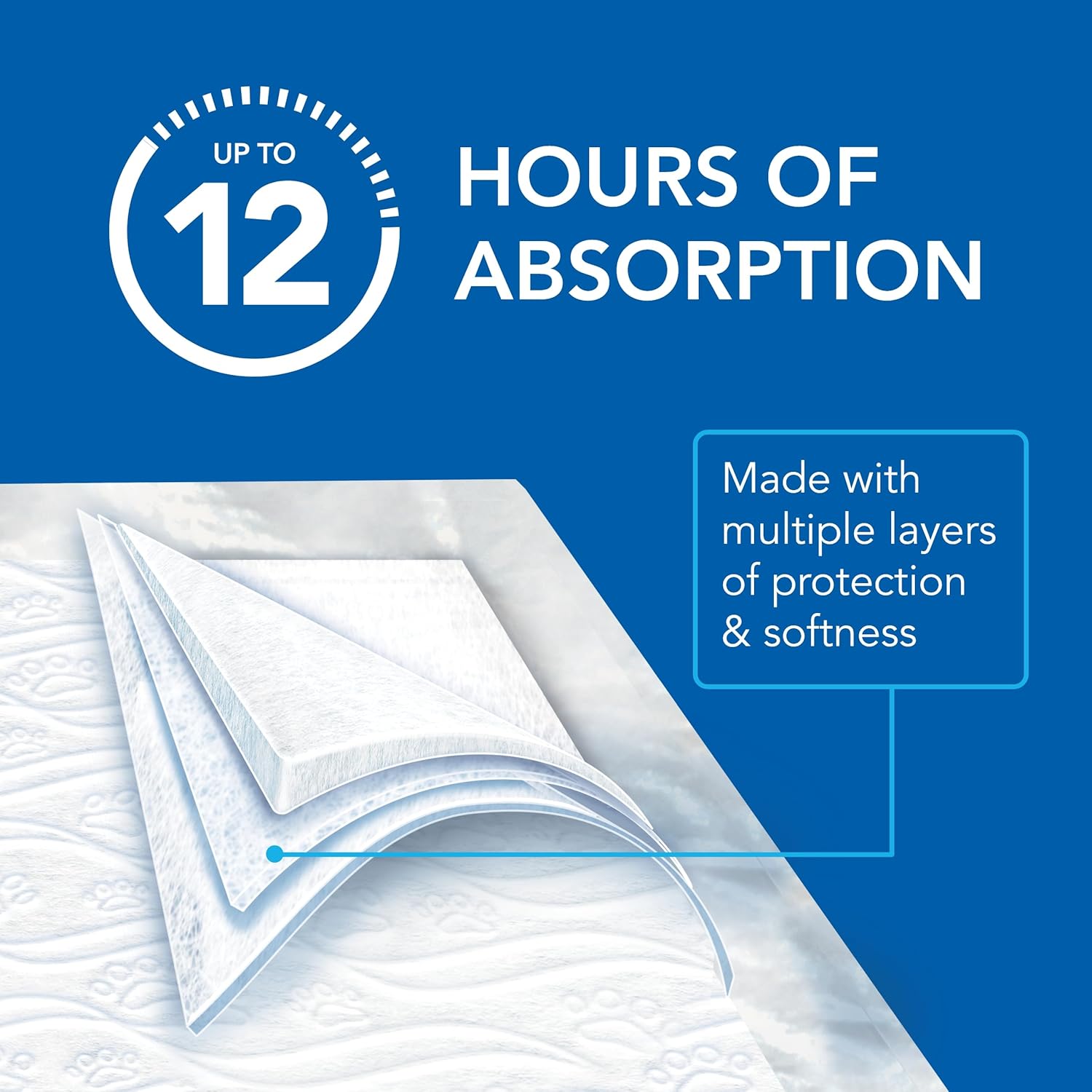 - Up to 12 Hours Absorption: Our multi-layered disposable pee pads have soft layers of protection and a water-resistant backing, helping keep your pet comfortable and your home odor-free