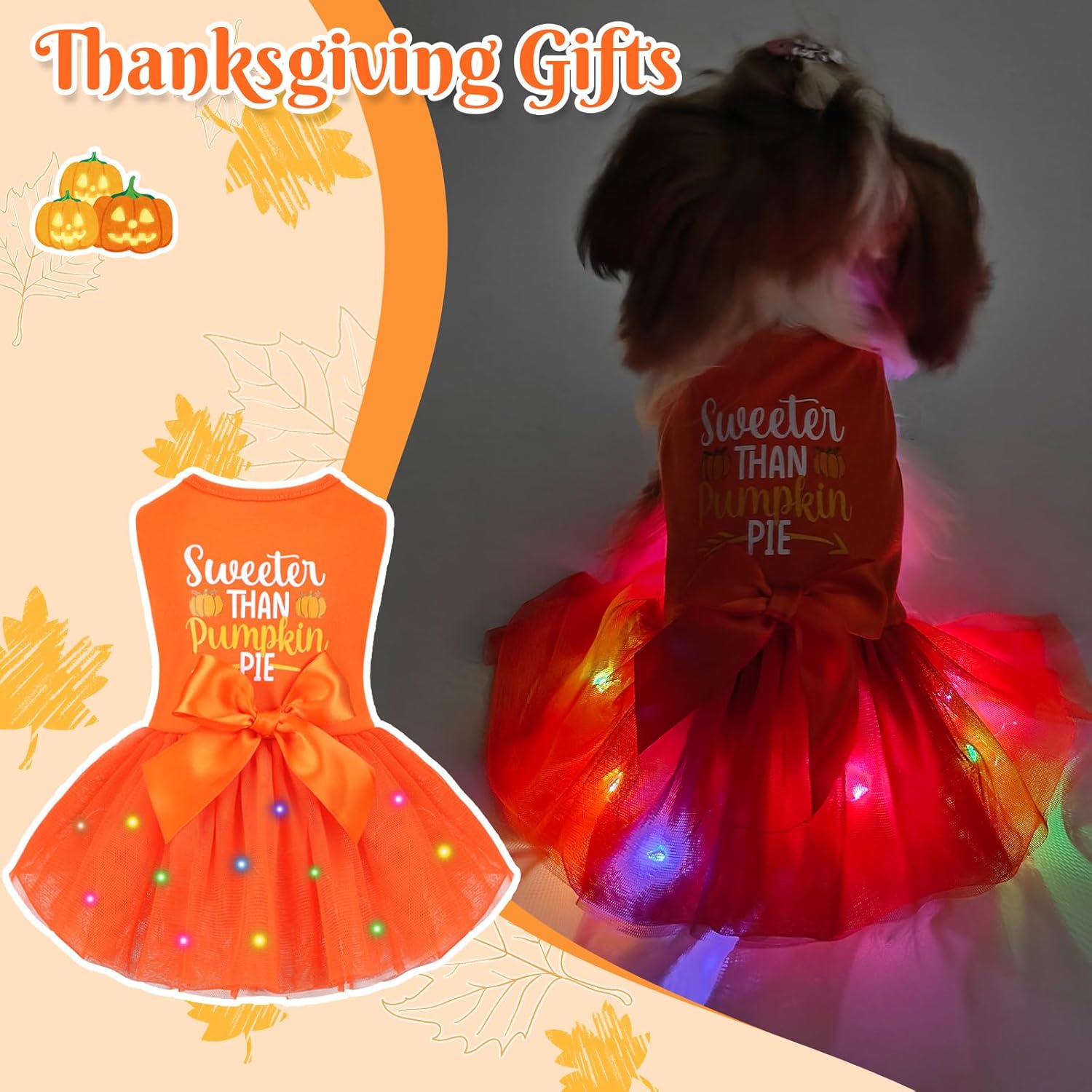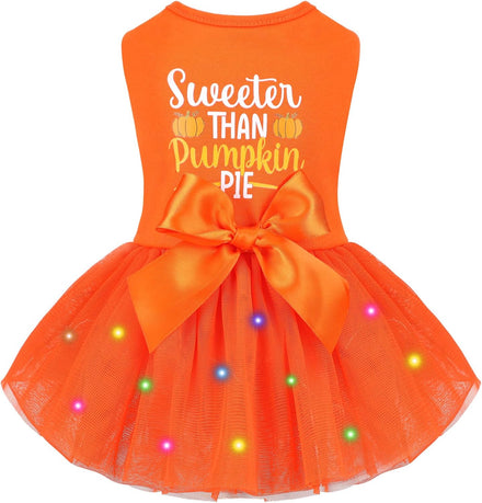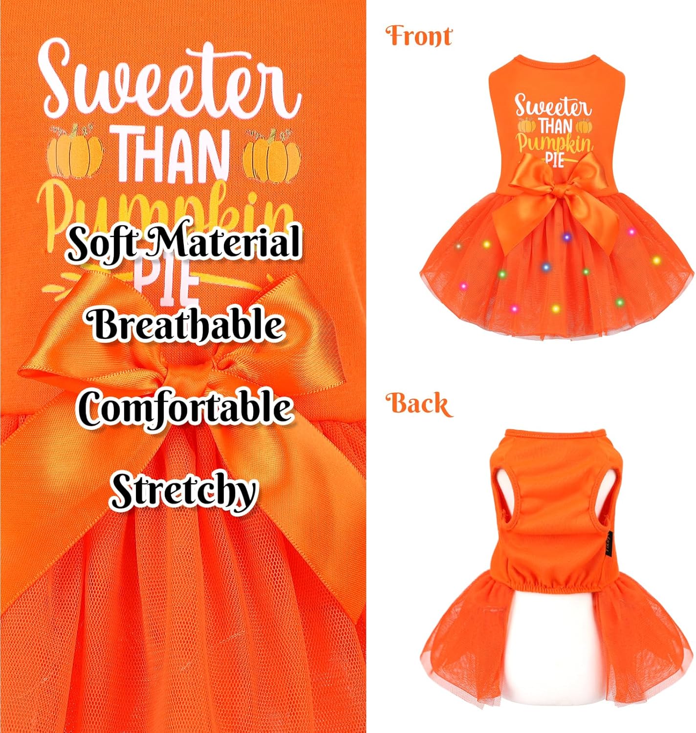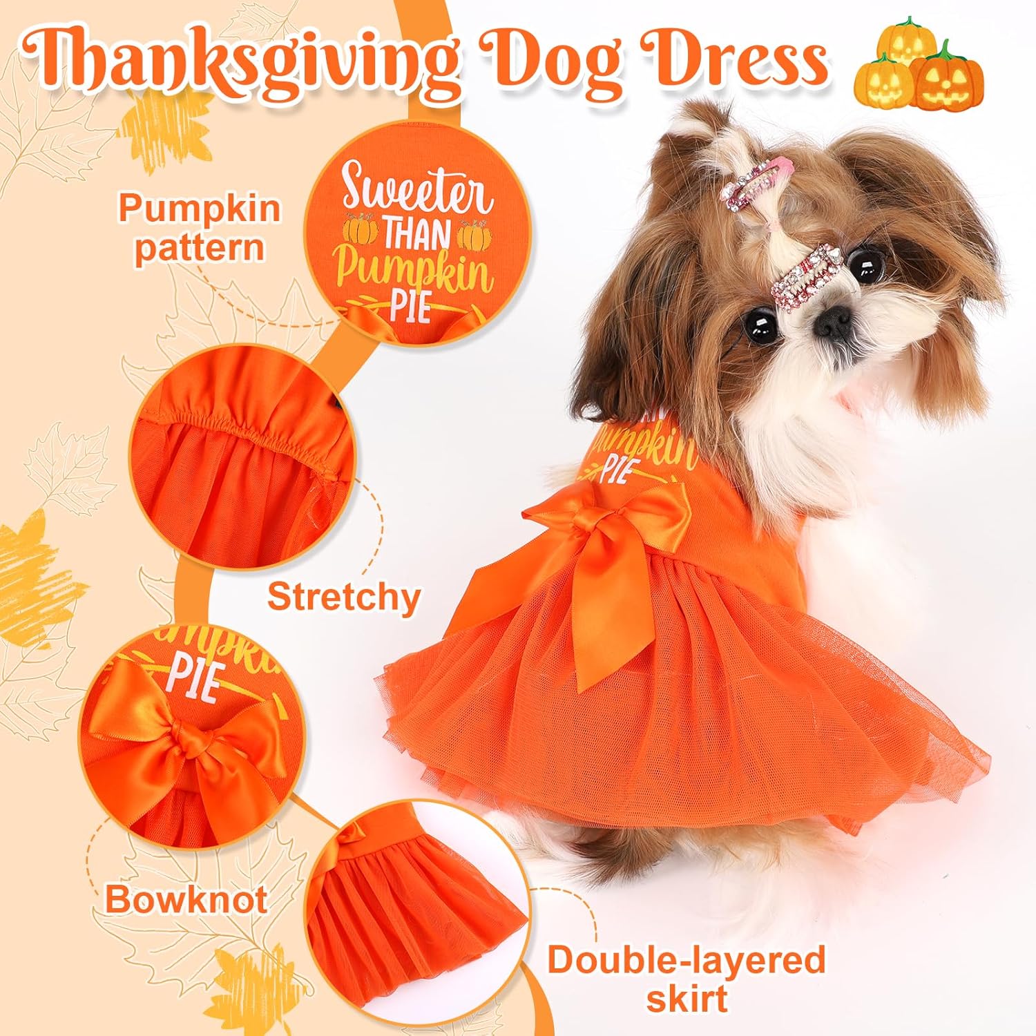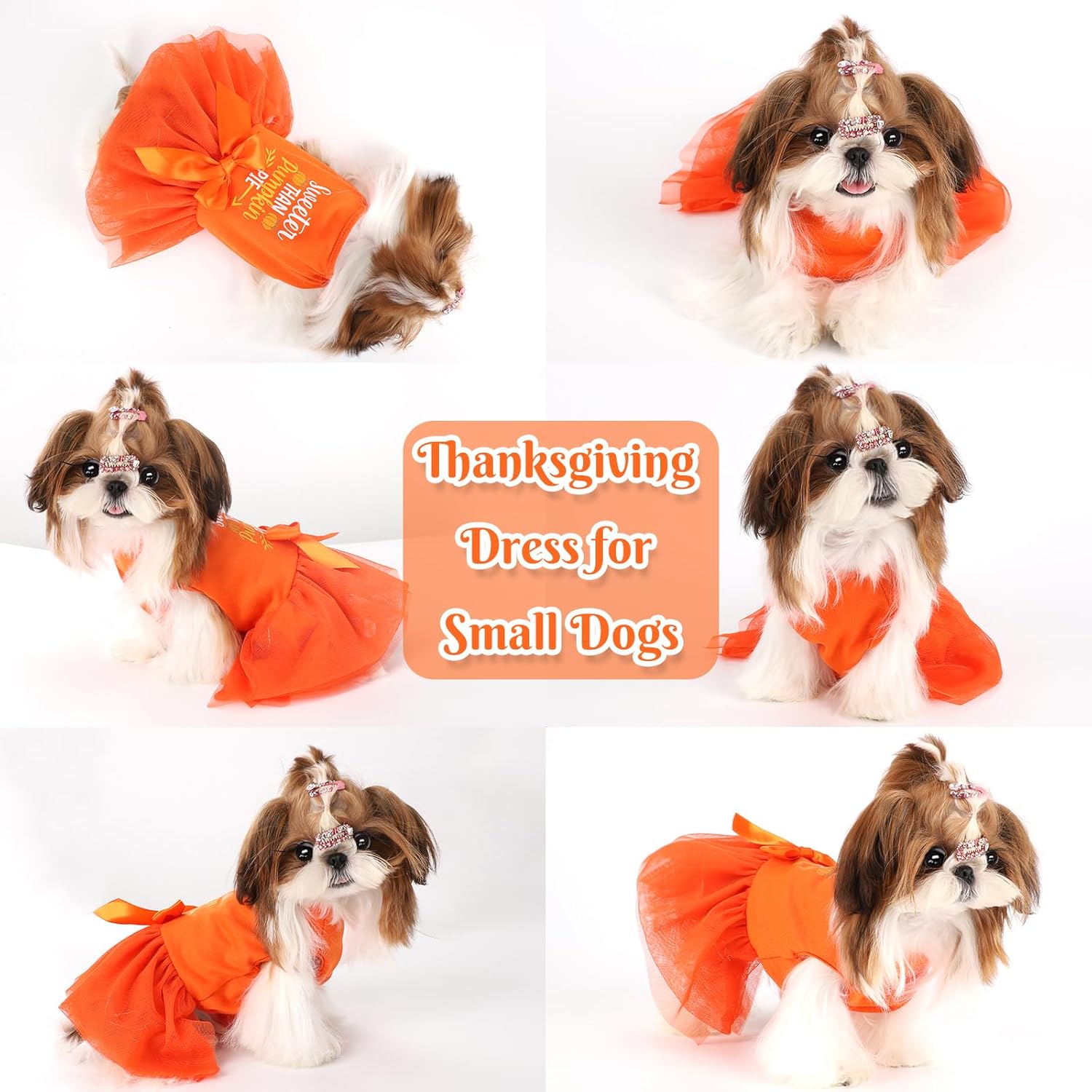 Sebaoyu Thanksgiving Pumpkin Dog Dress, Dog Clothes for Small Dogs Girl Puppy, Fall Doggy Thanksgiving Skirt Costume, Holiday Pet Tutu Dress, Pet Outfit Apparel Clothes