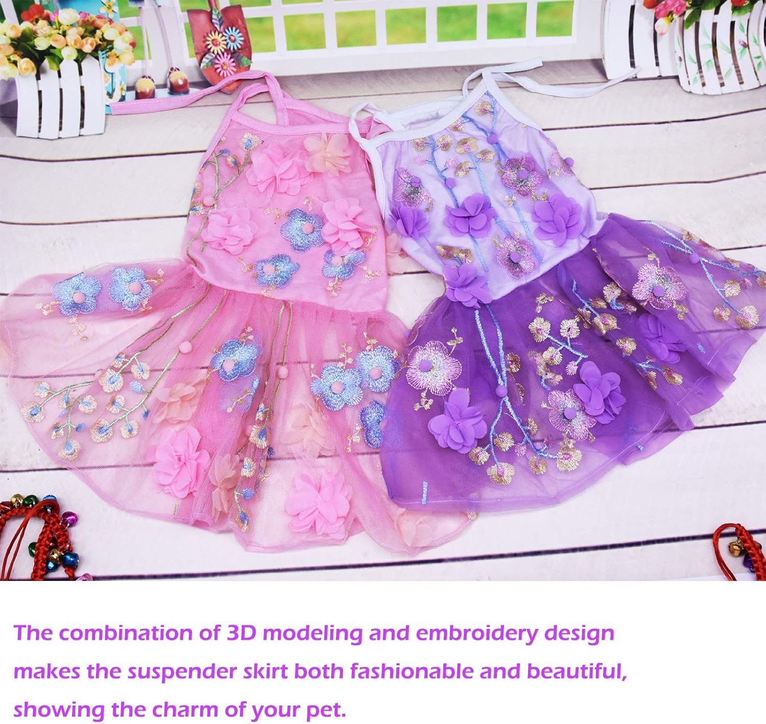- 【Design】 The combination of 3D modeling and embroidery design makes the suspender skirt both fashionable and classic, showing the charm of your pet. It has a smooth satin corset inside, and the skirt part has a very soft mesh inside. The inside and outside match each other, and the workmanship is fine. Bringing comfort to your pet is our pursuit.