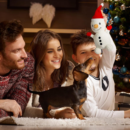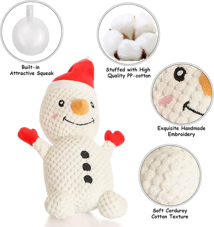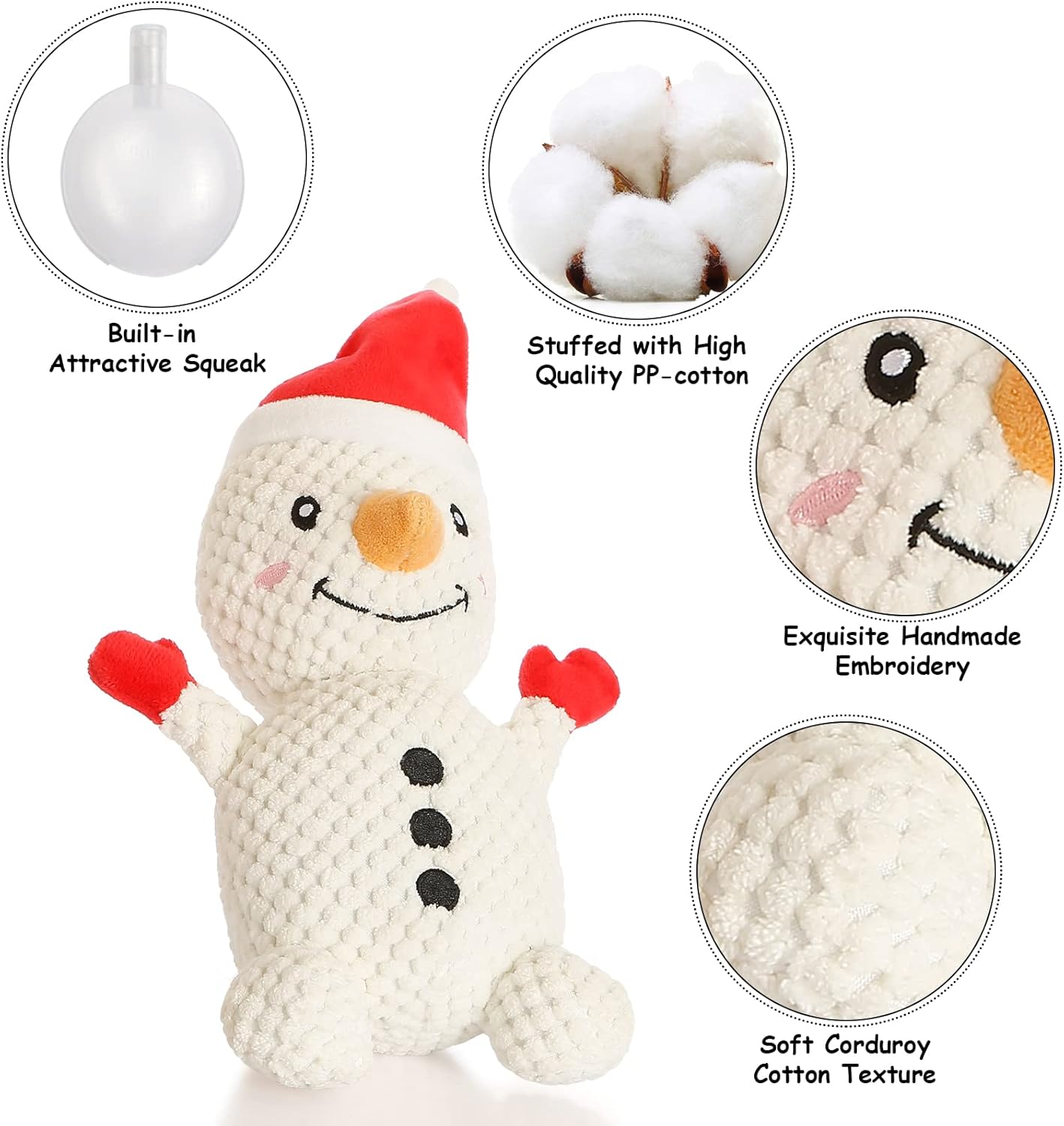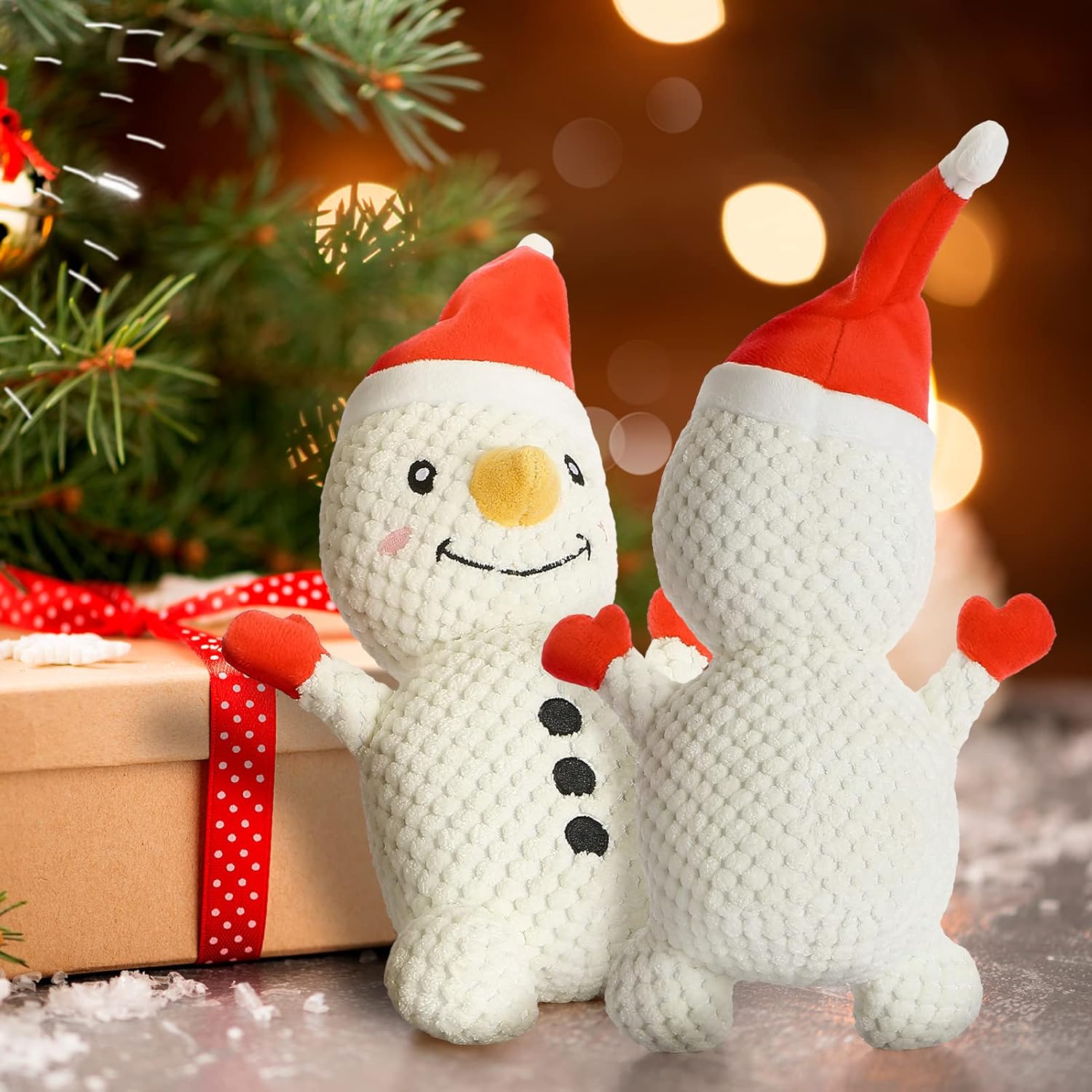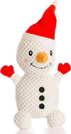- Dogs Preferred Gift:An adorable stuffed snowman with a red Santa Claus hat and gloves will be your dog’s best friend to accompany him/her through the winter nights. This plush stuffed squeaky toy is a perfect gift choice for your dog during this memorable holiday, will bring endless smiles and lasting happiness to all.