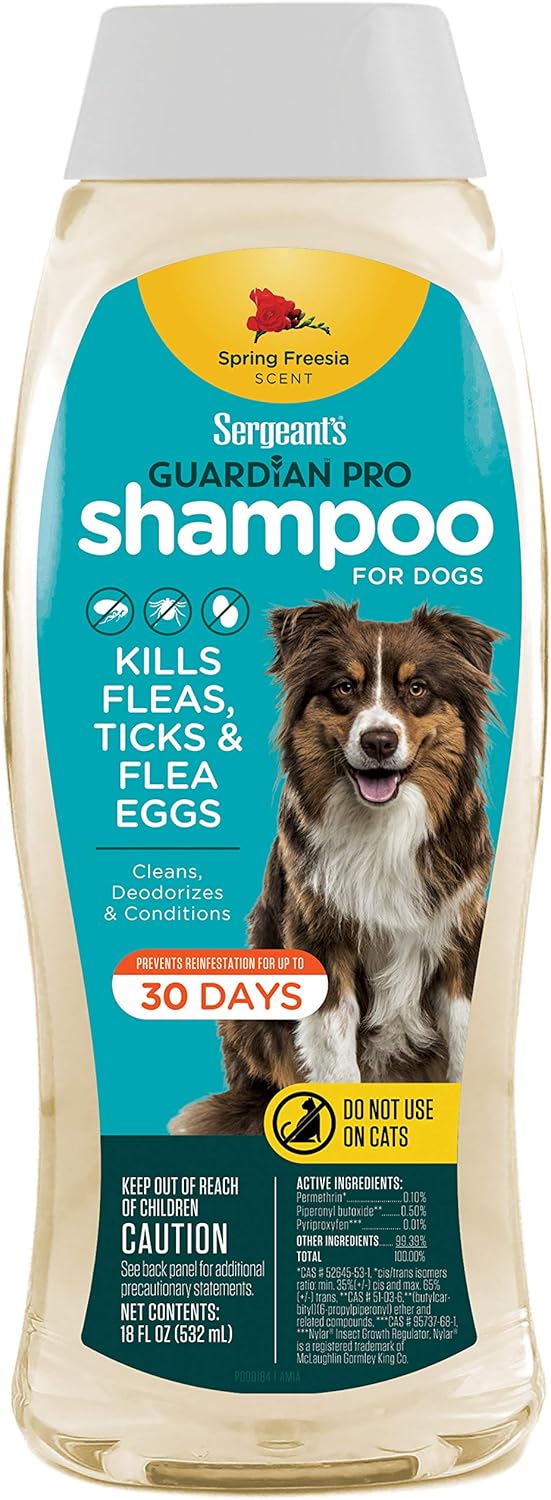 - RID YOUR DOG OF FLEAS: Sergeant's Guardian Flea and Tick Spring Frescia Shampoo for dogs and puppies has a great garden fresh fragrance. his tried-and-true formula kills fleas and ticks including deer ticks that may carry Lyme disease.
