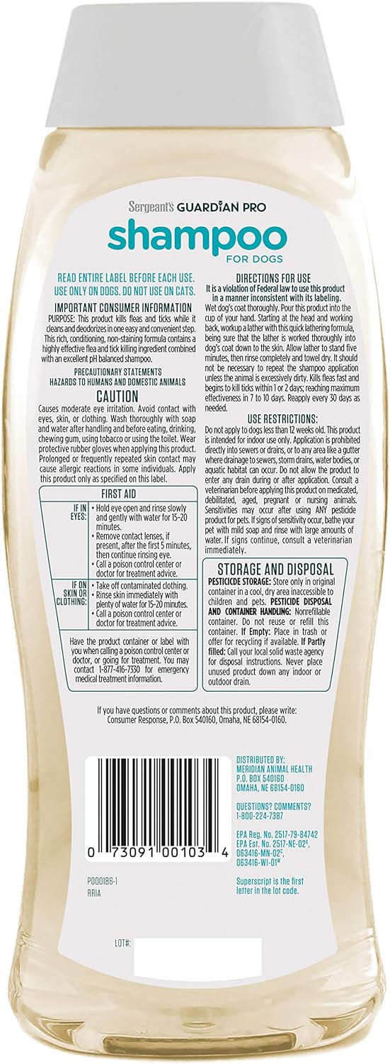 - CLEANS AND CONTROLS: Sergeant's Guardian Flea and Tick Sprin Freesia Shampoo cleans, deodorizes, and conditions your dog's coat, and pH balanced. The flea shampoo can also be used on dogs and puppies 12 weeks of age and over.