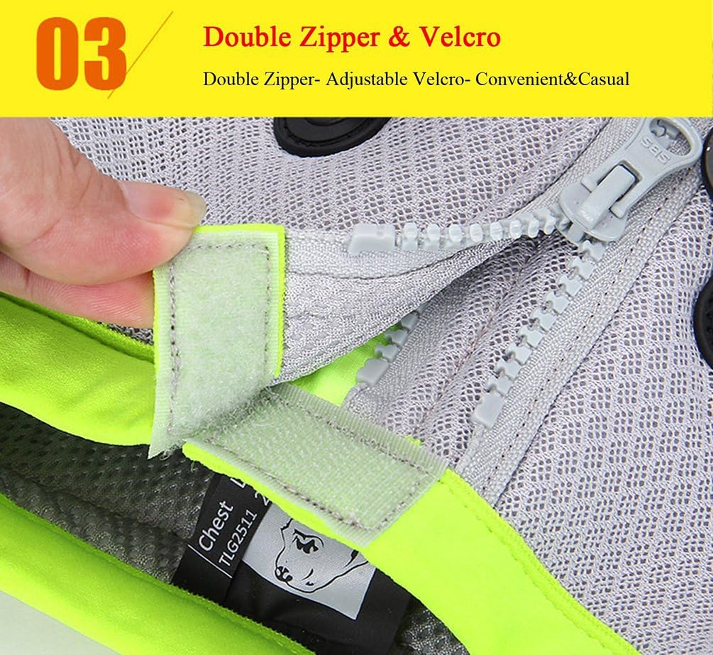 - SIZE ADJUSTMENT: The zipper with adjustable size keep dogs feel comfortable, and the velcro helps the harness fixed on dog, keep zipper fixed and helps adjust the neck width. The strap with 3M Reflective offer a high visibility