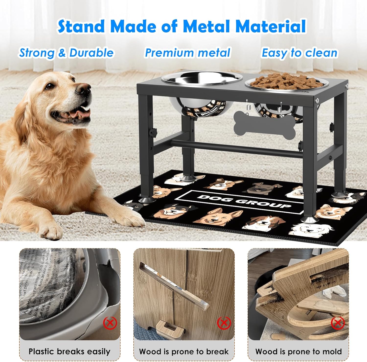 - 【No Mess Floor】- The SHAINFUN elevated dog bowl with a spill proof mat (15.7x23.6 in)It can works great to collect the water and food to avoid them spill over and keeps your floor or carpets clean and dry.