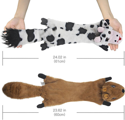 - DOG TOY NO STUFFING DURABLE: Thicker fabric and better stitching make these unstuffies dog toys more durable for dogs to chew and play. Since the squeakers and crinkle paper all over the body, dogs won’t just focus on one skinny toy to rip apart. Also, no stuffing design keep these toys last longer