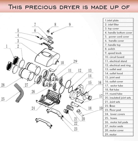 Our dog hair dryer is equipped with 3 multi-functional nozzles, meeting all different needs of pet blow dry.