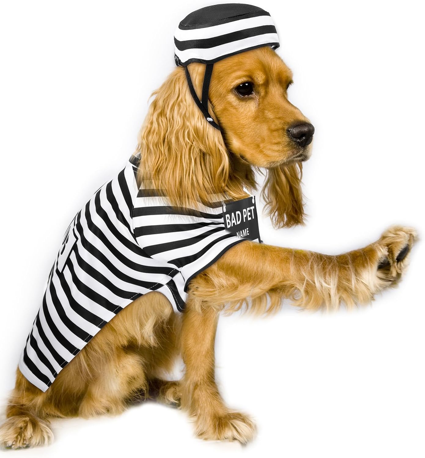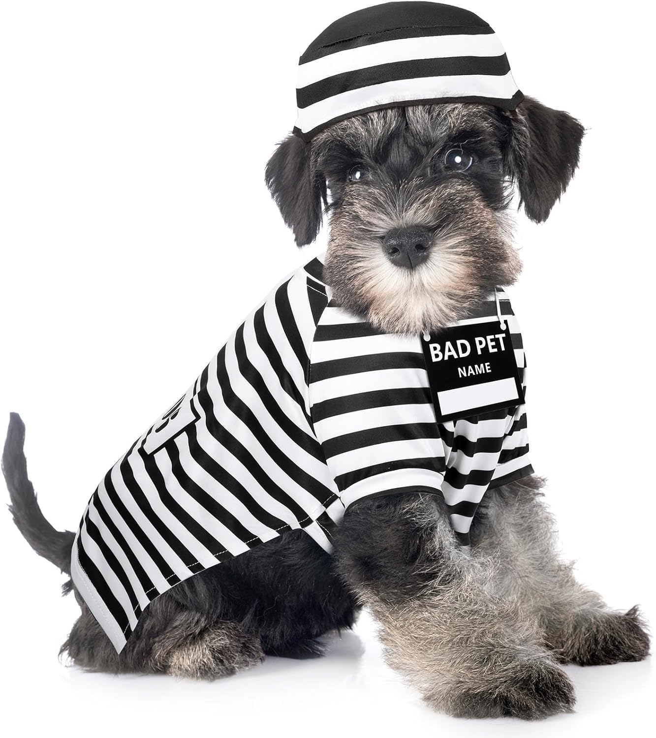 - Package Includes: there is 1 dog striped pullover, 1 adjustable and elastic hat, 1 prisoner sign card in the package, you can use a rope to string the card and write your dog's name, and wear around his neck, it's a funny Halloween outfit for your dog
