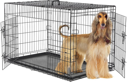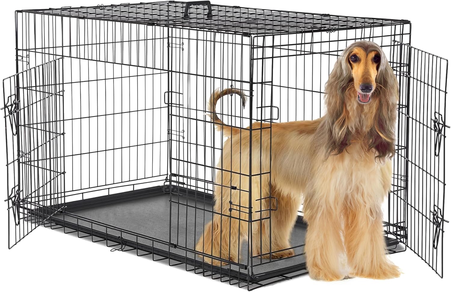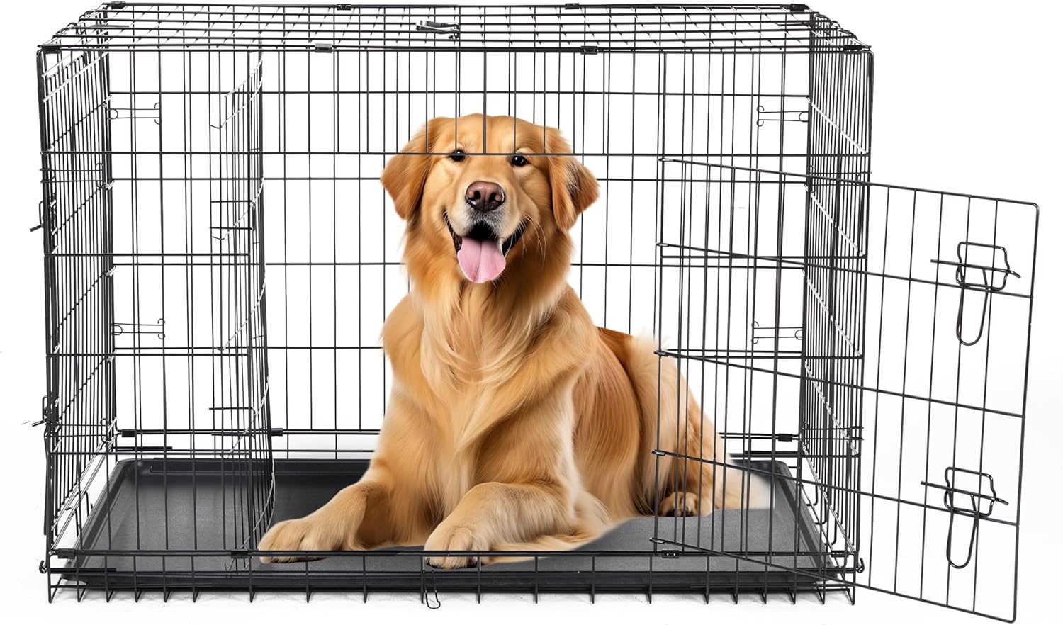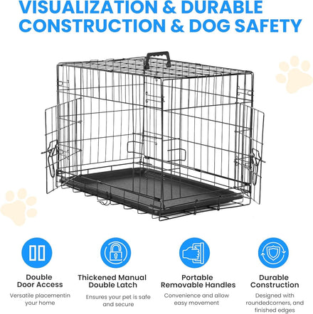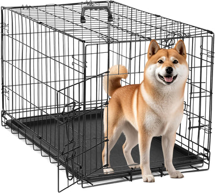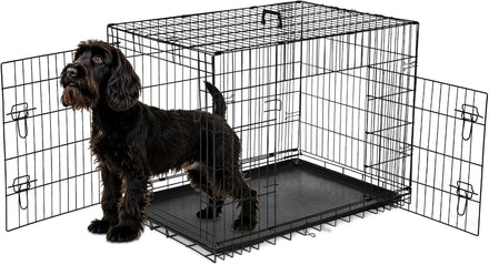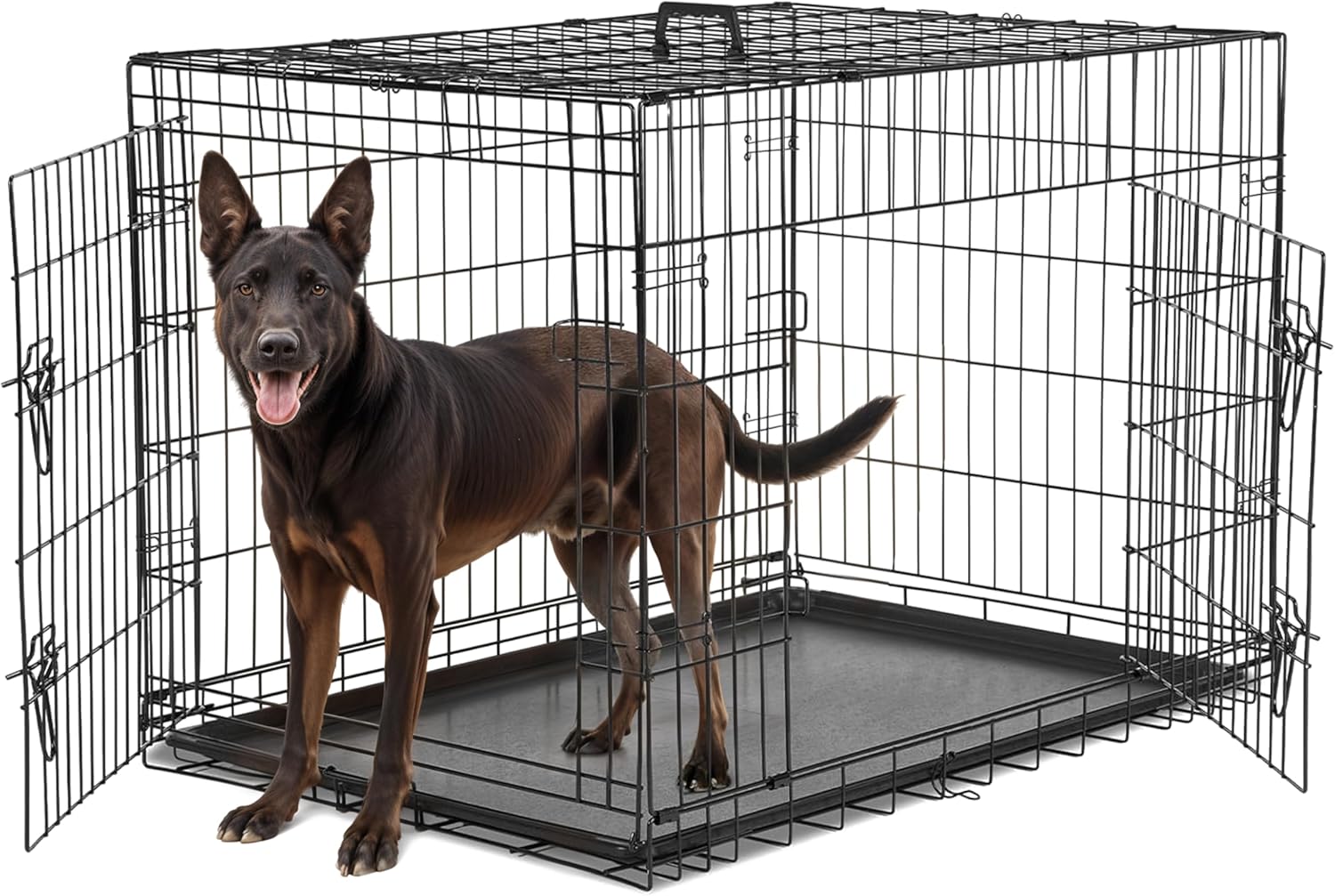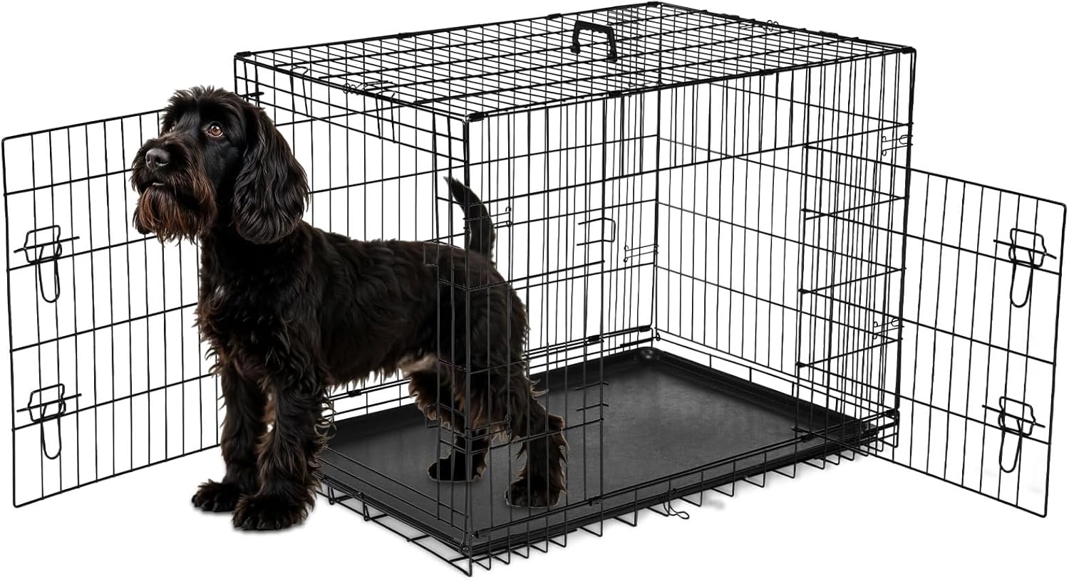 - Durable Materials Build: The dog crate is made of high materials tensile-strength wire gauge. Dog cages are ideal for training and transporting well-behaved pets. Its double-door design makes it adaptable for any space and setup