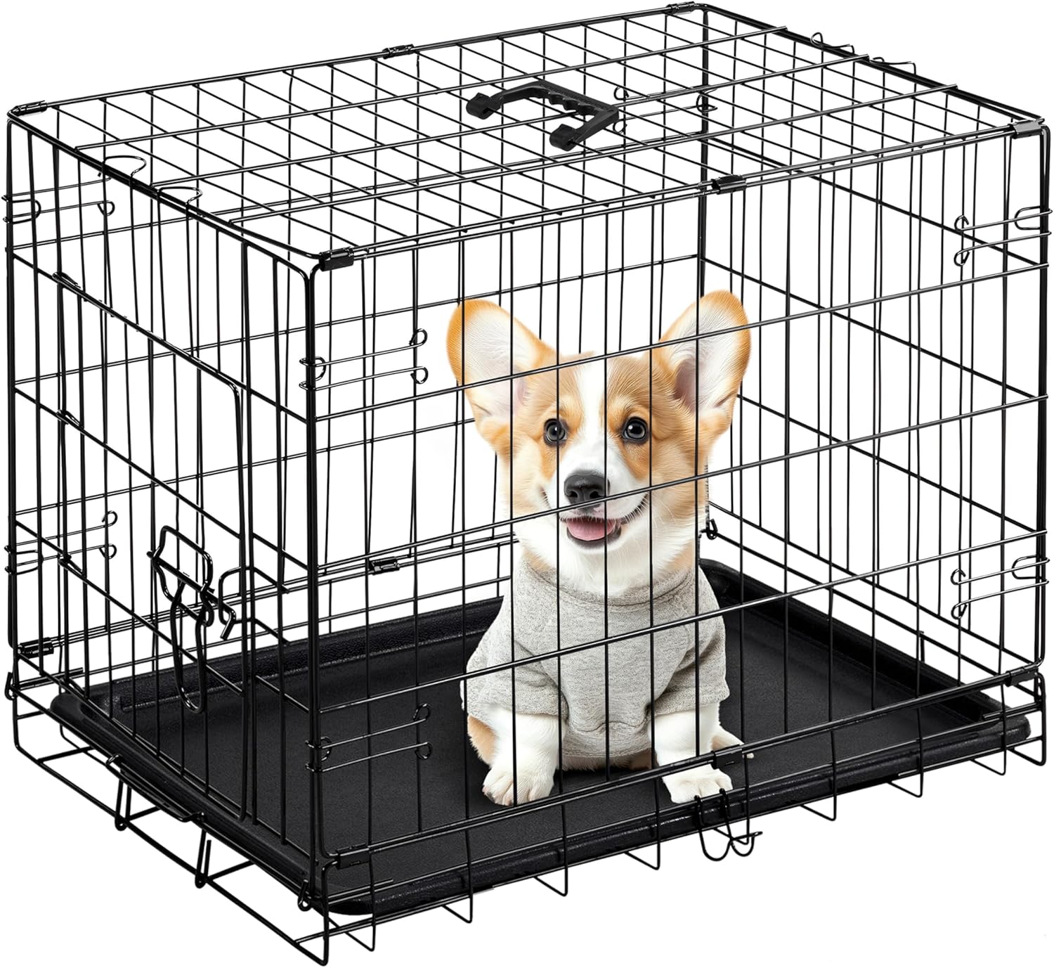 Simple Deluxe 24-Inch Small Dog Crate with Divider, Double Door Folding Metal Wire Cage with Leak-Proof Plastic Tray, Portable Pet Kennel for Indoor, Outdoor, and Travel
