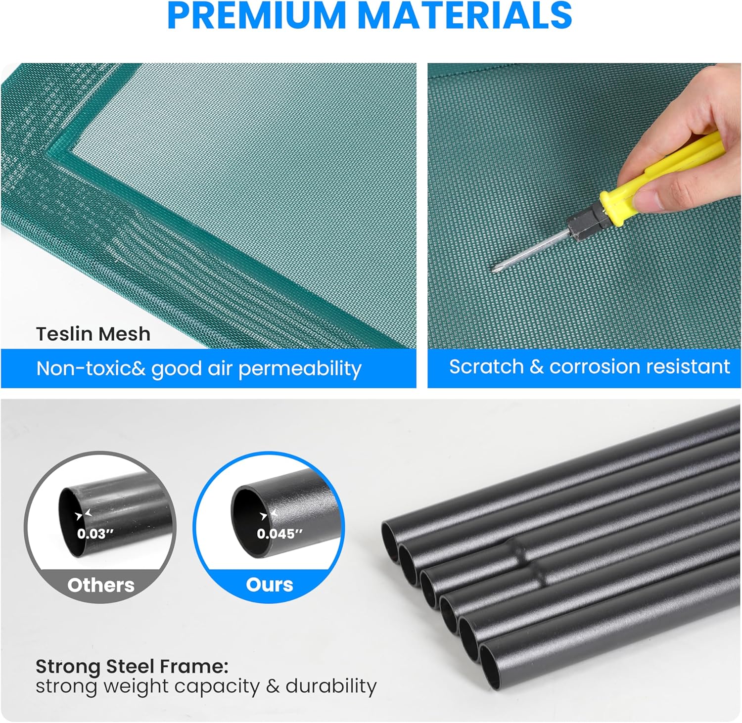 - Friendly to dogs: It is composed of powder-coated steel, heavy-duty Teslin mesh, and non-skid rubber feet, provides strong stability and high load-bearing capacity, provides excellent support and even pressure distribution to reduce joint and muscle pain