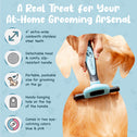 La hoja extra ancha de 4 pulgadas y los robustos dientes de acero inoxidable abordan sin esfuerzo los enredos difíciles, asegurando durabilidad y eficiencia. Estos dientes están diseñados por expertos para hacer frente incluso a los enredos y tapetes más duros en el pelaje de tu mascota.