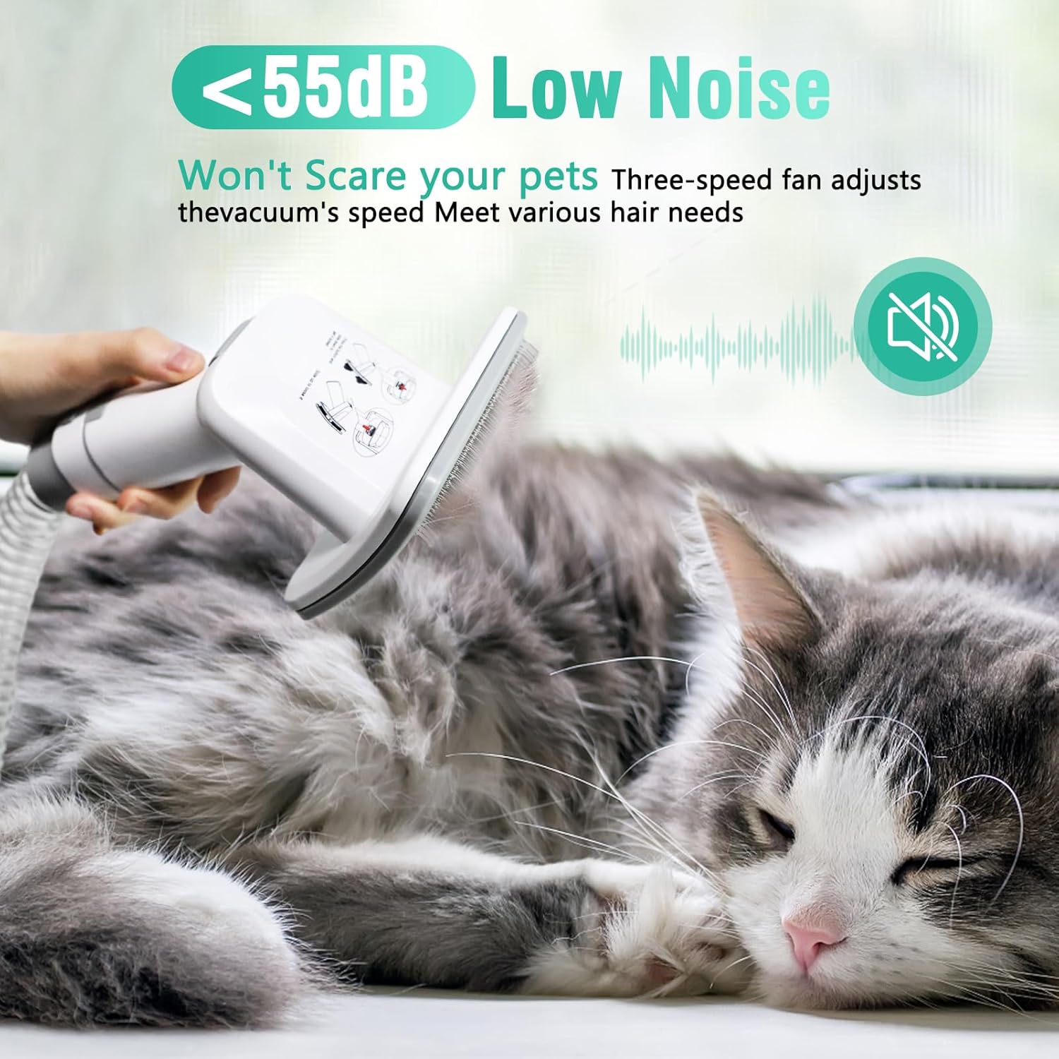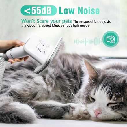- Low Noise Design:Pet vacuum grooming kit with only 55dB will not scare your pet.Your pet will enjoy brushing and grooming.When using it for the first time, we recommend not to run it suddenly and give your pet an adaptation process.