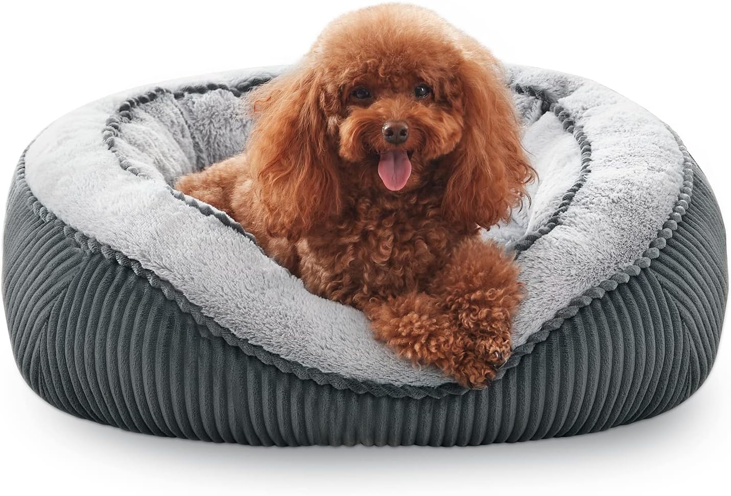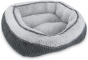 - LUXURY& FASHION COMFORTABLE DOG BED DESIGN: The cozy dog bed exterior is designed with gray flannel fabric stripes, the interior is made of PV fleece fabric, and the side is a wide strip design, Make the kennel sufficiently supportive, the filling is 100% pp cotton, lie down can effectively relieve the dog's shoulder and neck joints and relieve muscle pain to provide a comfortable and warm sleeping