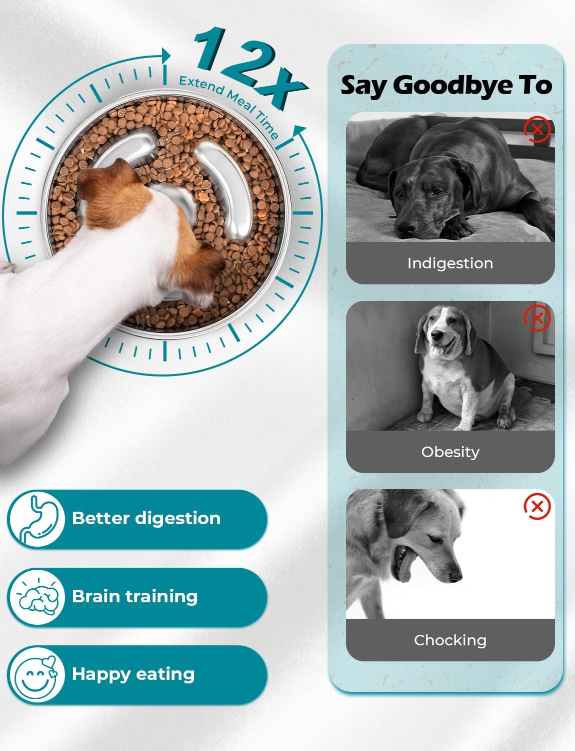 - SLOW FEEDING DESIGN: Unique maze pattern slows down eating speed, preventing bloat and indigestion while making mealtime more engaging for your pet
