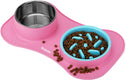 - 3 in 1 Set: Anipaw slow feeder bowl set includes plastic dog slow feeder*1(15oz), stainless steel dog water bowl*1(23oz), and non-skid silicone dog mat*1. Enough most of size dog’s daily feeding needs and help your dog to develop good eating habits.