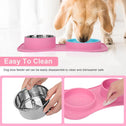 - Easy to Clean and Store: This dog slow feeder is very easy to clean, you can easily remove the slow feeder bowl and dog water bowl from the dog bowl mat. And the set is dishwasher safe so you can put it into your dishwasher or just rinse with water. The non-spill mat is made of flexible and foldable silicone, so you can easily store this slow feeder dog bowl or take it to travel.