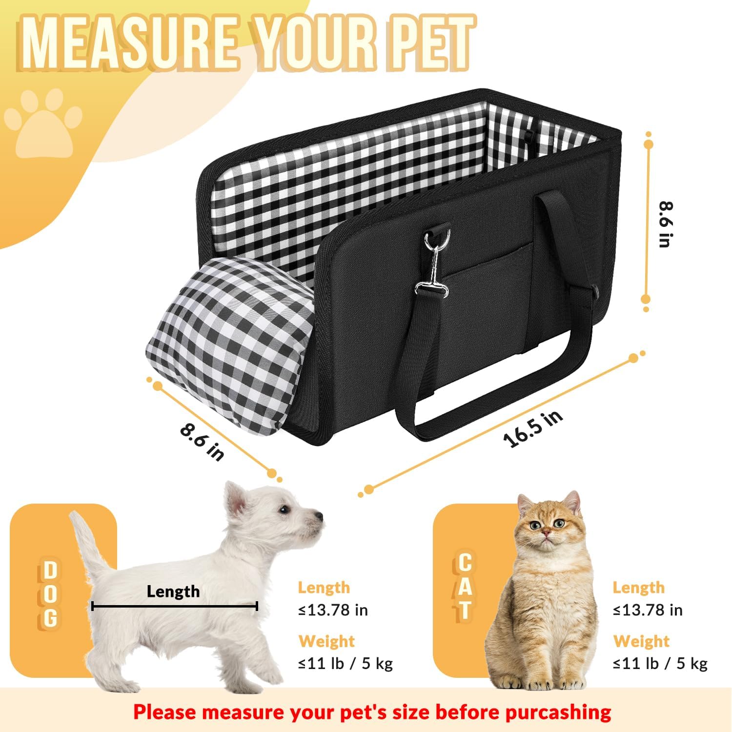 - 𝐒𝐮𝐢𝐭𝐚𝐛𝐥𝐞 𝐟𝐨𝐫 𝐒𝐦𝐚𝐥𝐥 𝐃𝐨𝐠𝐬 --- The dog bed for car measures 16.5x8.6x8.6 inches, making it suitable for pets weighing less than 11 pounds and with a body length of 13.7 inches or less (from neck to tail). Before purchasing, measure your dog and the dimensions of your center console for the right fit
