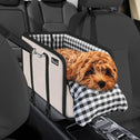 - 𝐒𝐥𝐢𝐝𝐢𝐧𝐠 𝐏𝐫𝐞𝐯𝐞𝐧𝐭𝐢𝐨𝐧 --- This new version center console bag has two straps on left and right sides that can be attached to the driver's and passenger's seat headrests. The puppy console car seat prevents the bag from sliding during car rides and ensures your dog's safety. The end of straps have metal hooks for quick detachment and can also be used as shoulder straps when the bag is not in use