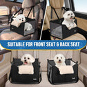 - Easy to Install --- Pet car seats are easy to install and disassemble, and can be folded flat for easy storage. There are built-in adjustable straps in the pet seat, allowing it to be quickly and safely installed in the front or back seat of a variety of vehicles. Note: The cotton pad and pillow wrinkles are caused by the compression of the transport package, and can be restored after opening the package and rubbing it for 48 hours.