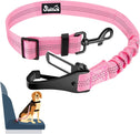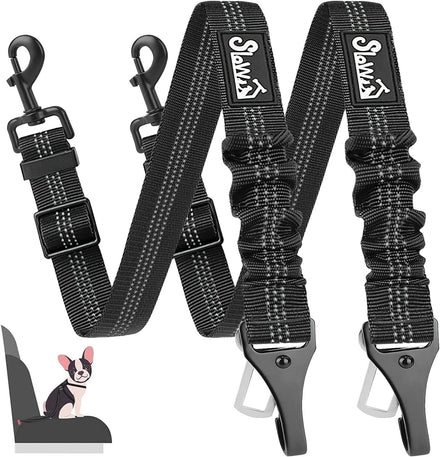 SlowTon Dog Seat Belt, Adjustable Dog Safety Belt Leash, 2 in 1 Latch Bar Attachment Dog Car Seatbelt with Elastic Nylon Bungee Buffer, Reflective Nylon Belt Tether Connect to Dog Harness (Black)